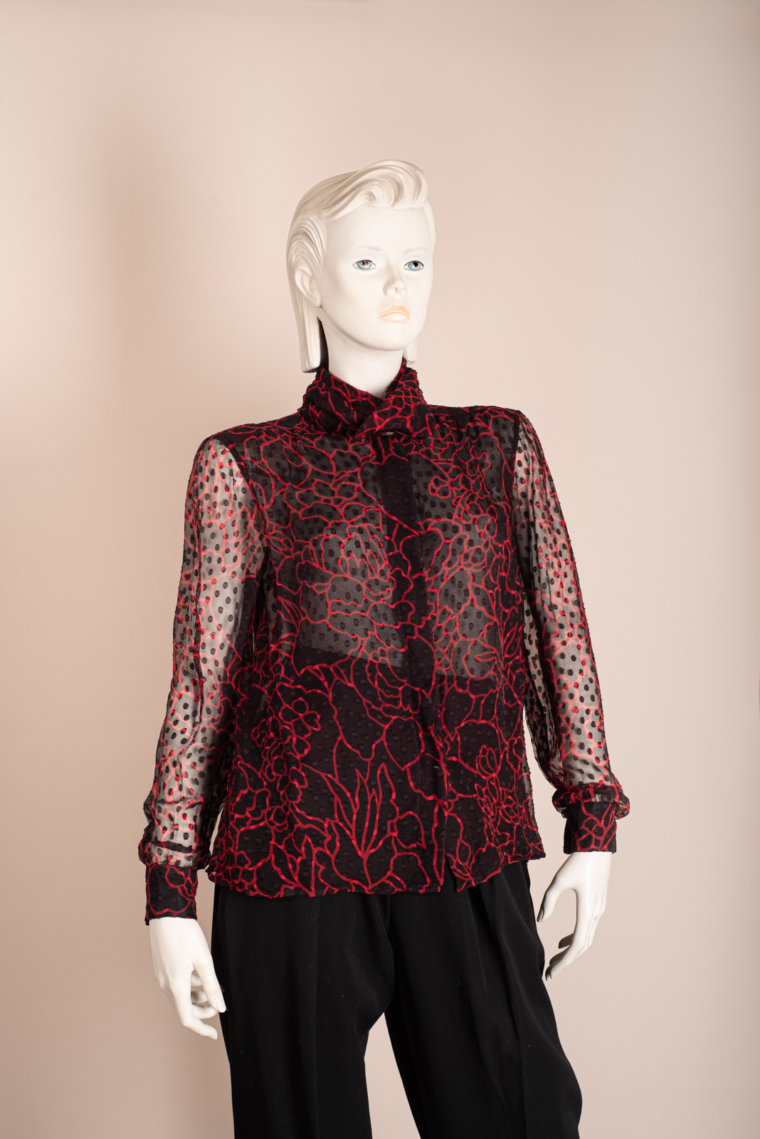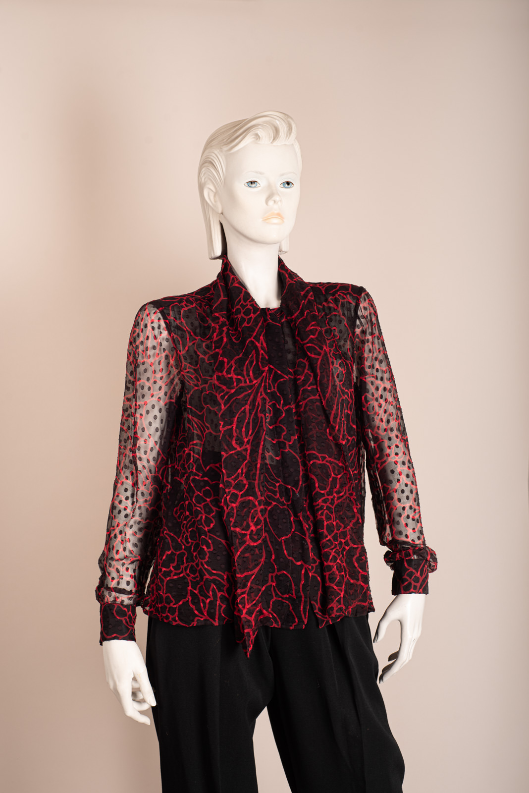 - Red and black chiffon blouse