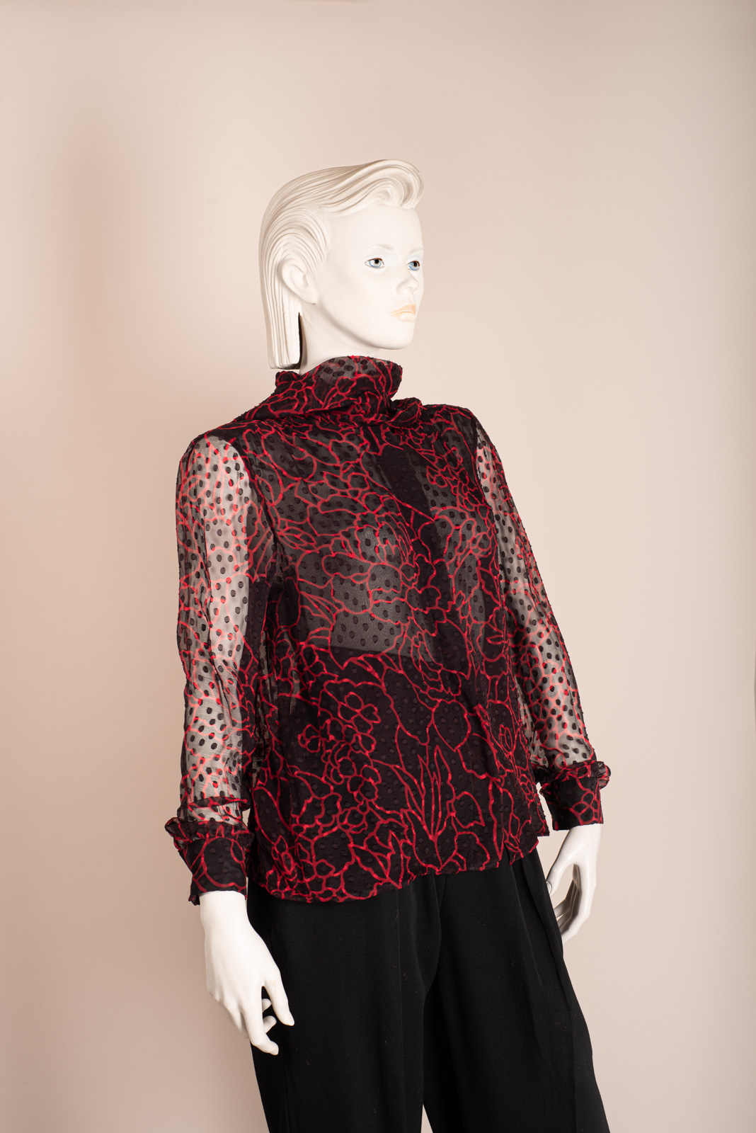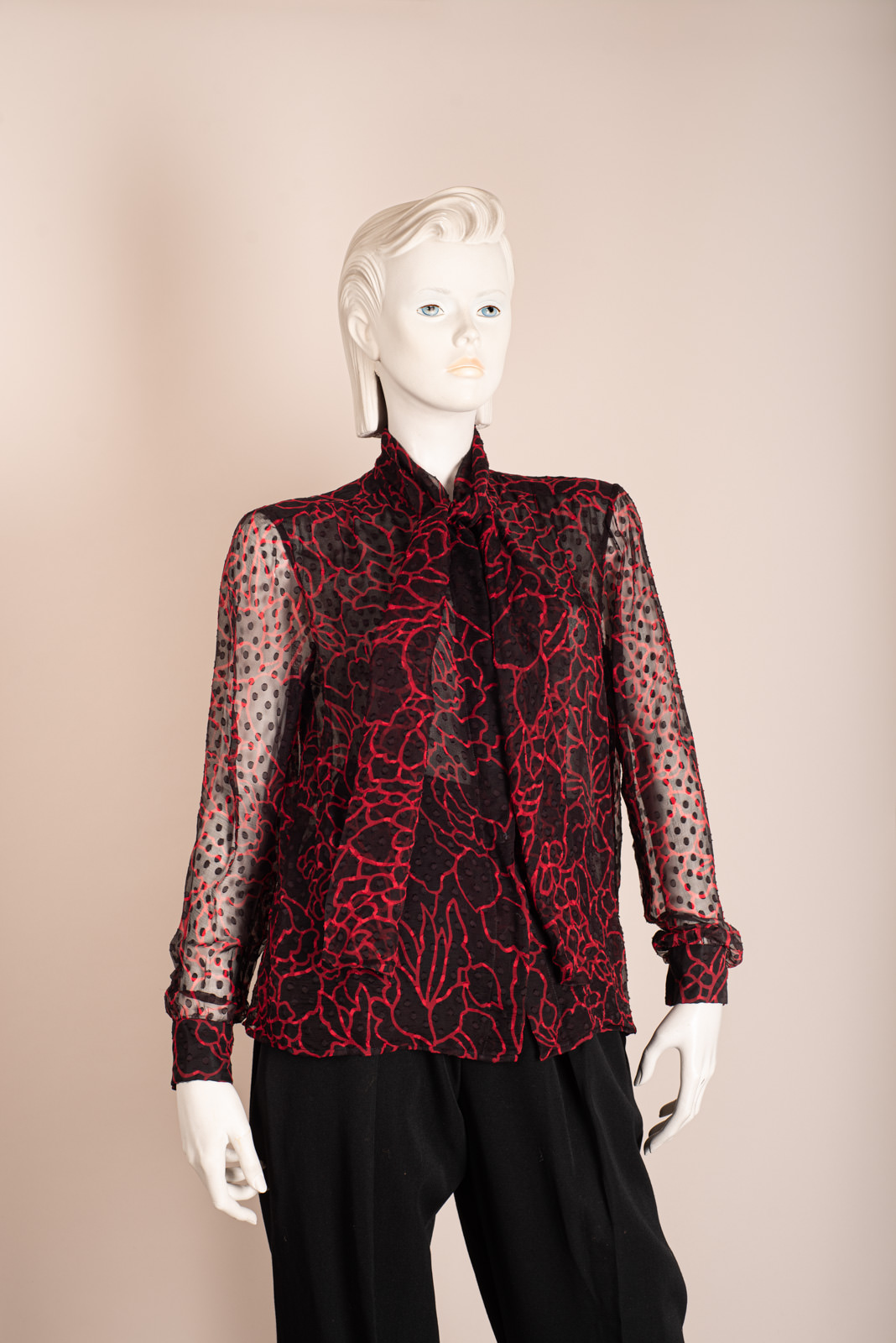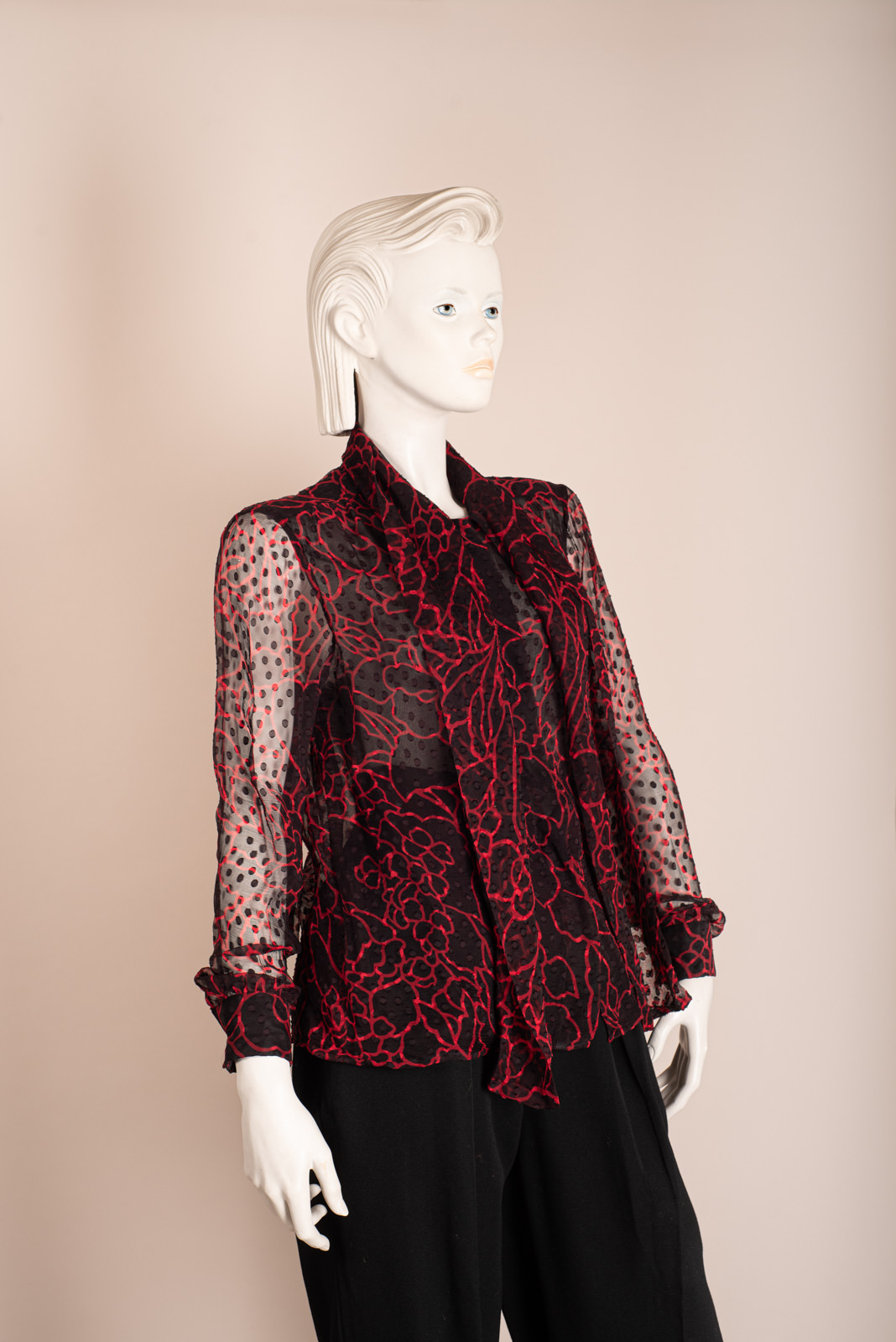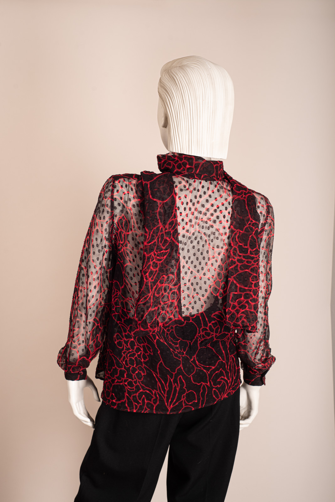 1990s BLACK&RED SILK CHIFFON BLOUSE