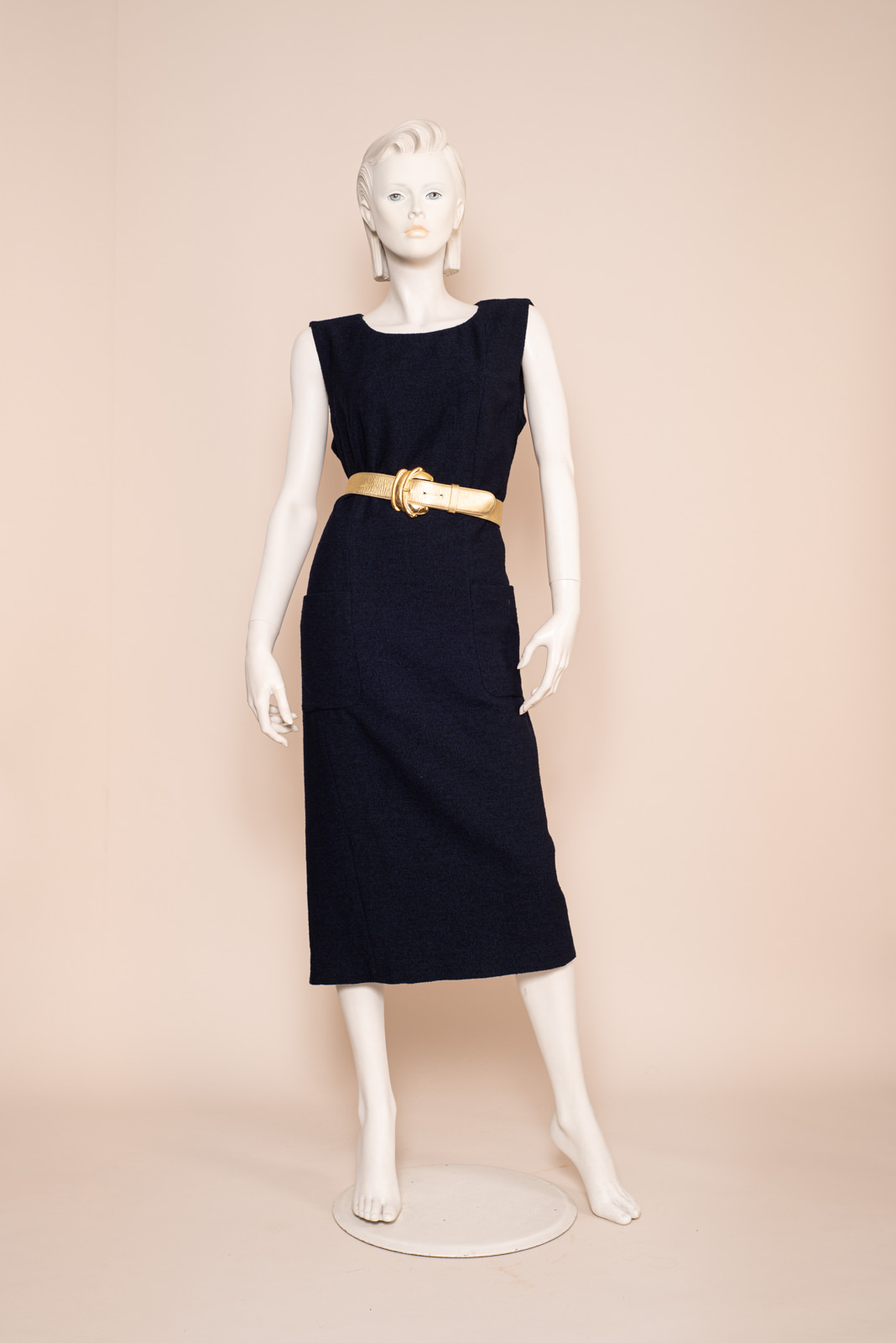 - Iconic navy sleeveless dress