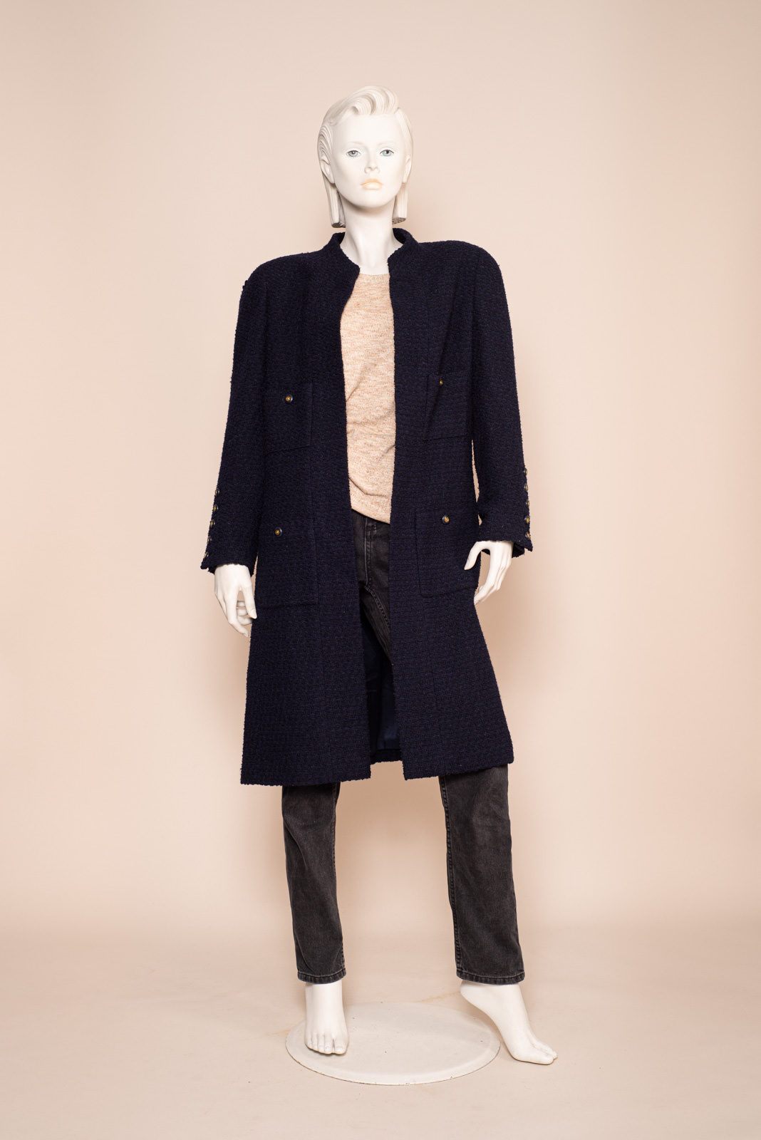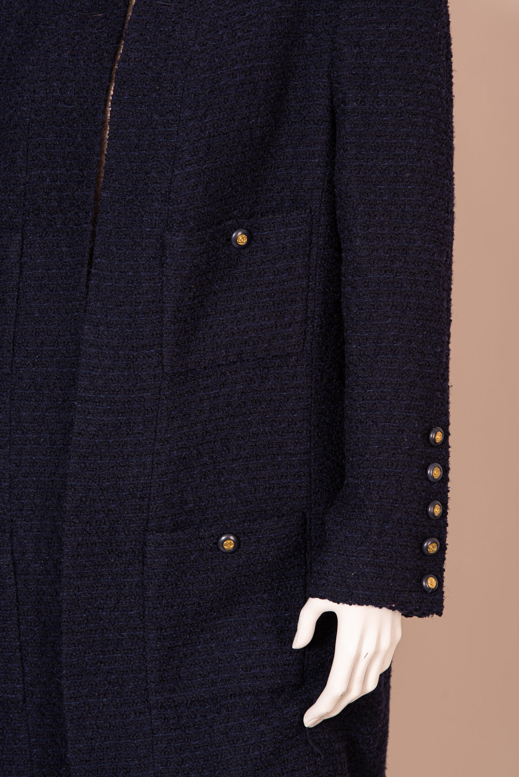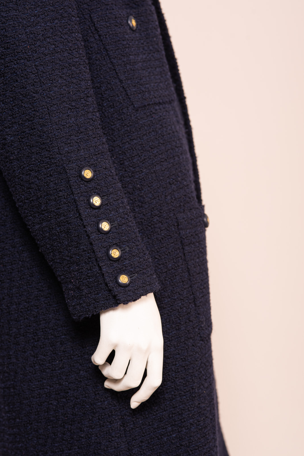 Rare iconic Chanel navy tweed coat from the 1990s.