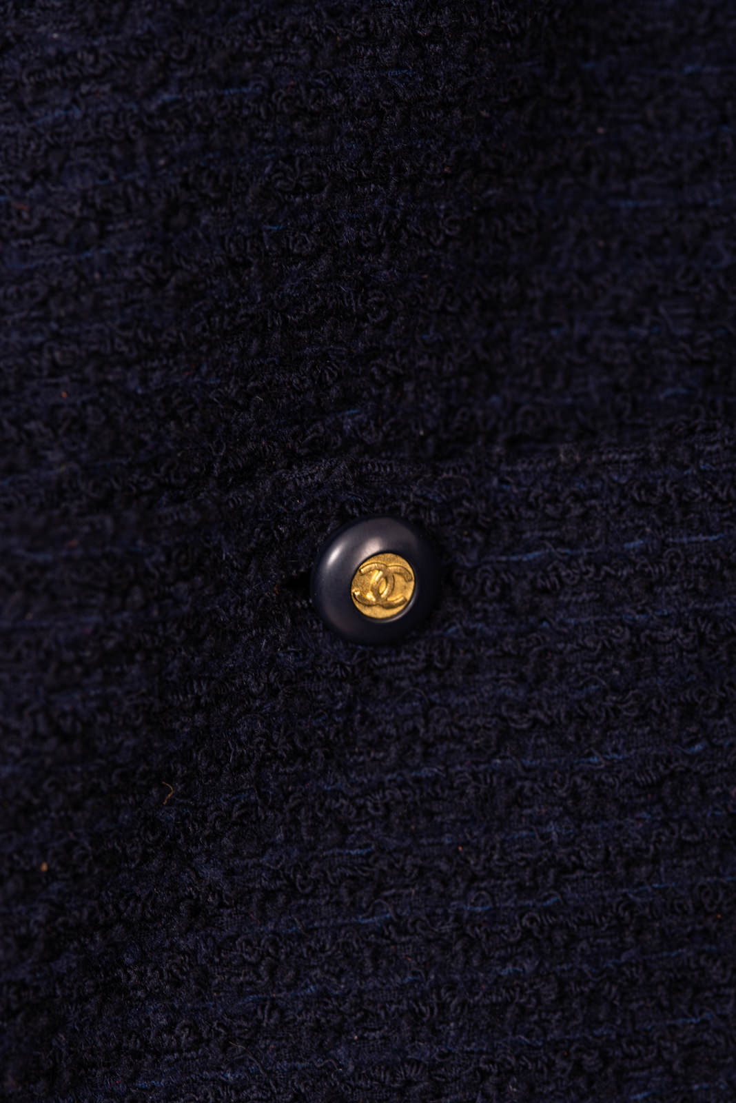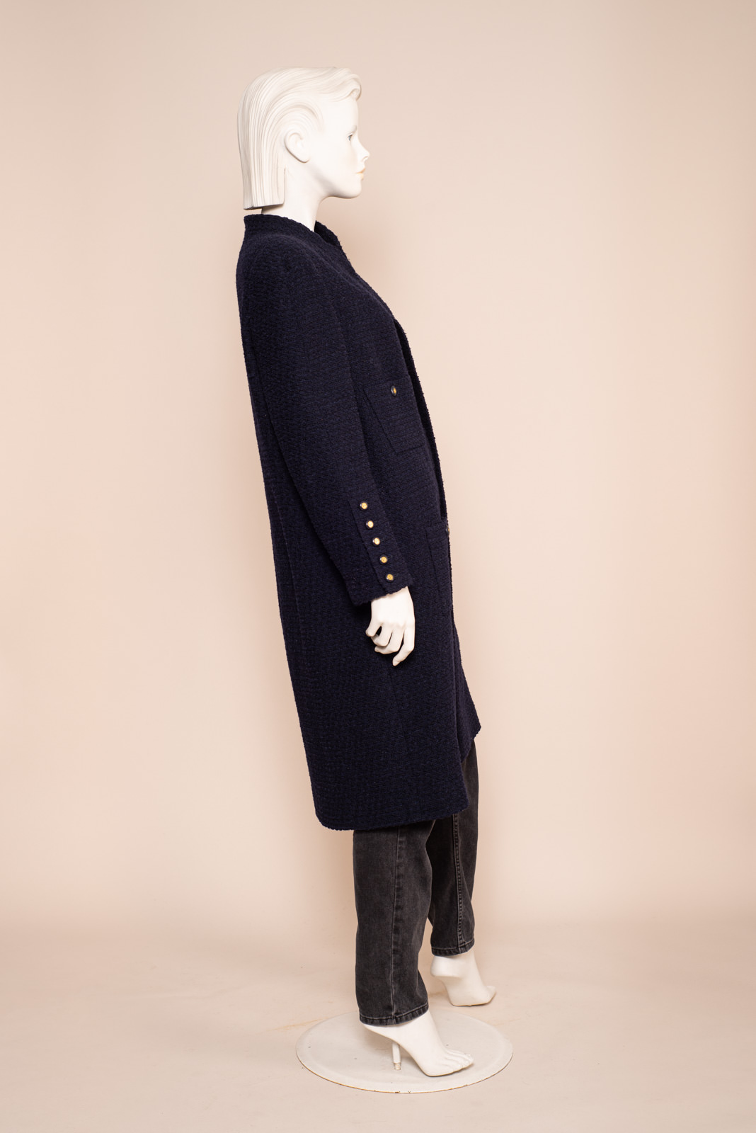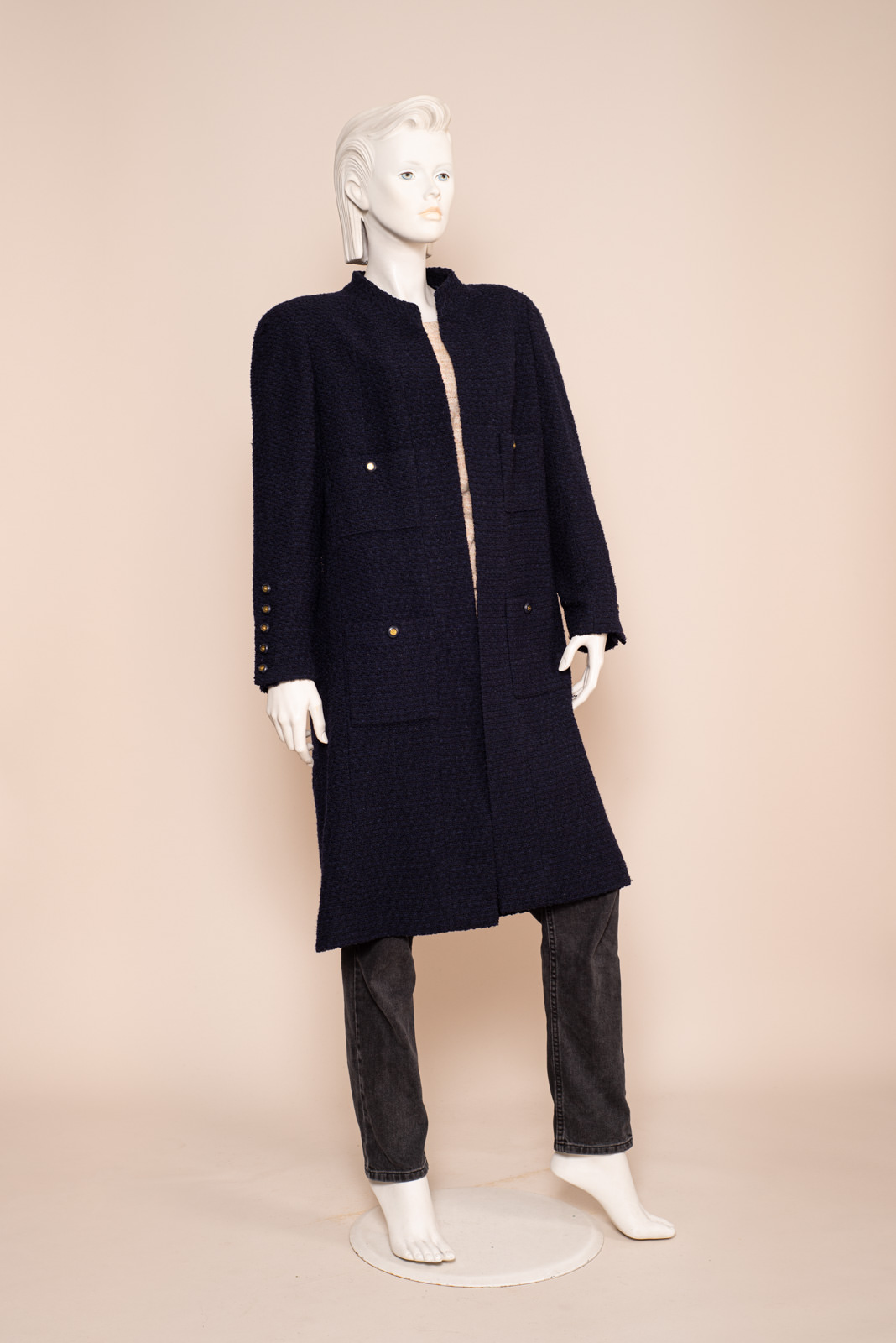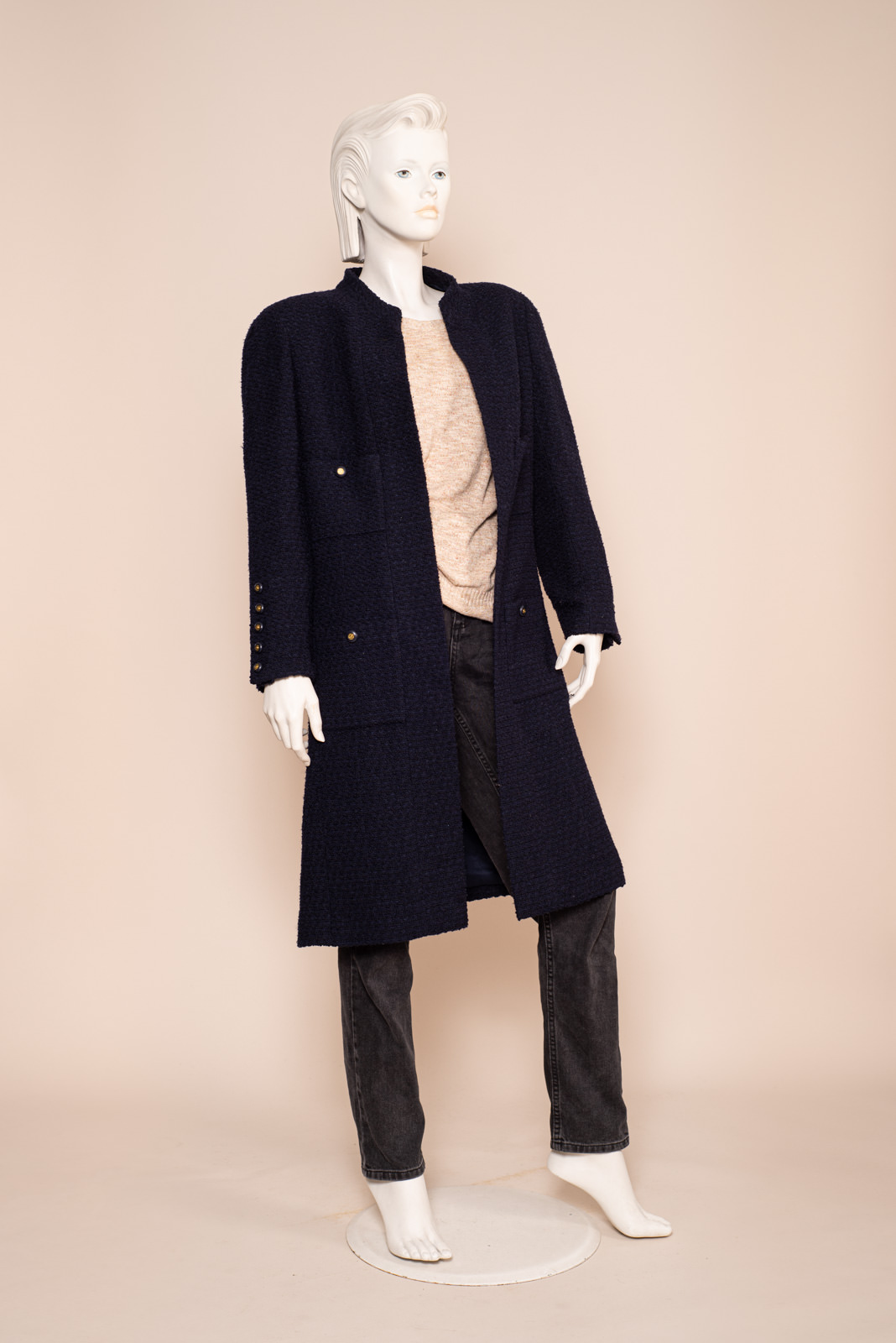 Rare iconic Chanel navy tweed coat from the 1990s.