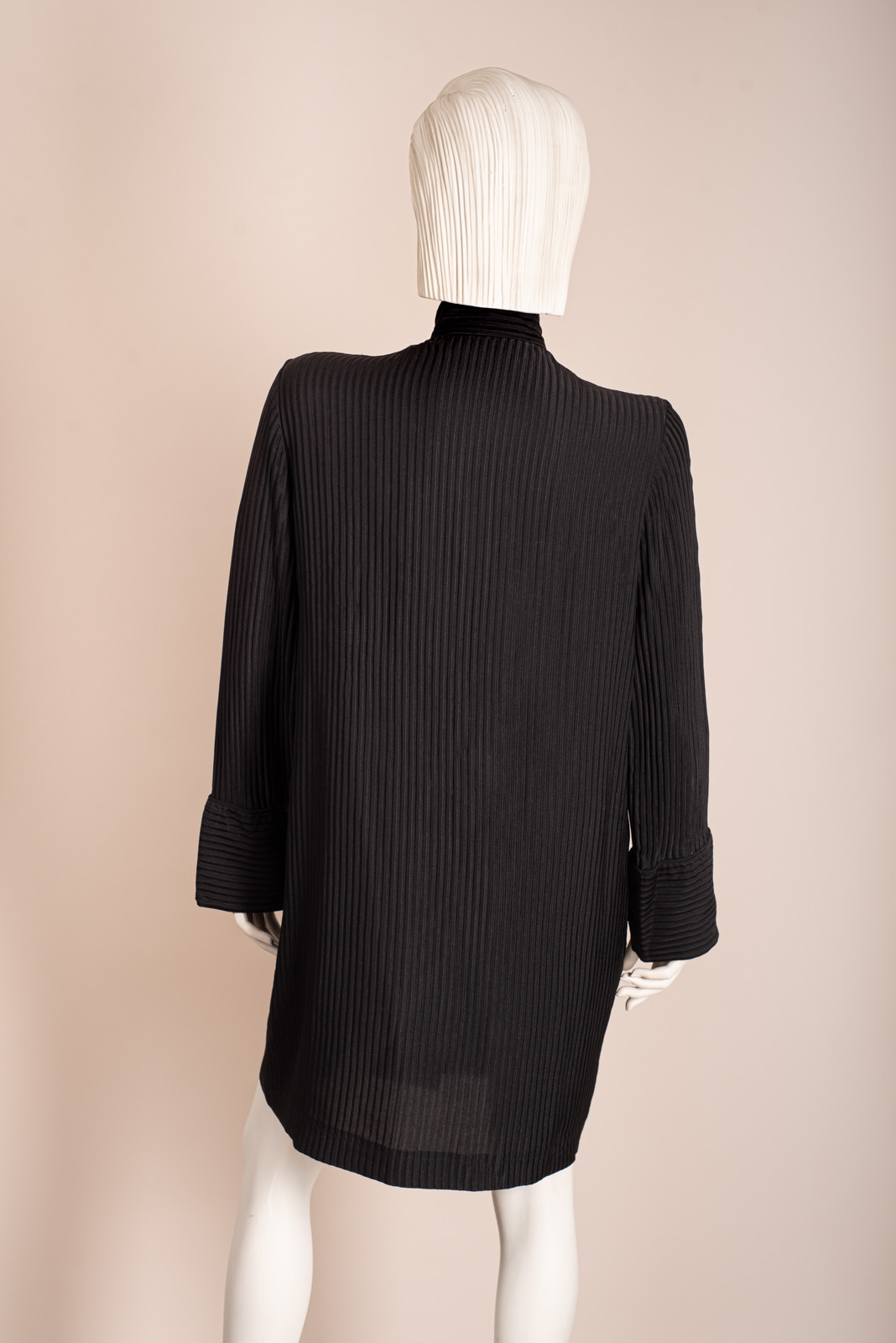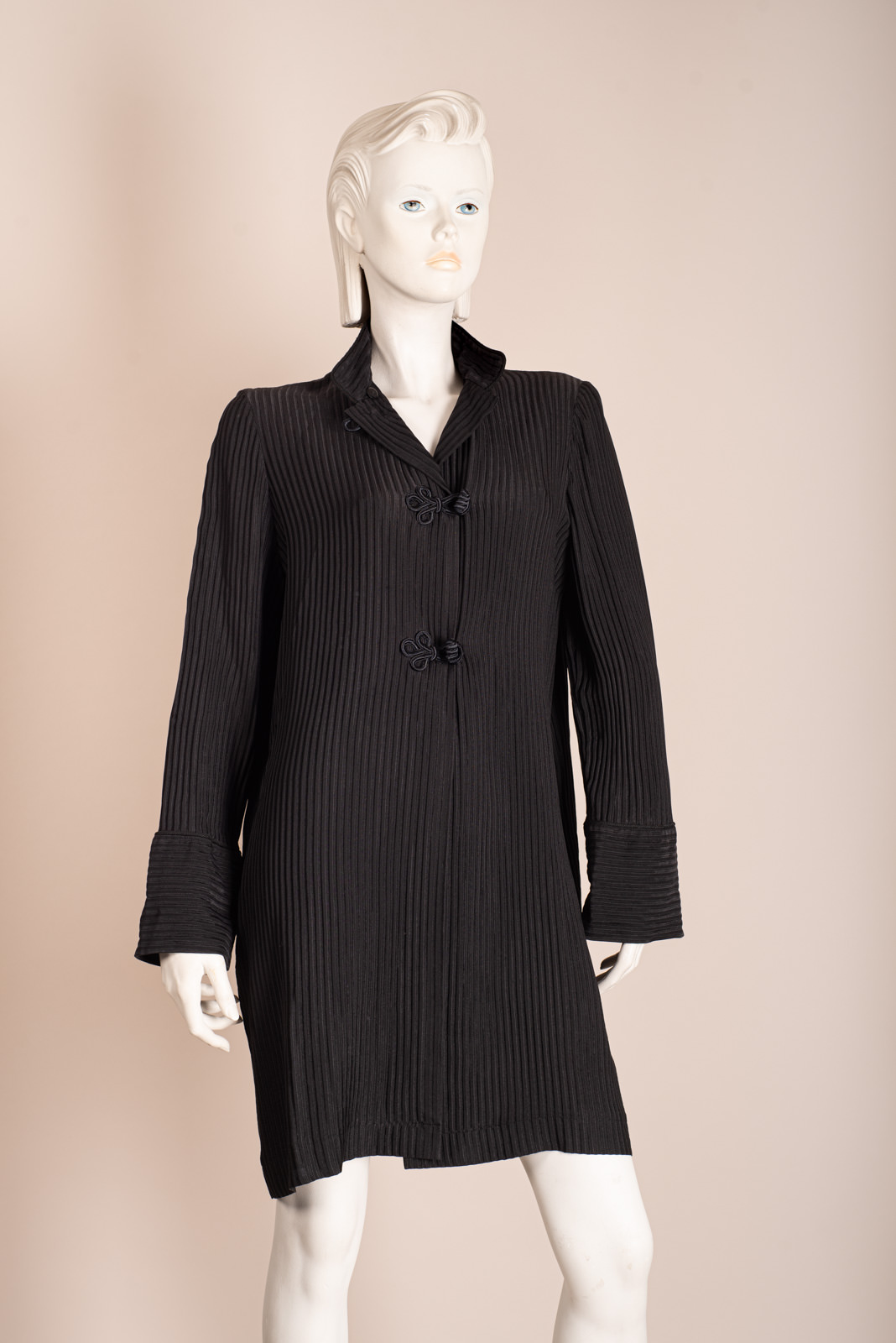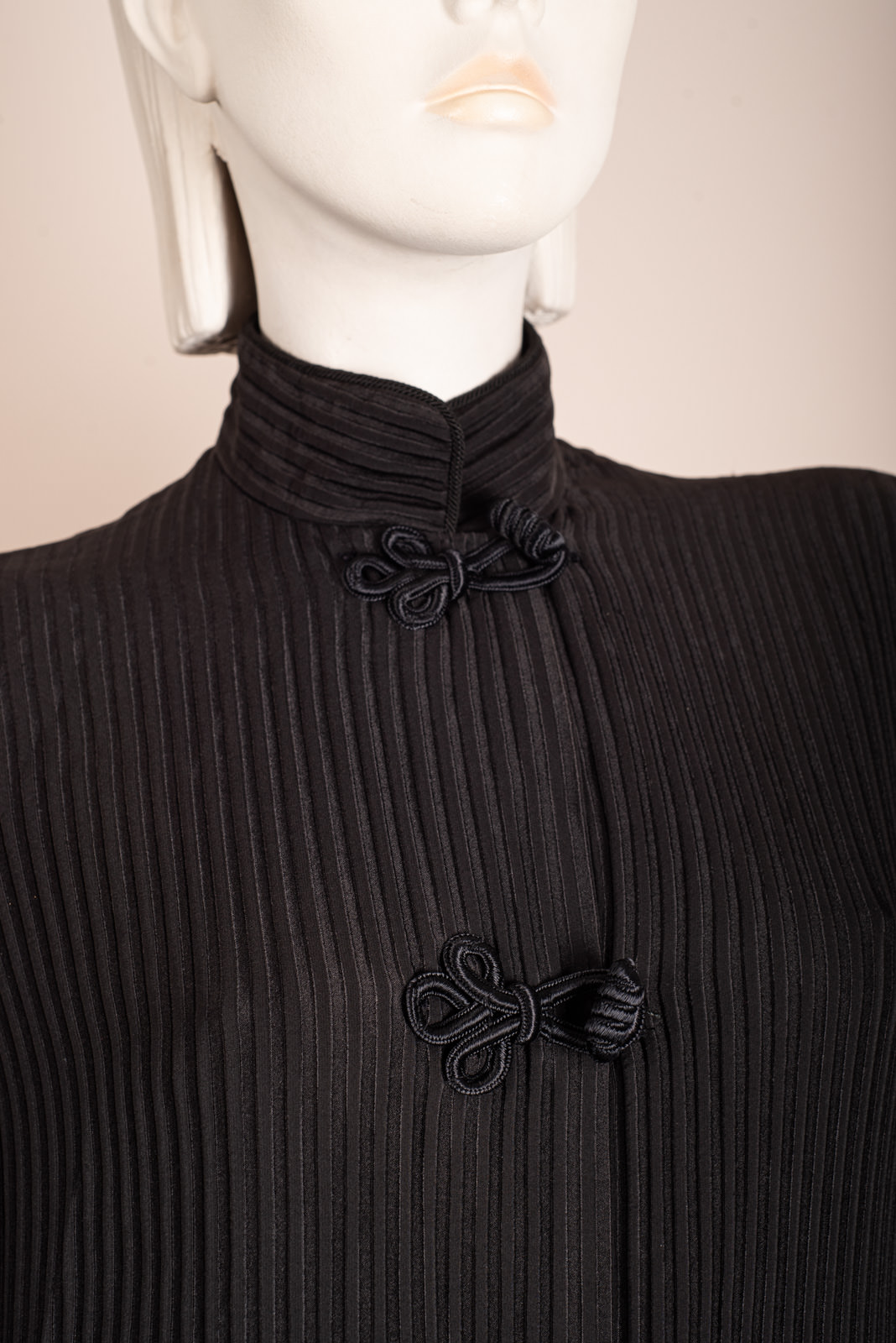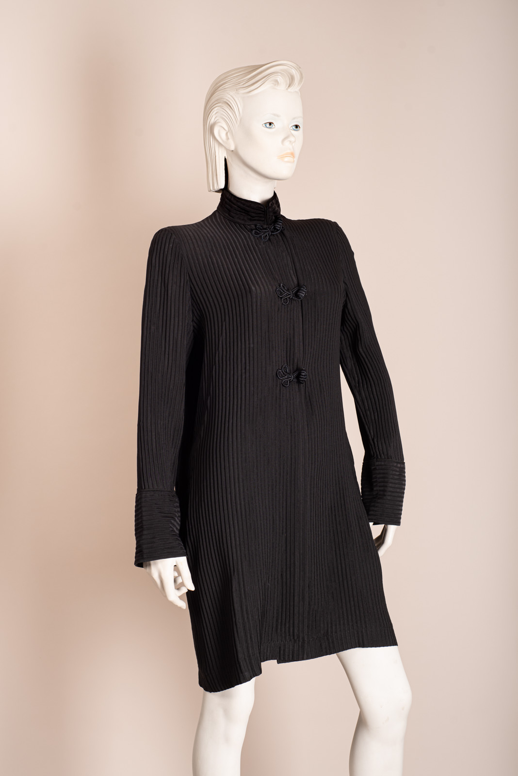 This rare stunning black silk dress from Christian Dior 1960s collection by Yves Saint Laurent is particularly elegant thanks to its brandebourg buttons that creates an oriental yet intemporal look.