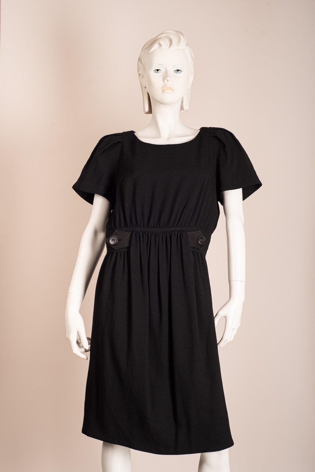 1960s BY YSL BLACK SILK BRANDEBOURG DRESS