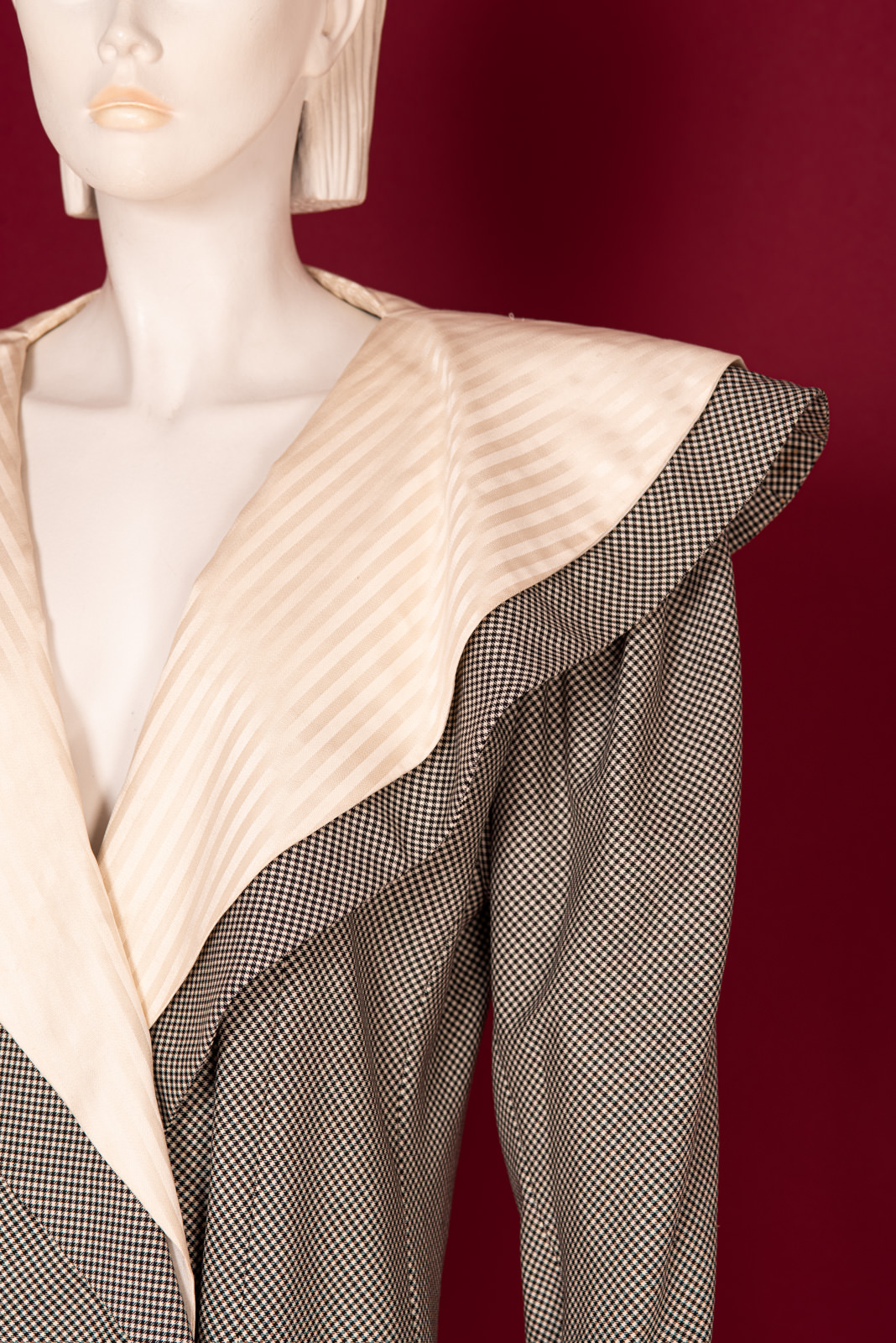 - Double shawl ecru silk collar with tone-on-tone stripes
