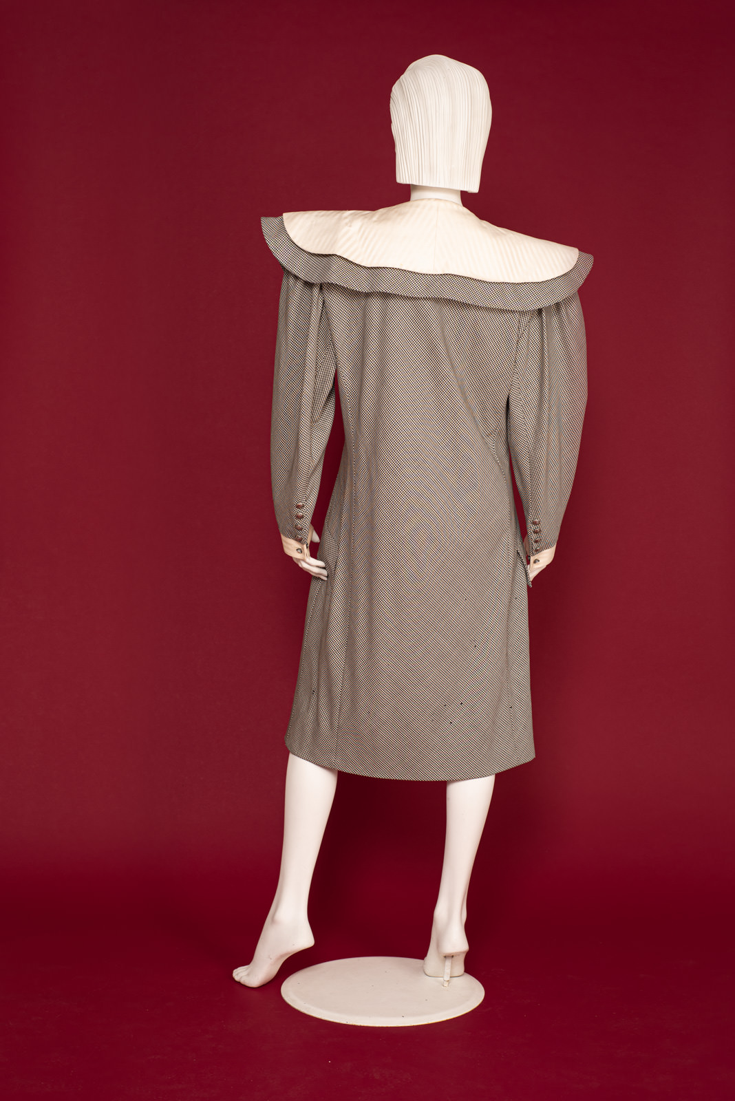 - Black and white houndstooth wool coat dress