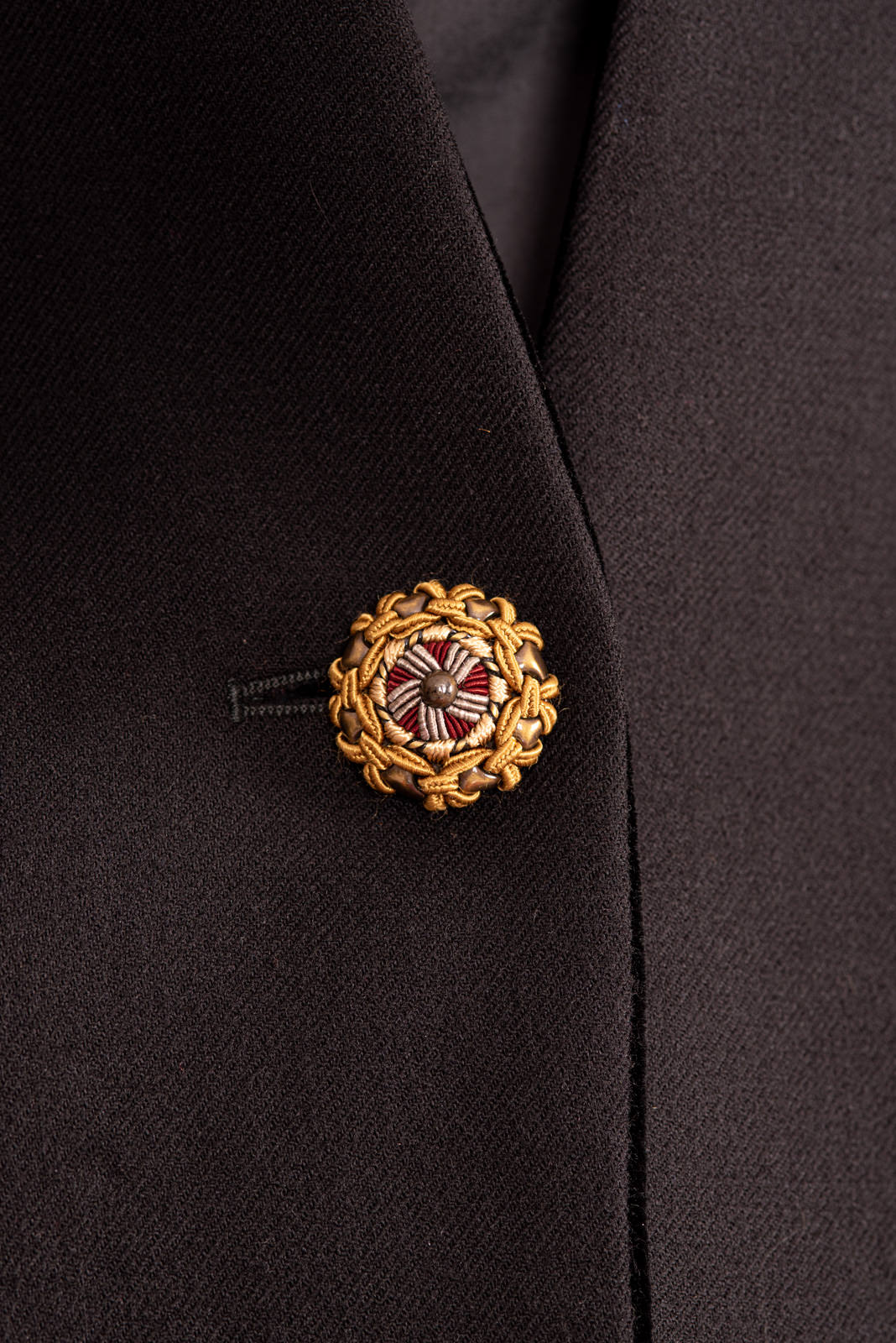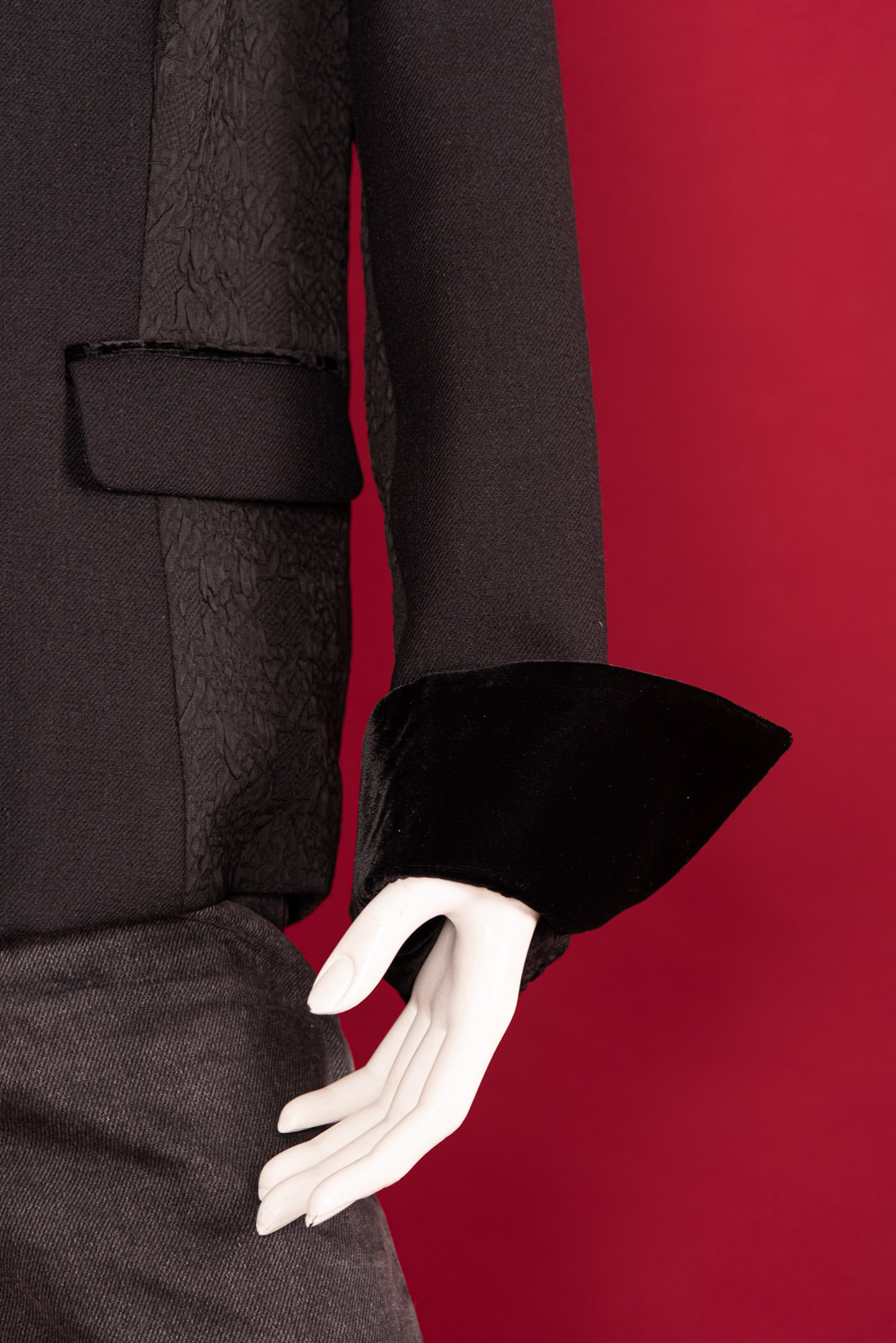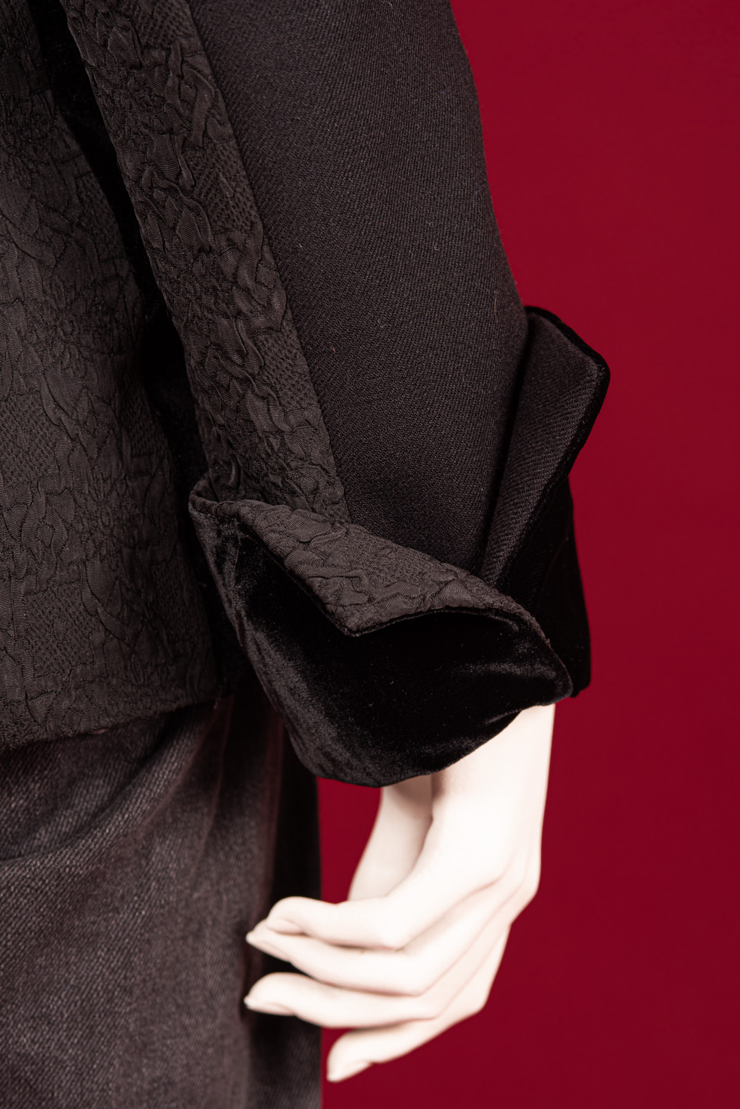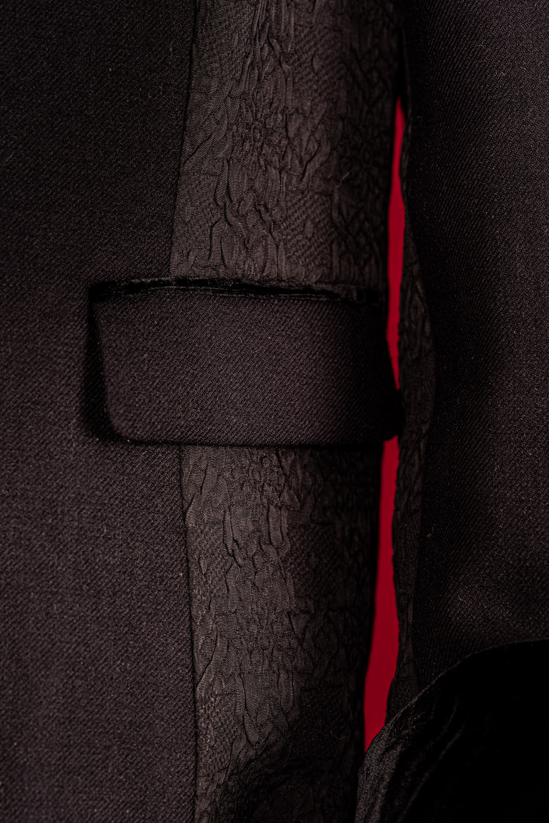 - Composition : No fabric tag, Wool twill, wool jacquard and silk lining
