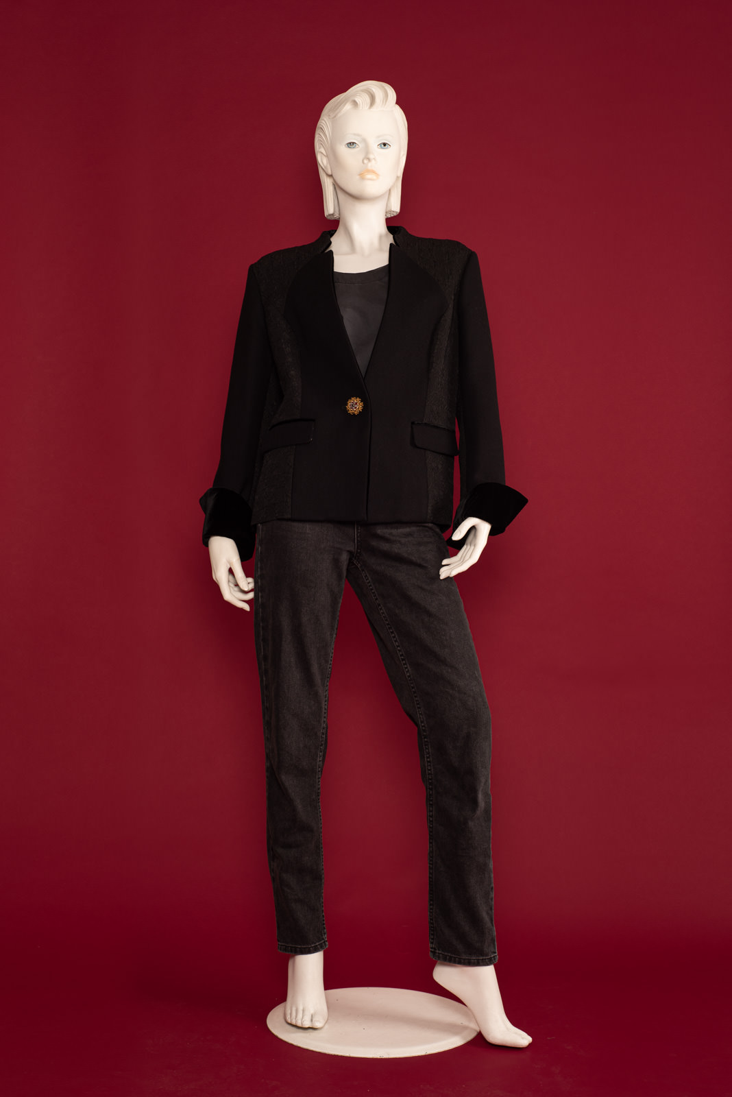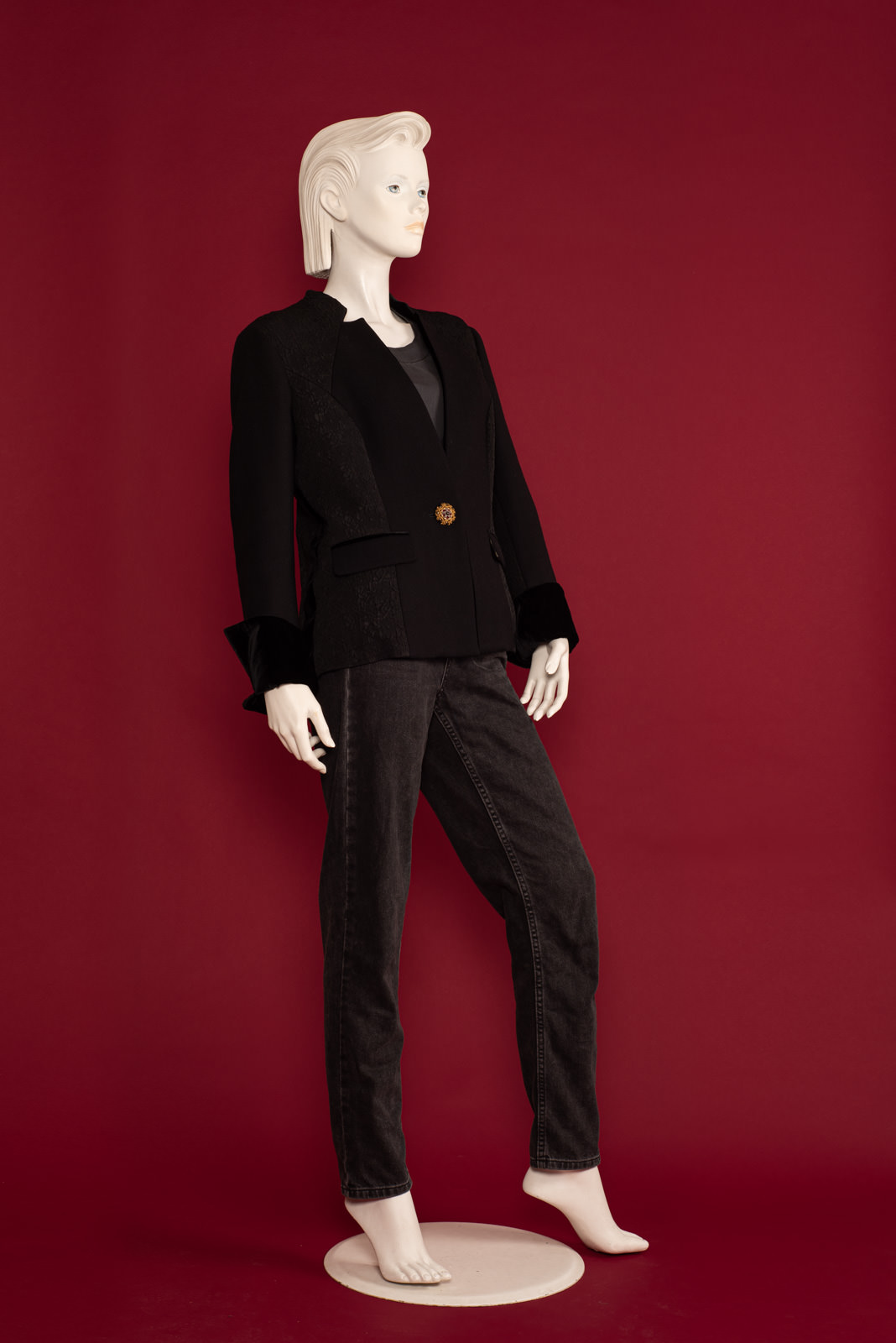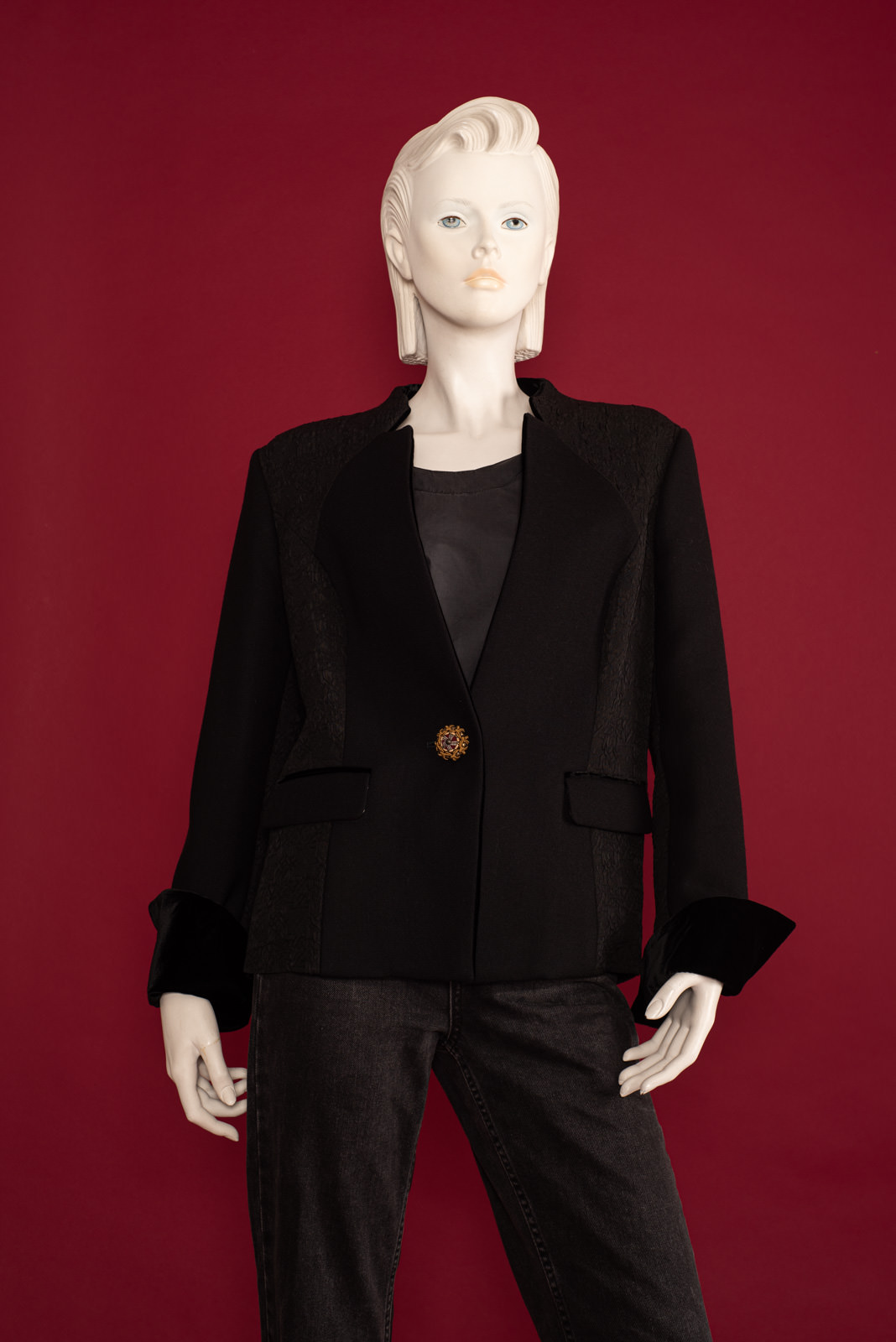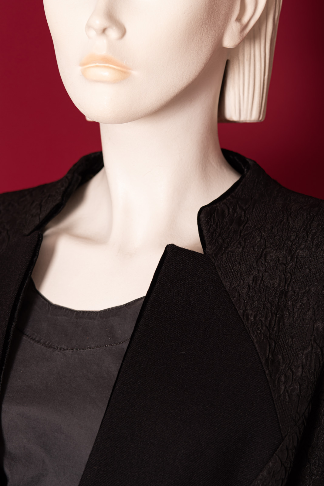 - Composition : No fabric tag, Wool twill, wool jacquard and silk lining