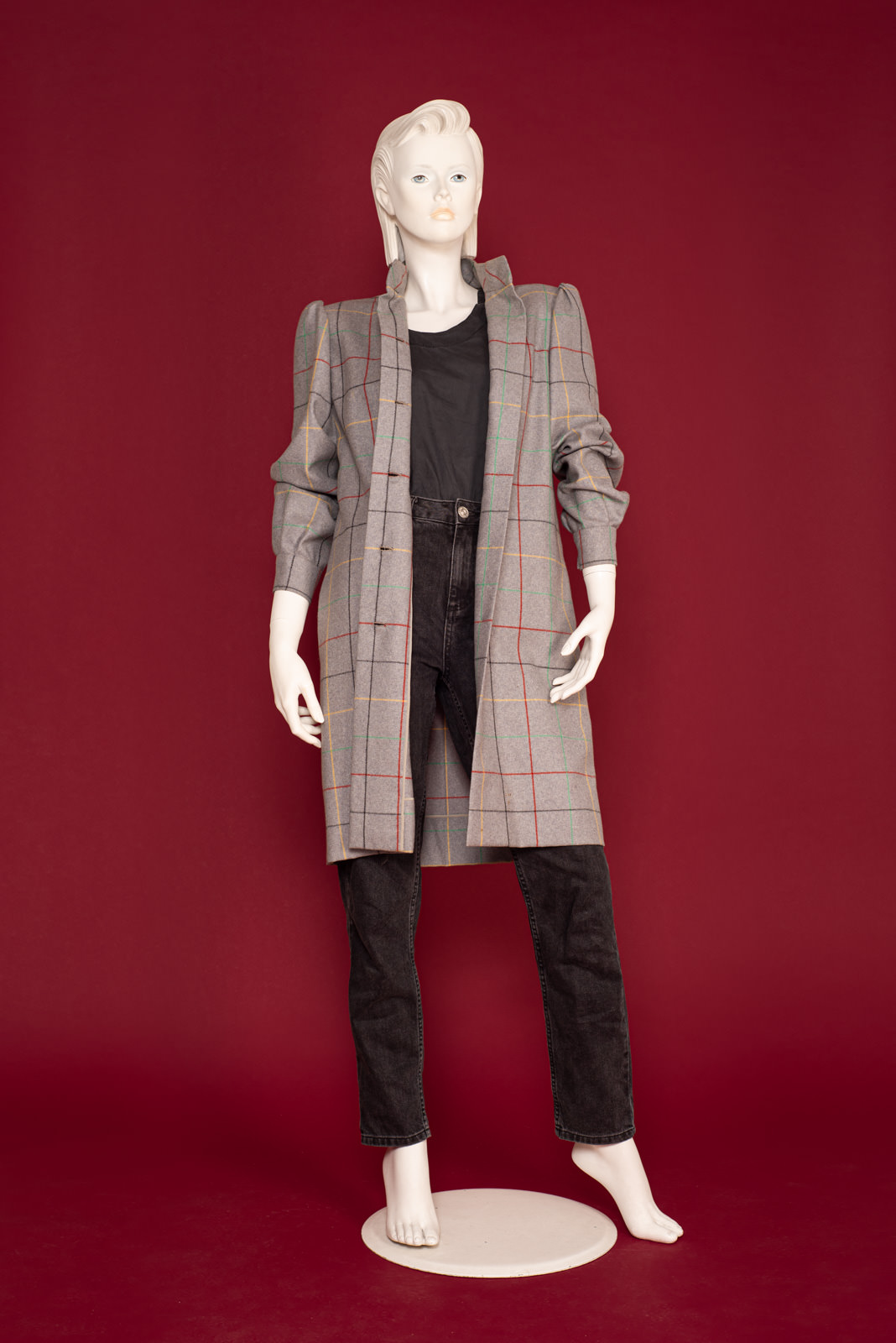 - Gray woolen straight coat