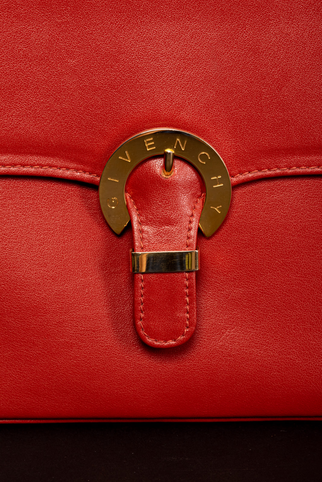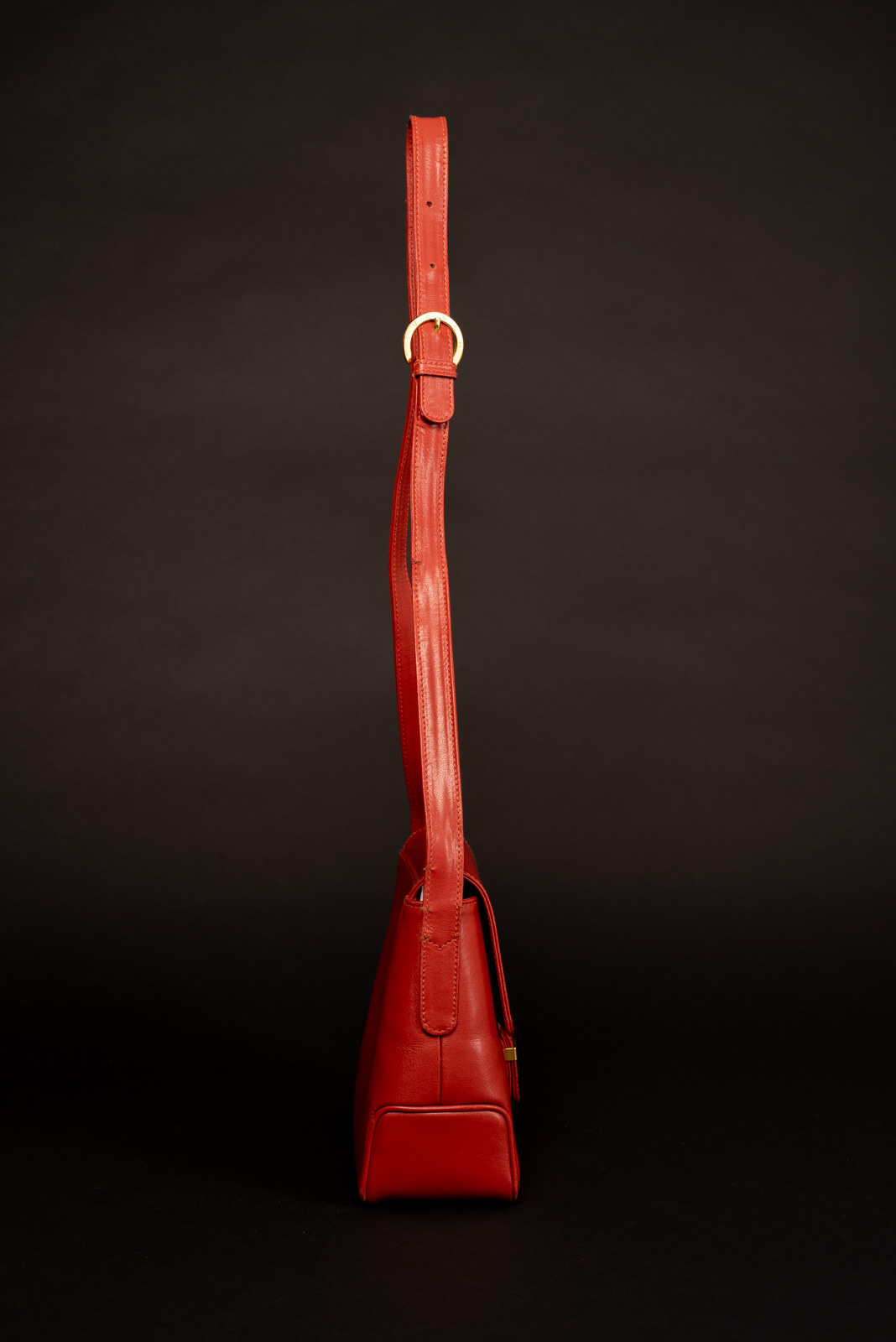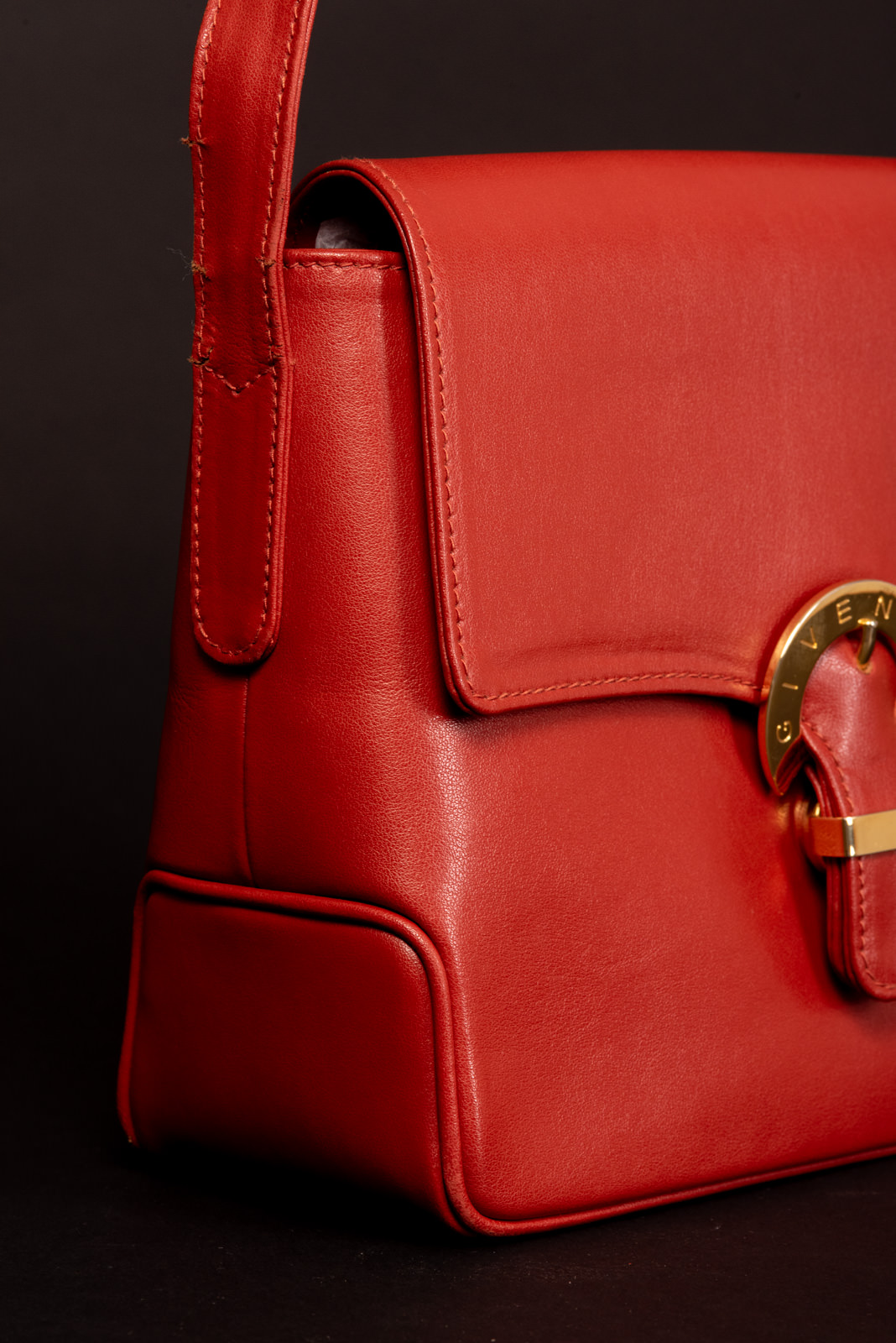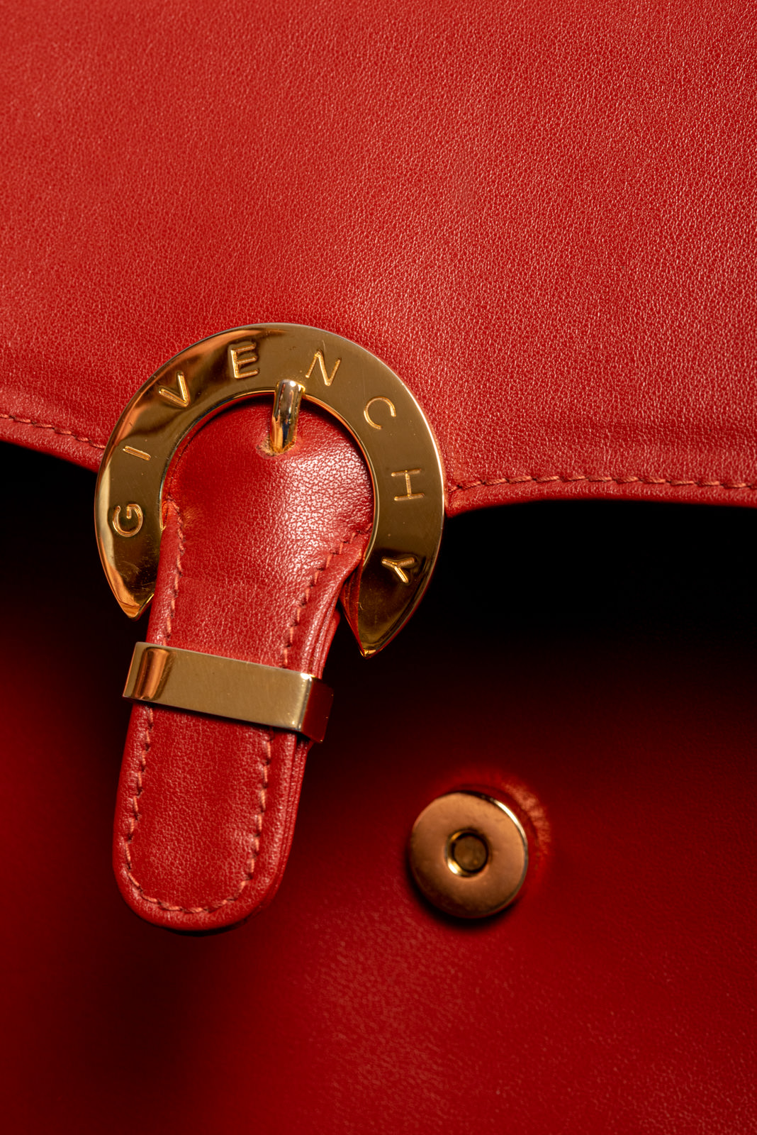 - Golden hardware logo buckle on the front and on the shoulder strap