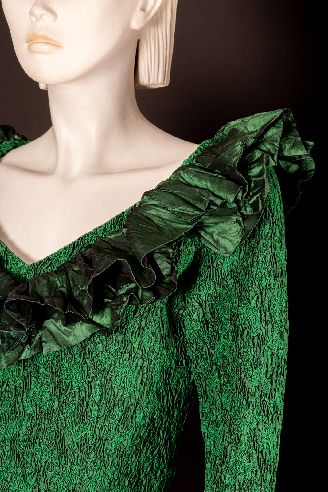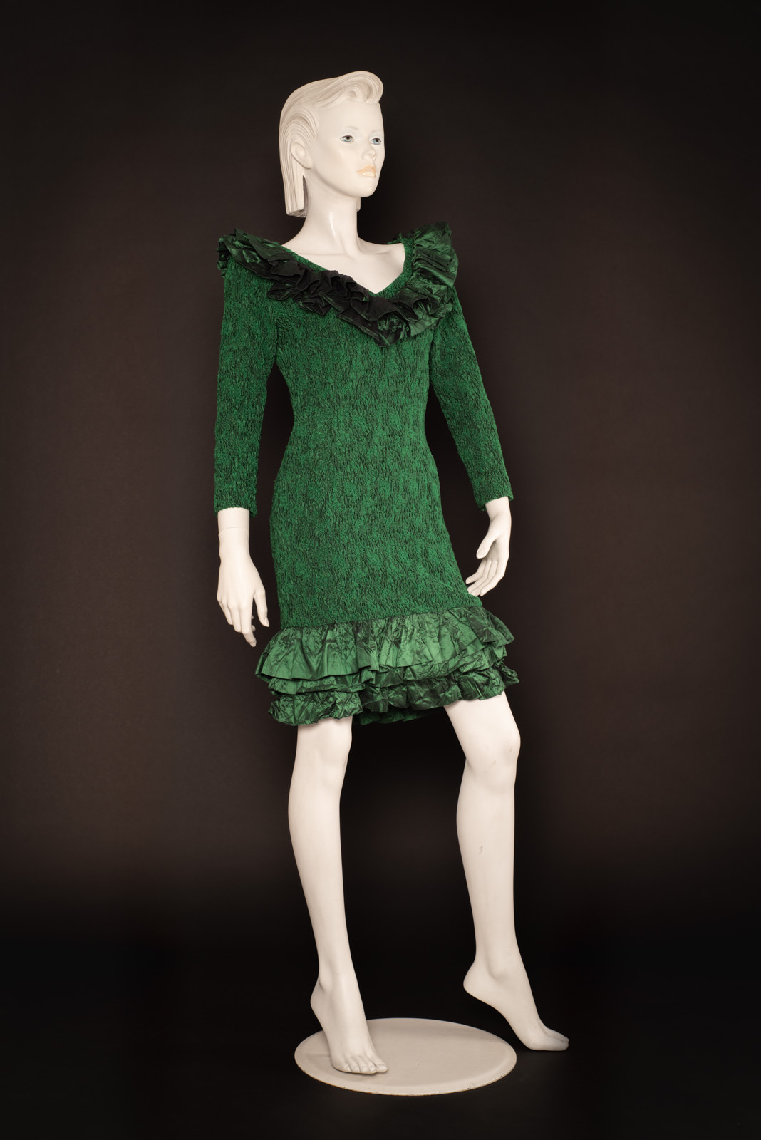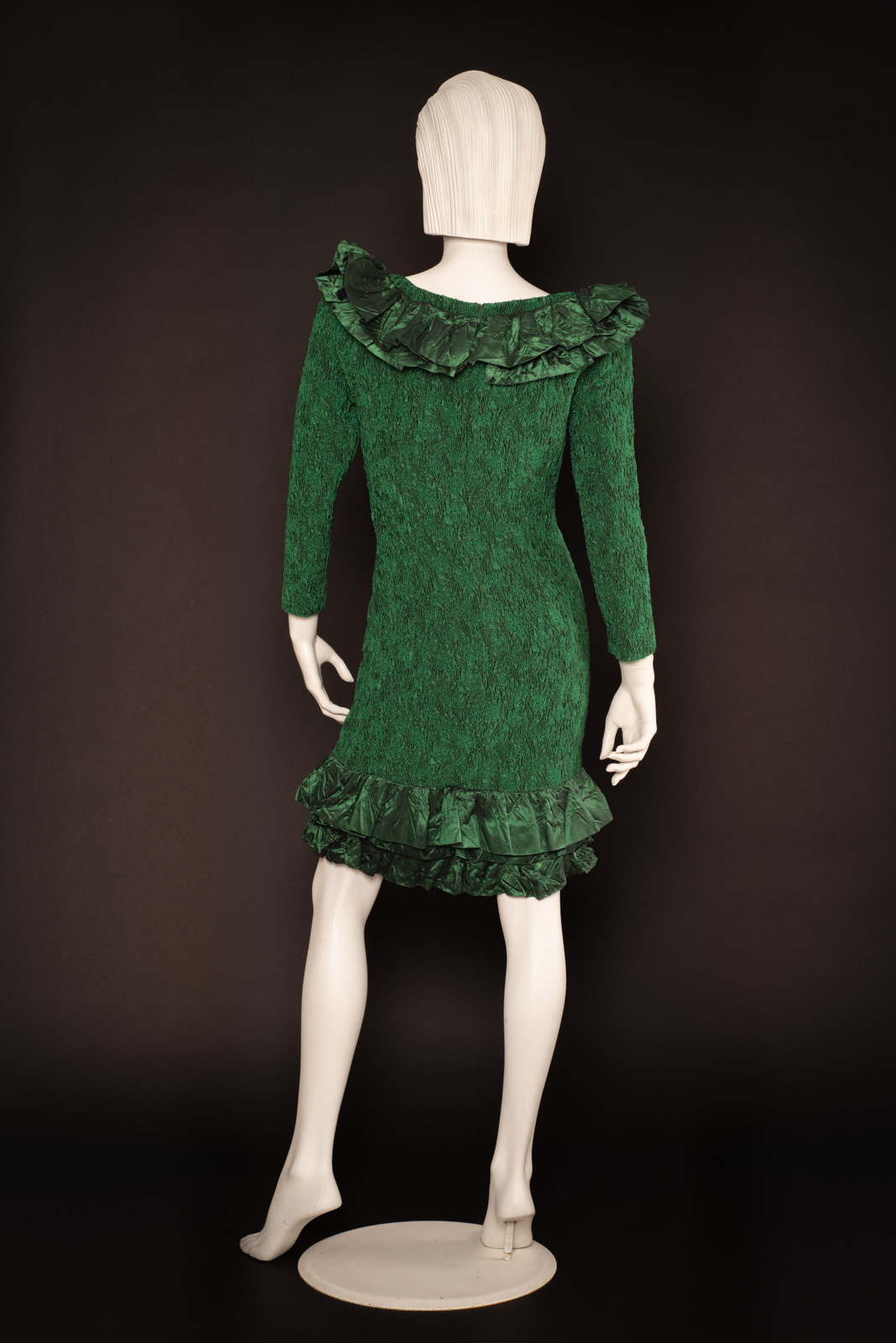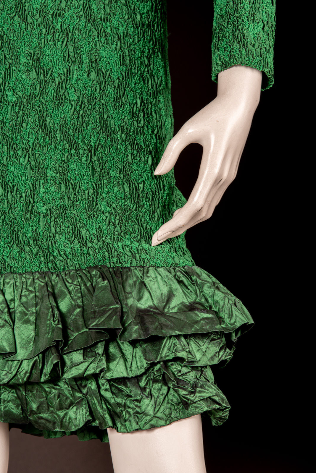 1980s GREEN RUFFLE COCKTAIL DRESS