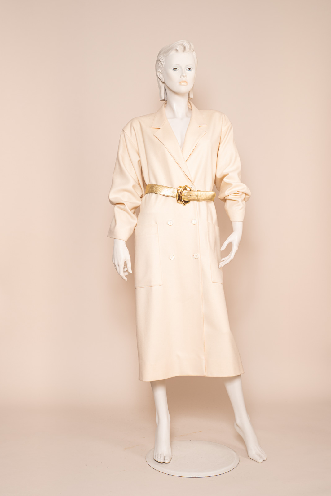 Rare Guy Laroche woolen ecru coat dress from the 1990s, a must have that you can wear both as a dress or as a coat, featuring Guy Laroche’s perfect cut signature.