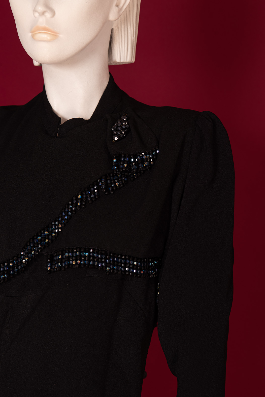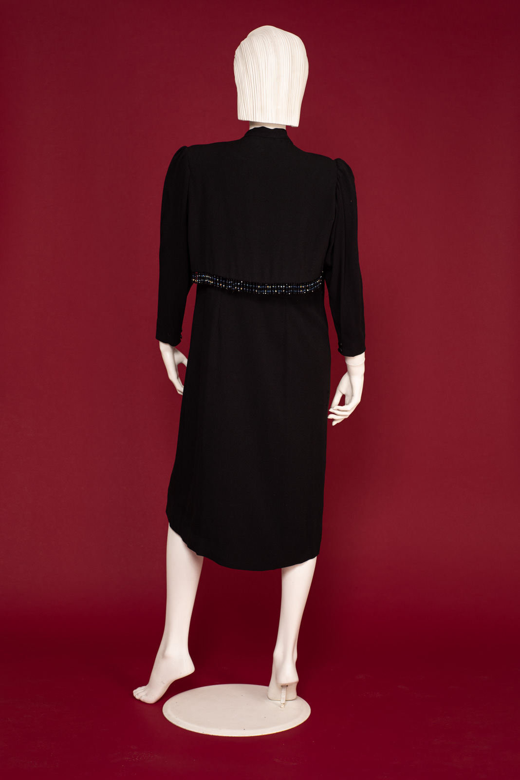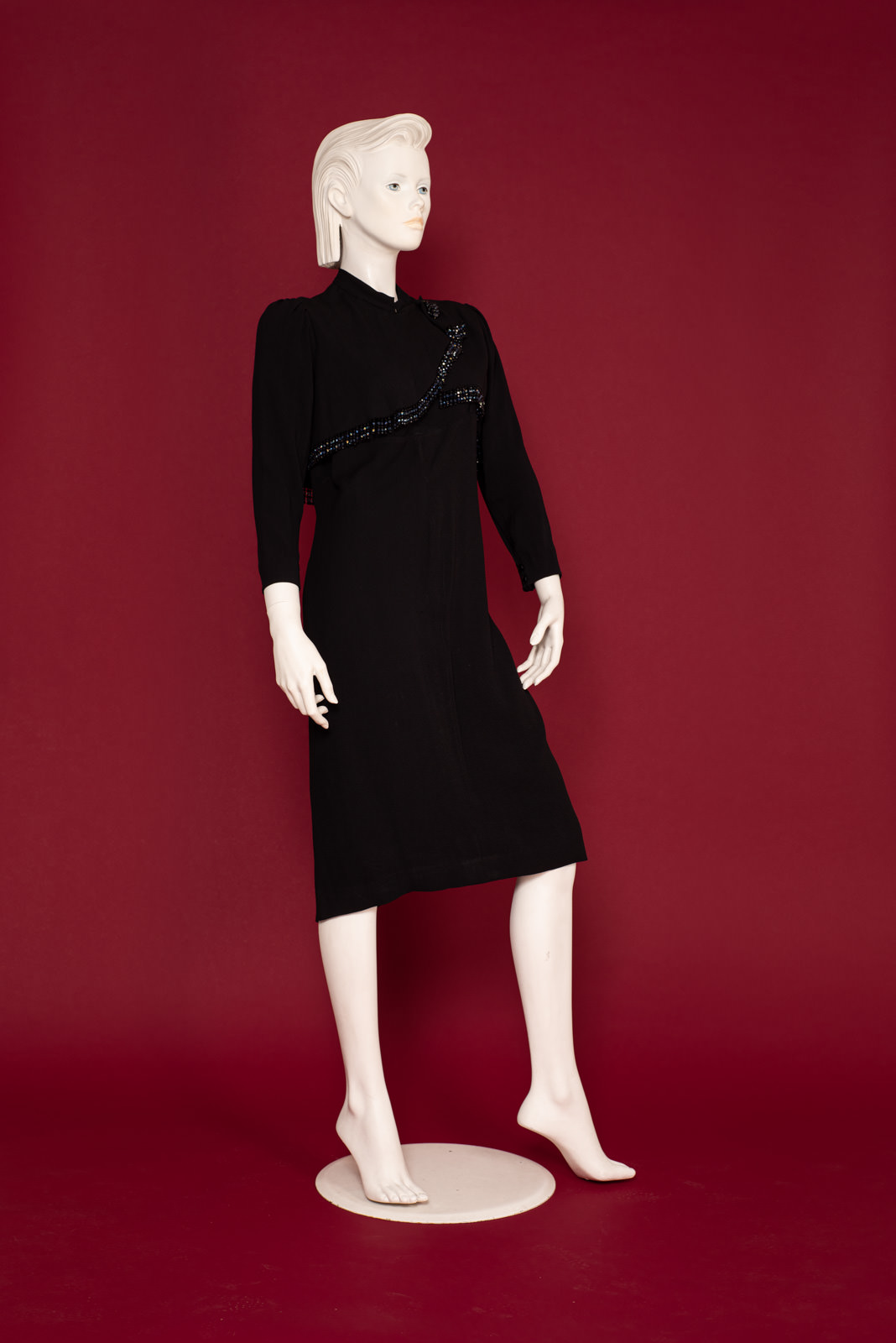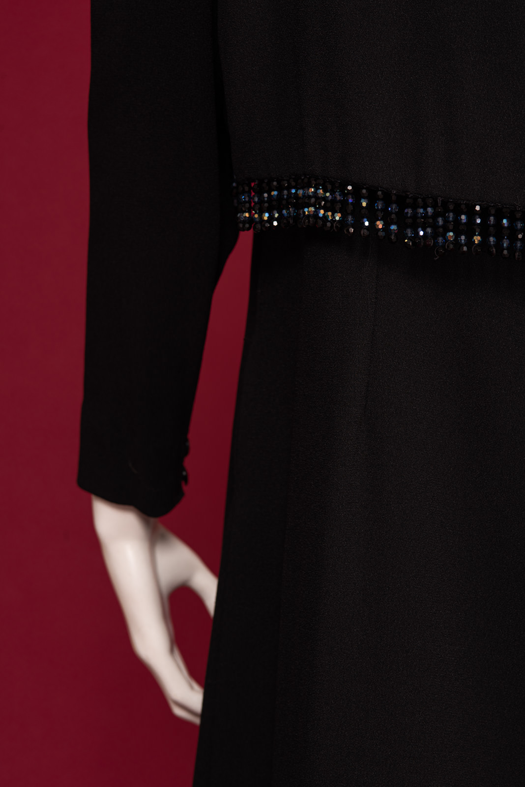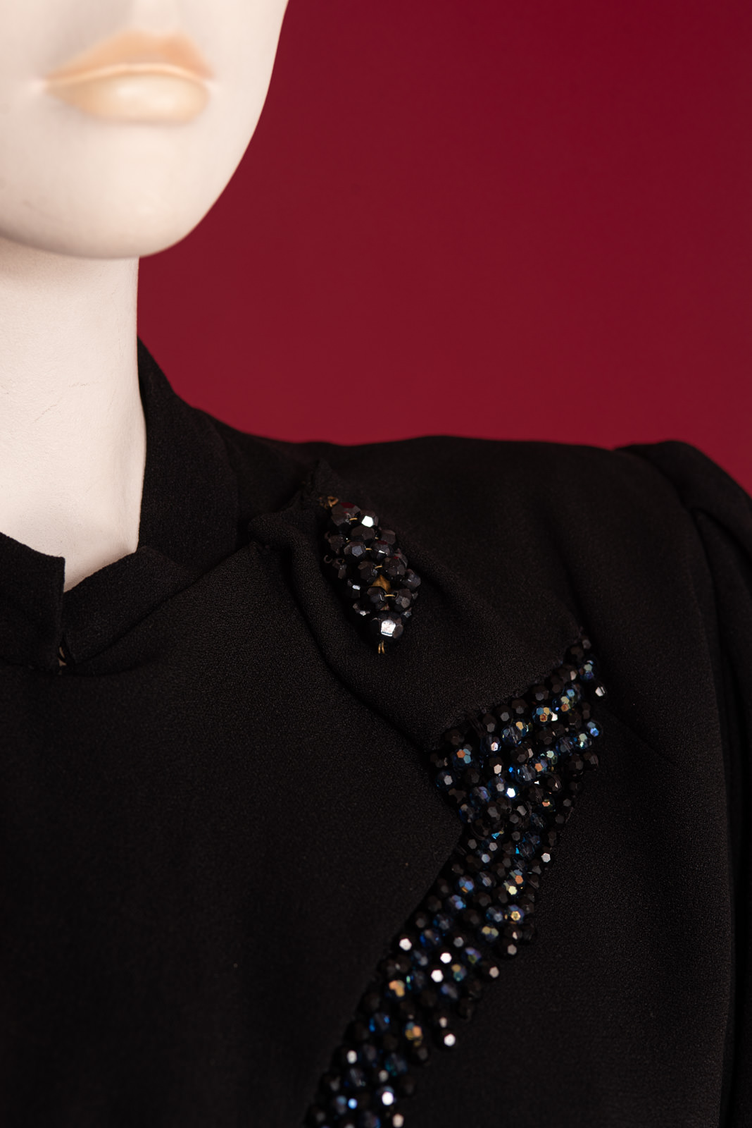 This Haute Couture black dress is a unique collection piece as it comes directly from the dressing of the House Heim Director from the 1950s. Its perfect cut and refined details like the tassels on the vest makes it a really easy-to-wear dress for any dressed up occasion.