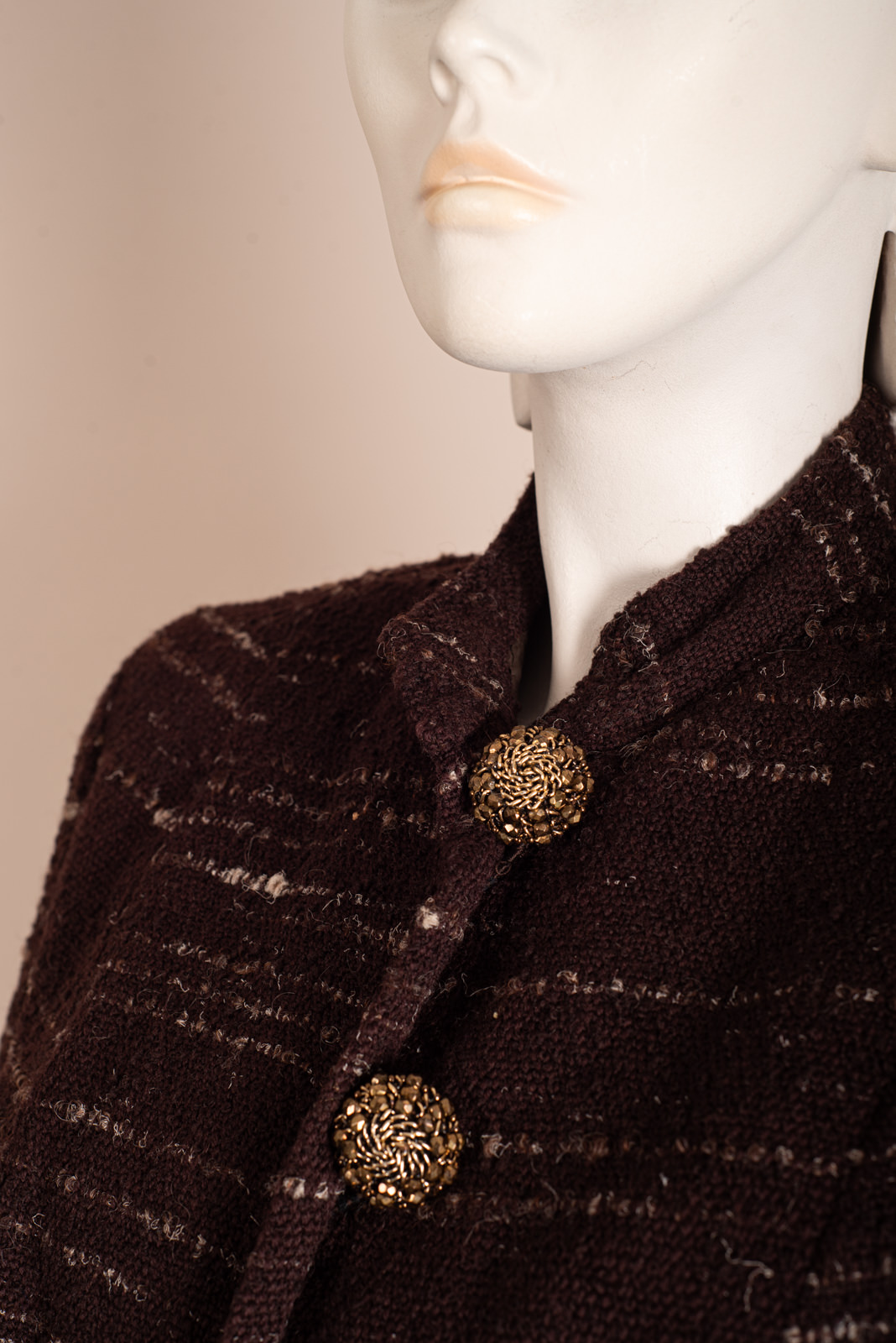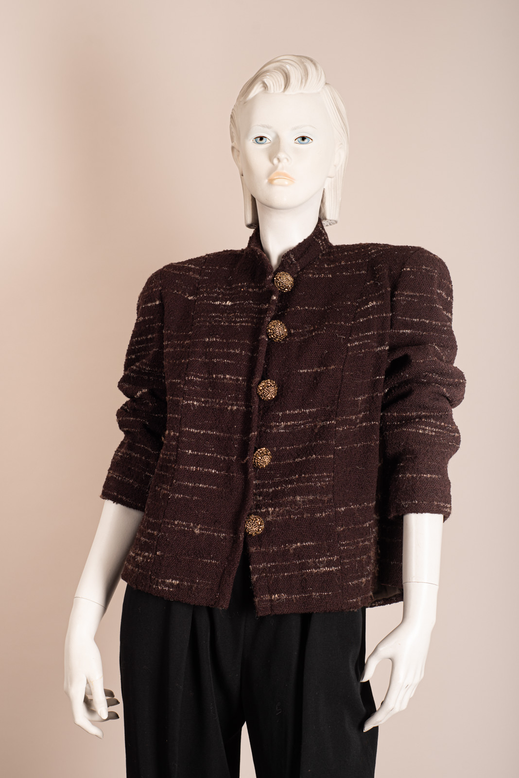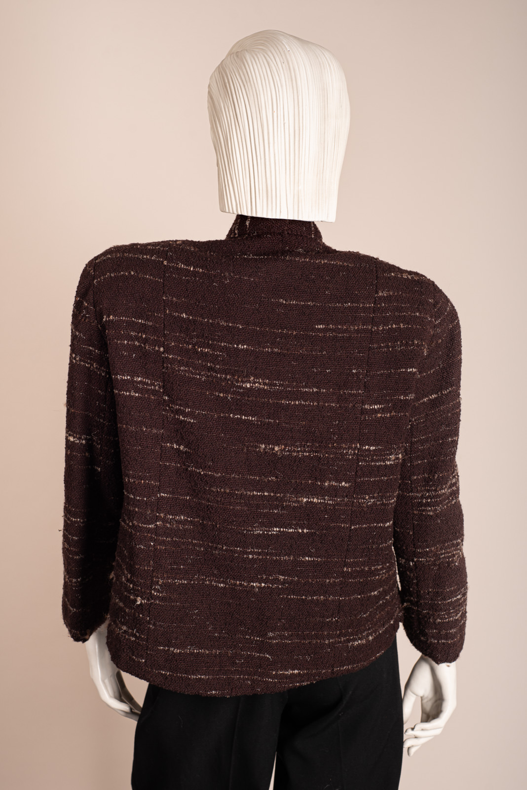 - Short jacket in heather brown wool boucle