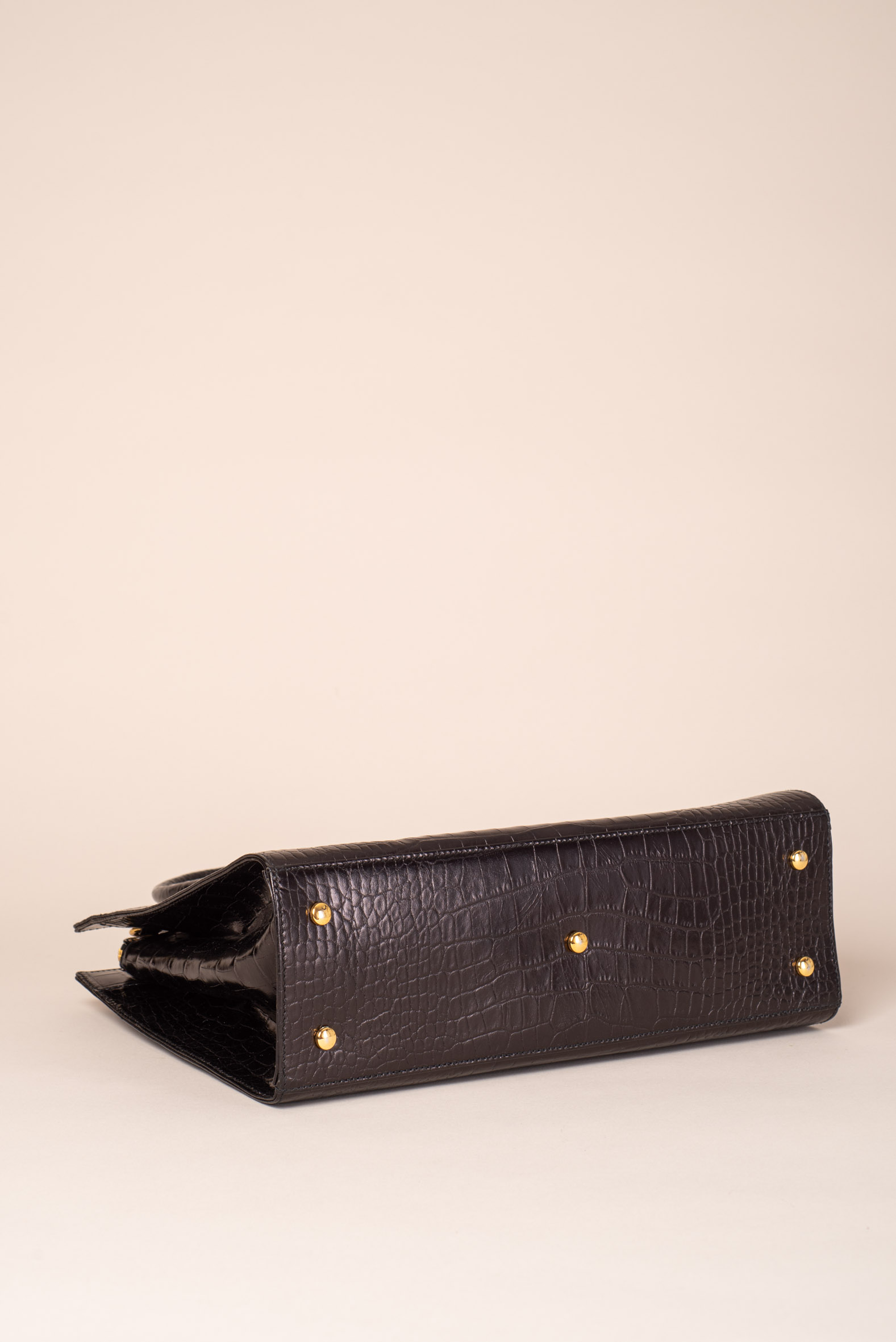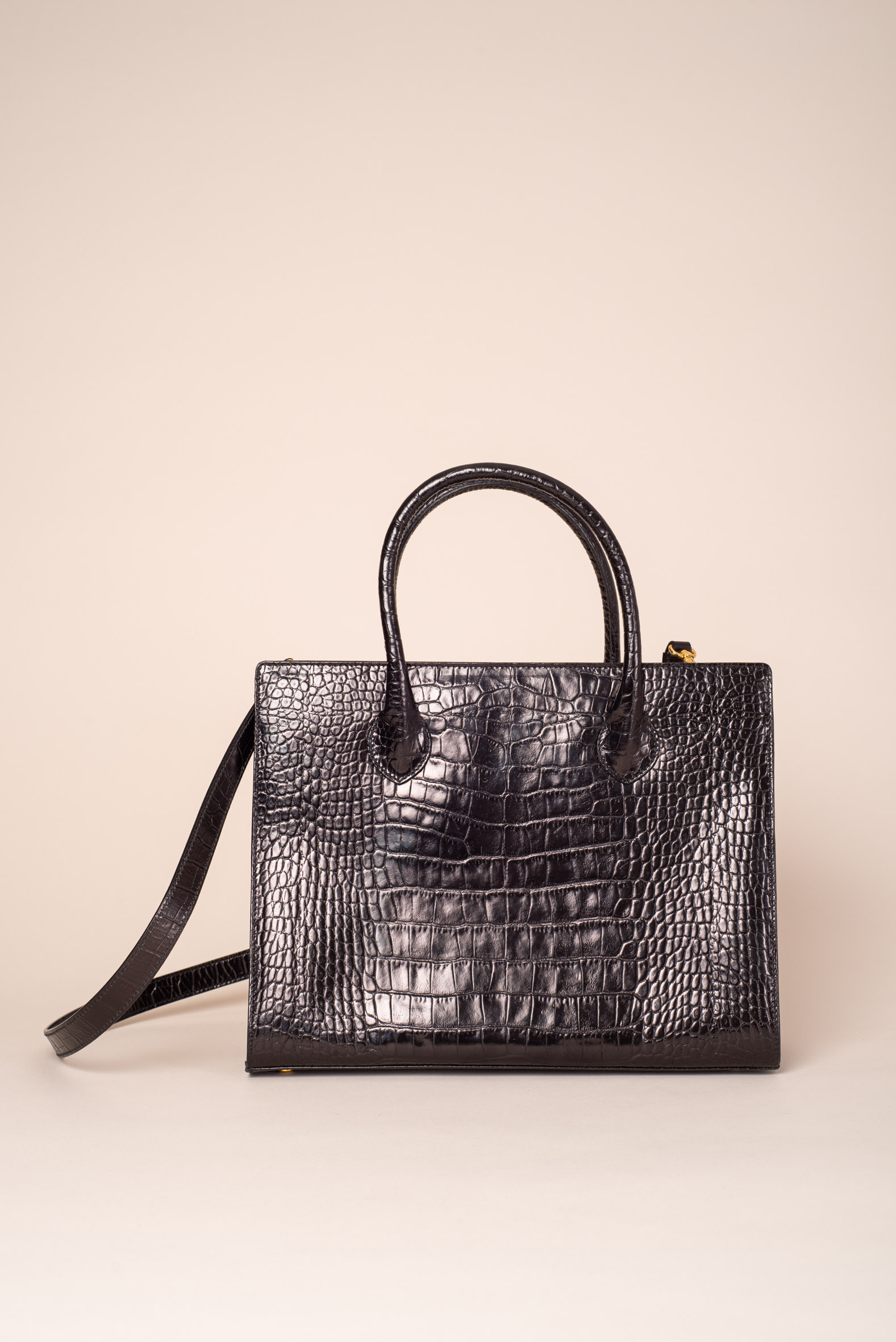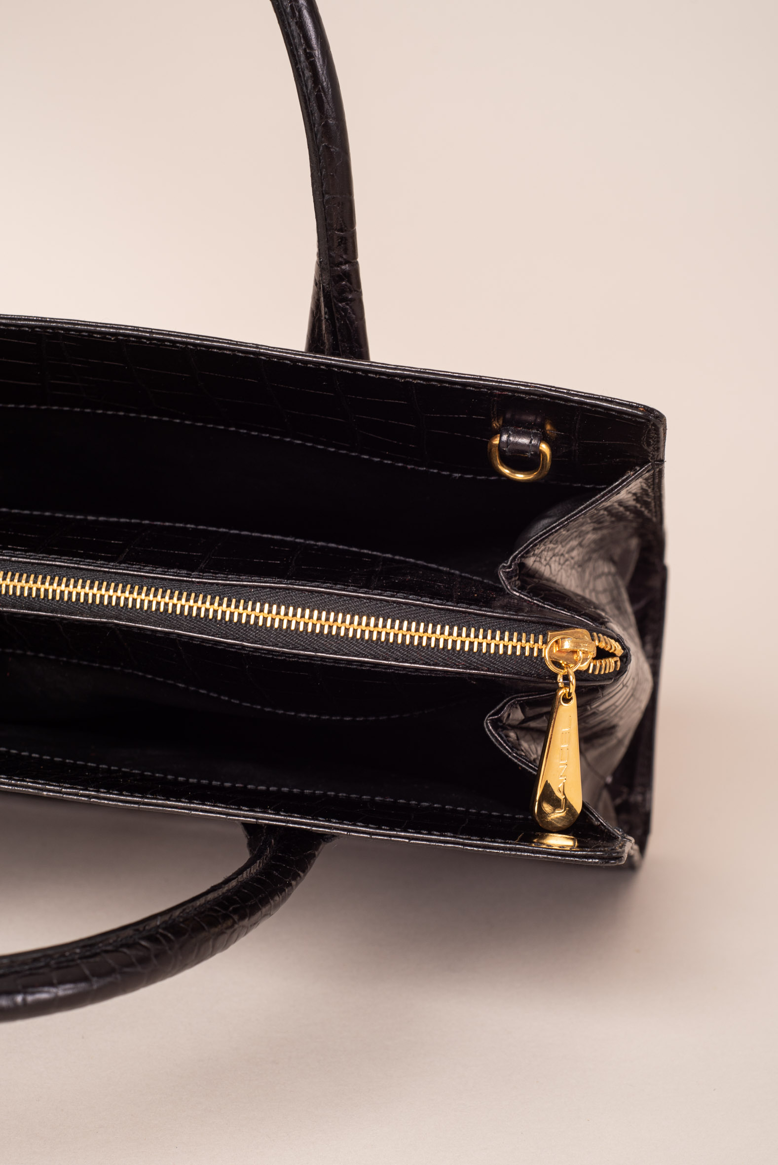 2000s BRAND NEW BLACK EMBOSSED CALFSKIN LEATHER BAG