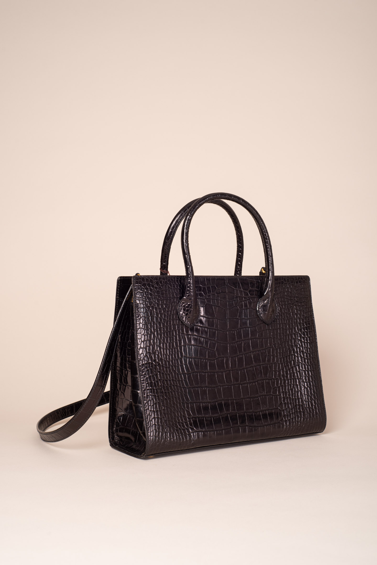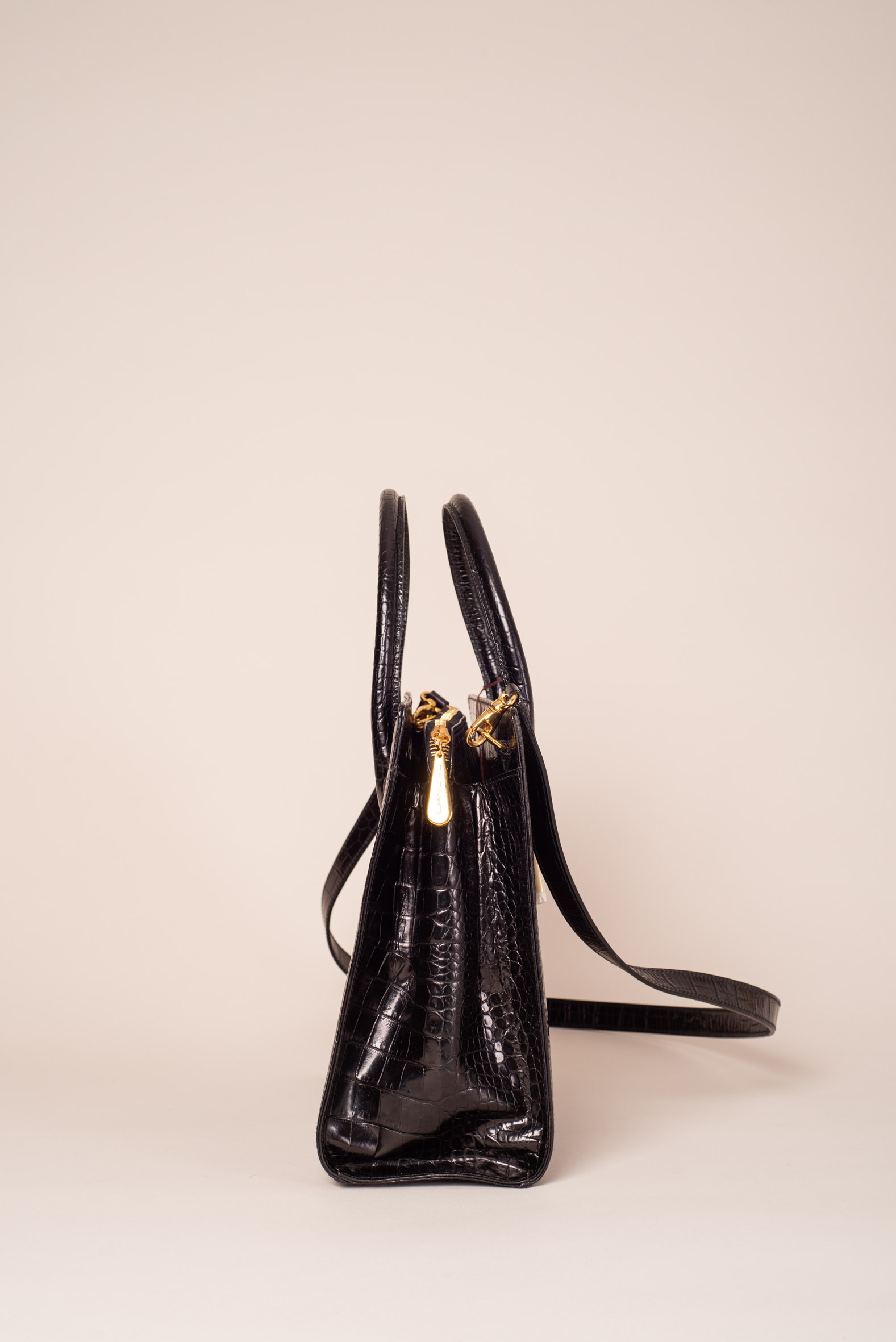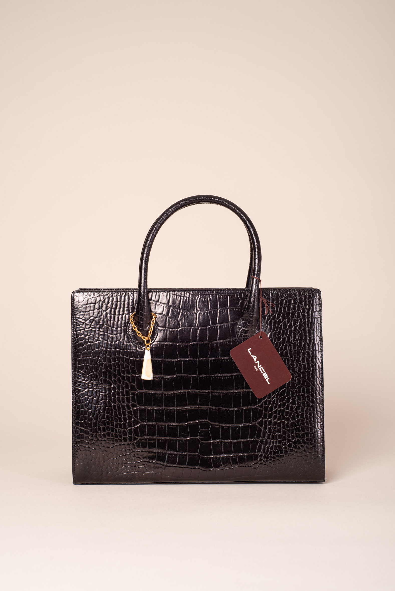 2000s BRAND NEW BLACK EMBOSSED CALFSKIN LEATHER BAG
