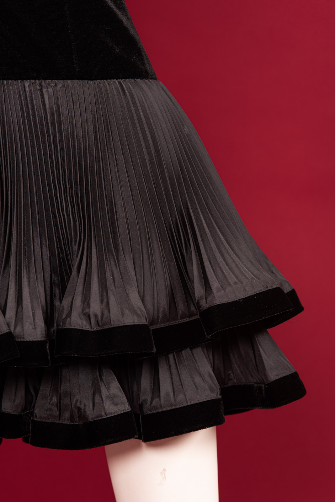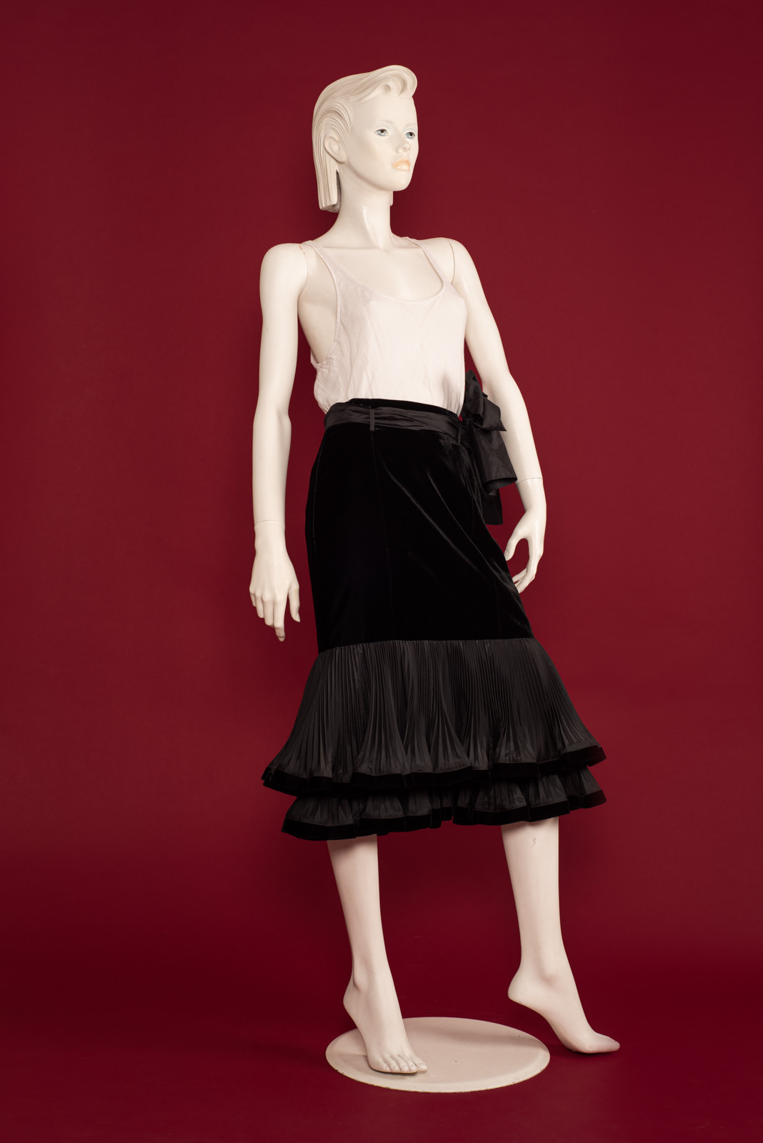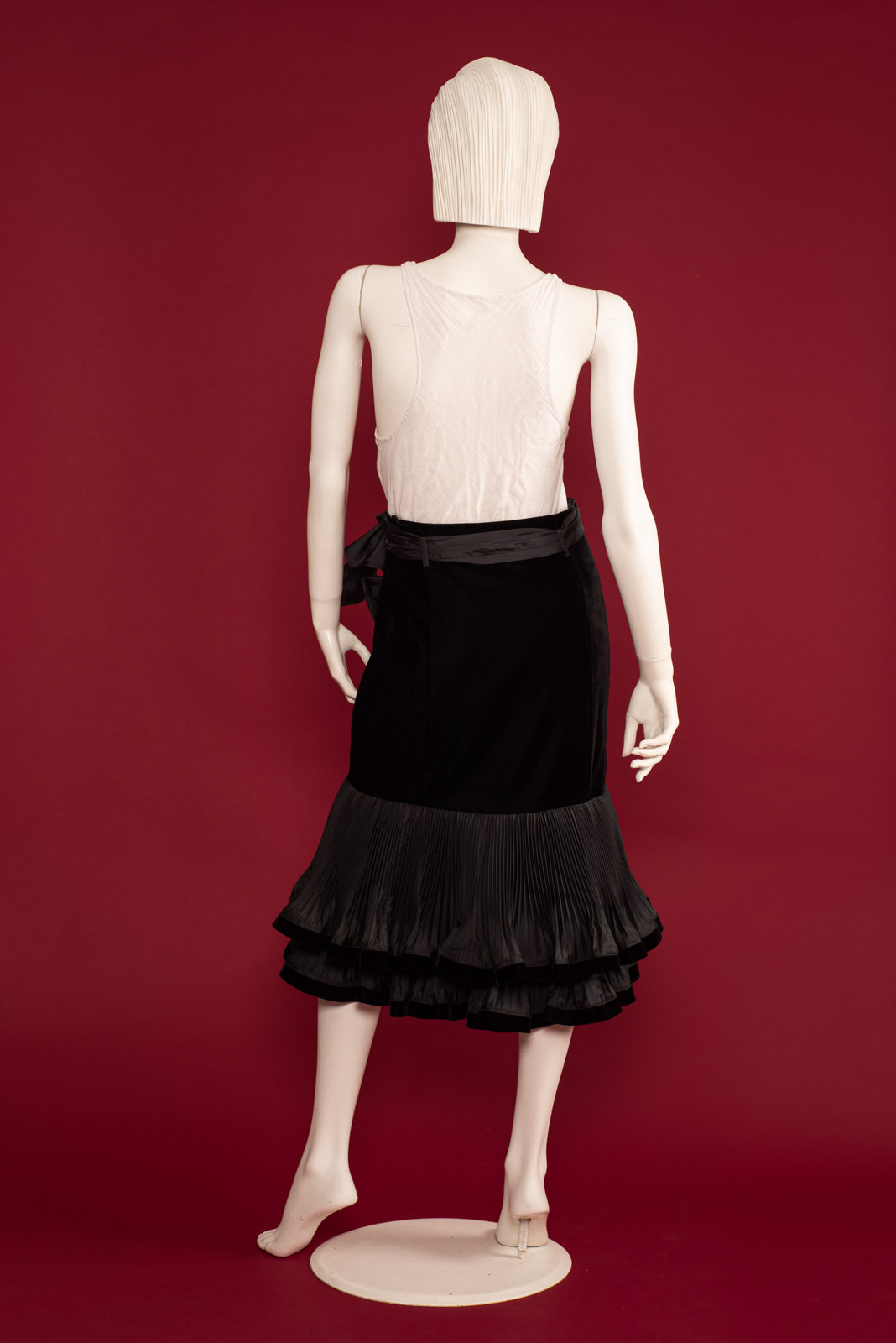 Voguish Louis Feraud velvet skirt from the 1970s with a gorgeous pleated ruffle base, a perfectly tailored vintage treasure to wear on any occasion with matching accessories !