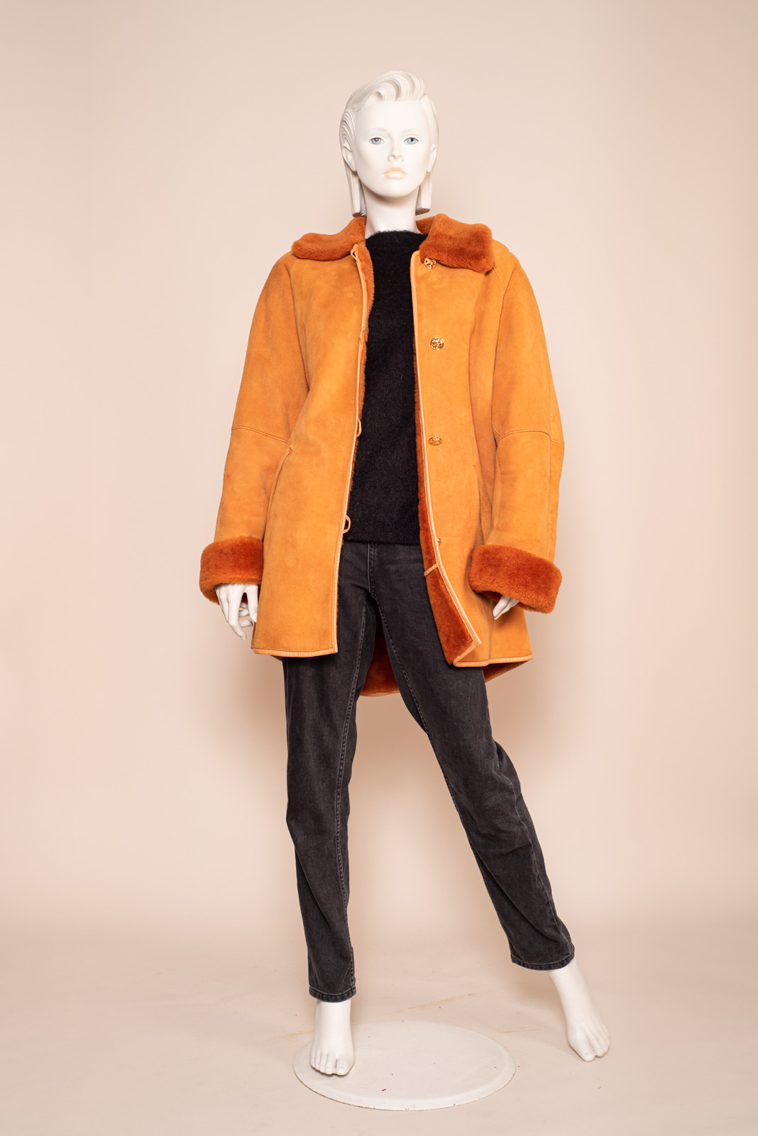 Rare Nina Ricci Apricot Sheepskin 3/4 coat, a colorful splendid couture coat that can highlight any winter look !