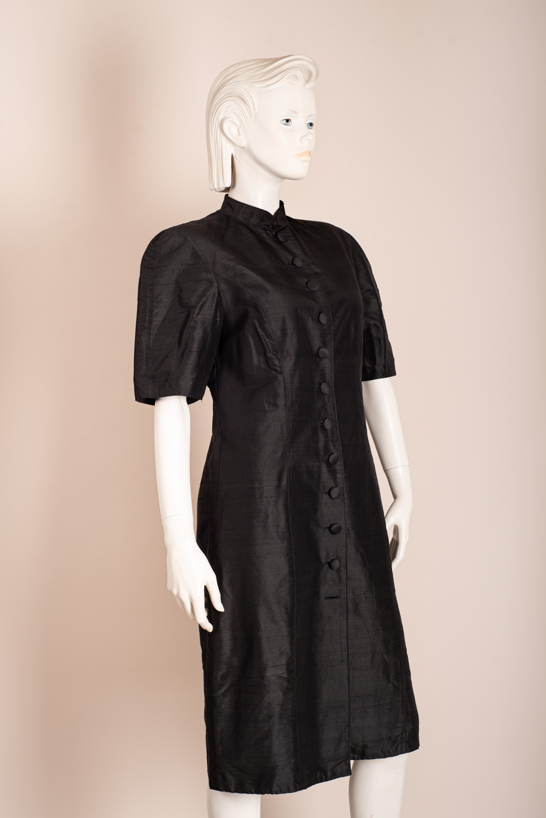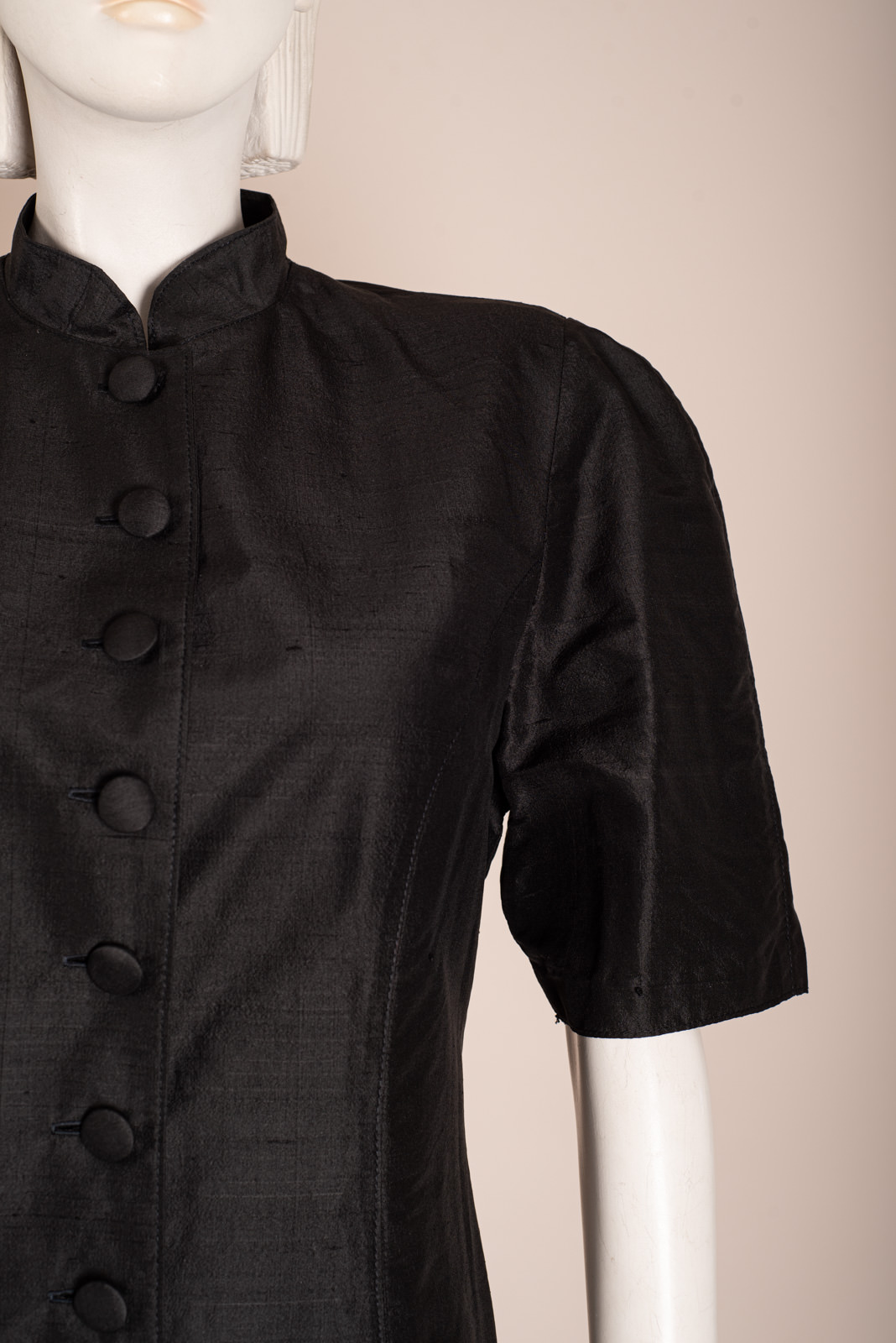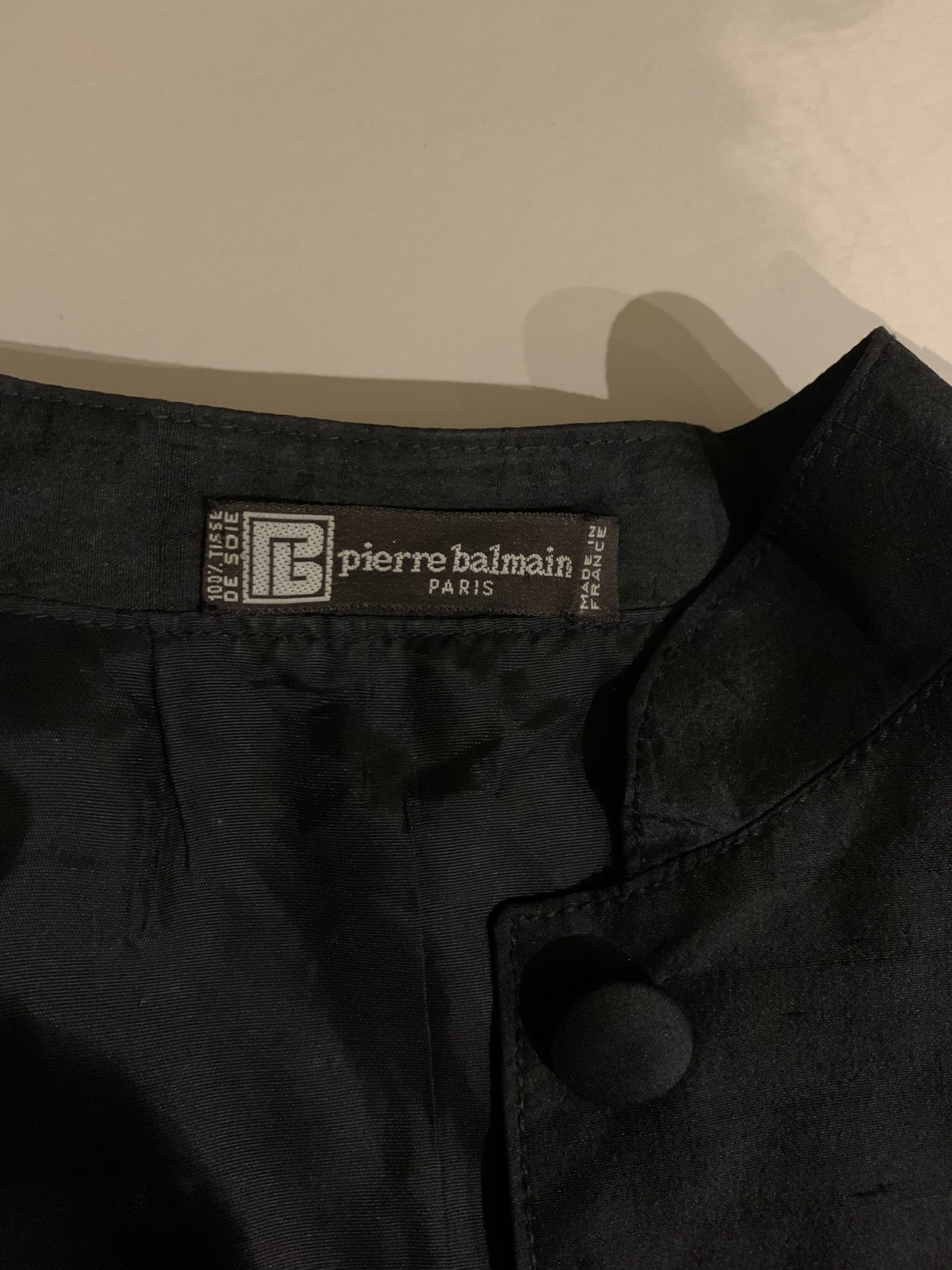 Splendid Pierre Balmain Black shantung dress from the 1950s, this couture piece has every features of the greatness that Balmain was so famous for in the 50s : elegance, timeless and feminine cut, lavish fabric, rich details.