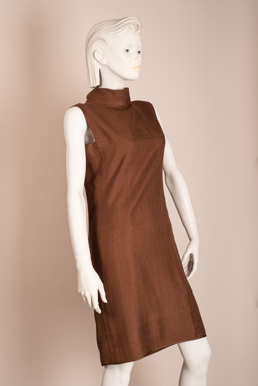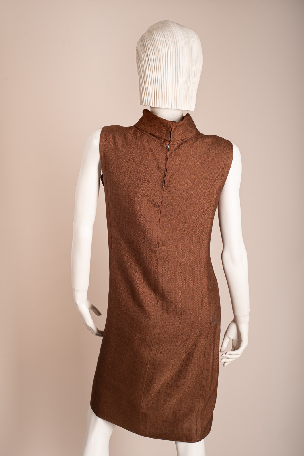 Gorgeous (attributed to) Pierre Cardin brown linen sheath dress from the 1960s.
