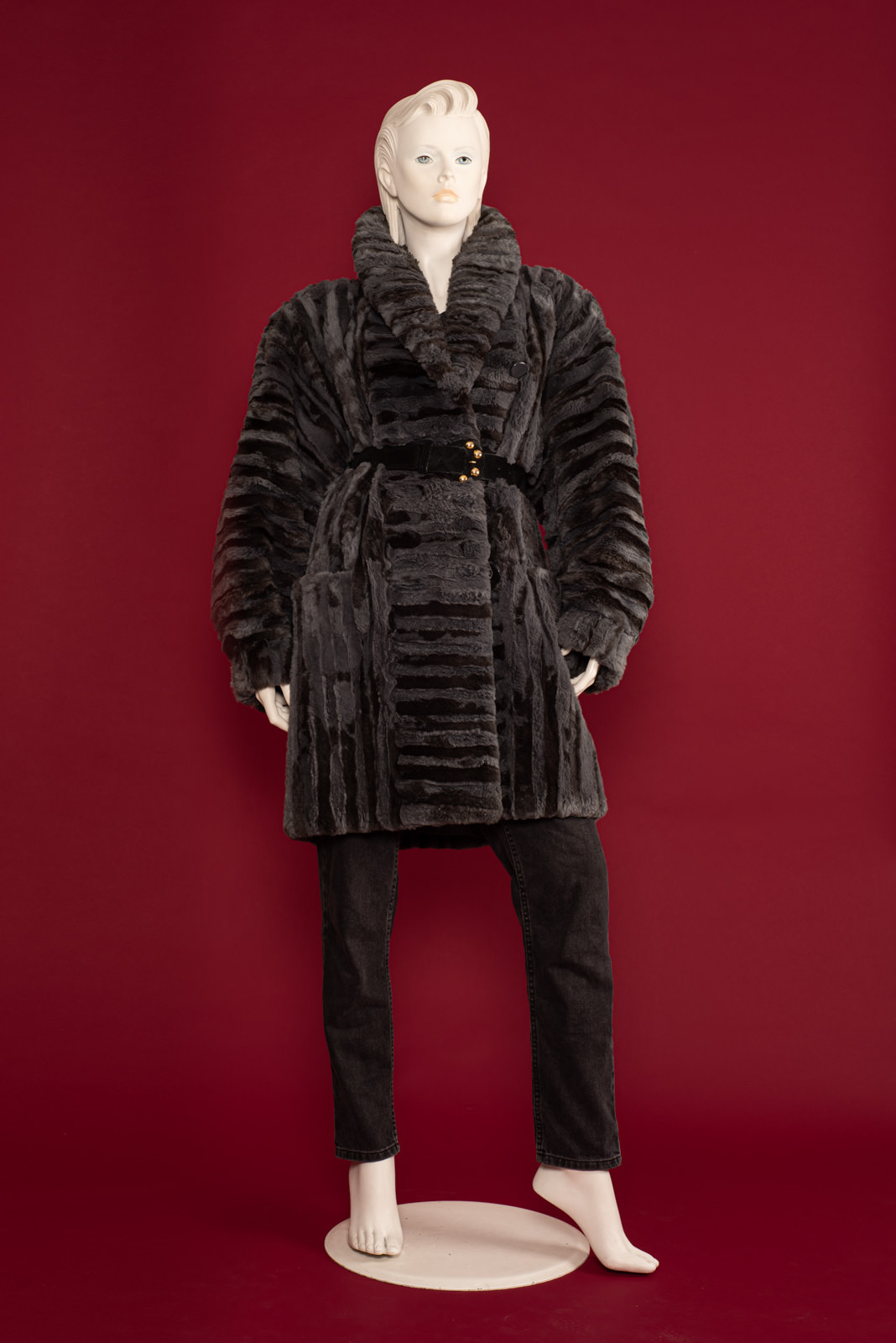- Mid-length bluish otter fur coat
