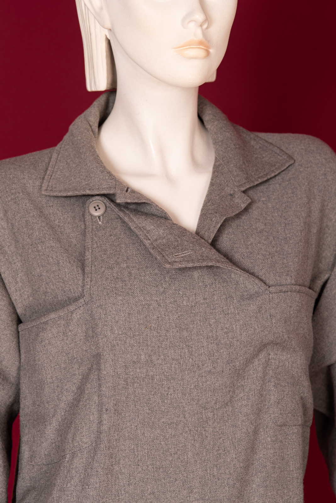 - Apron front fold with a button closure that you can either close or open on the shirt bust, multiple ways to wear it