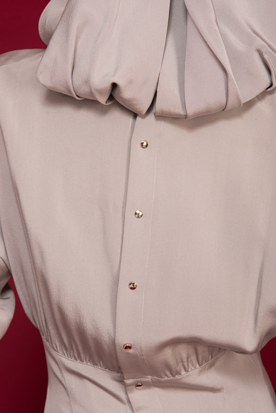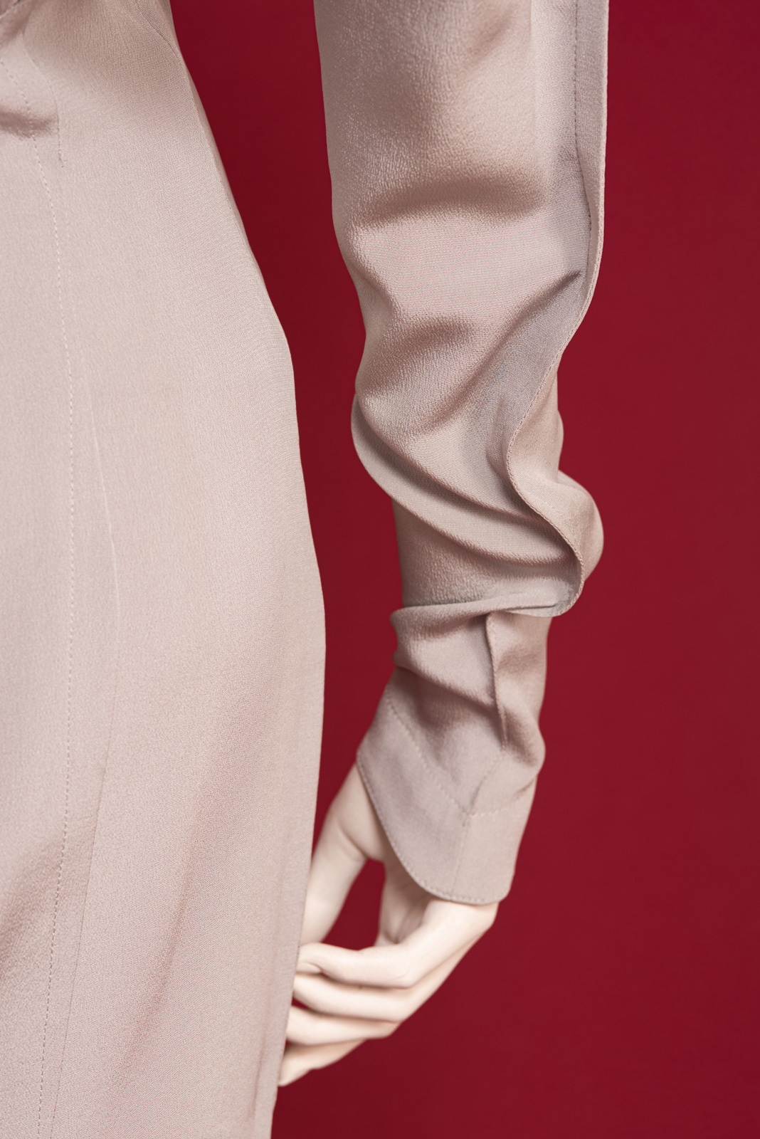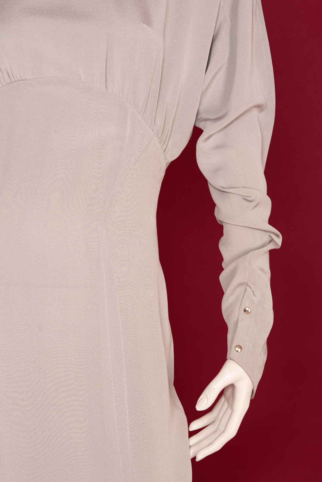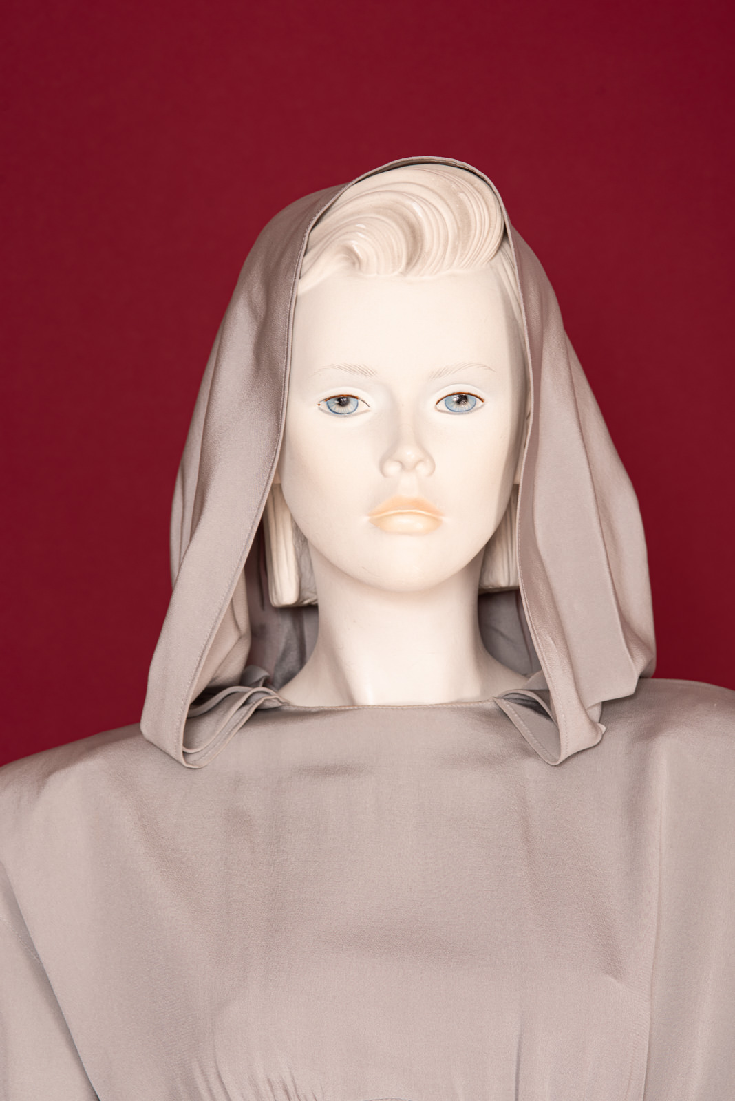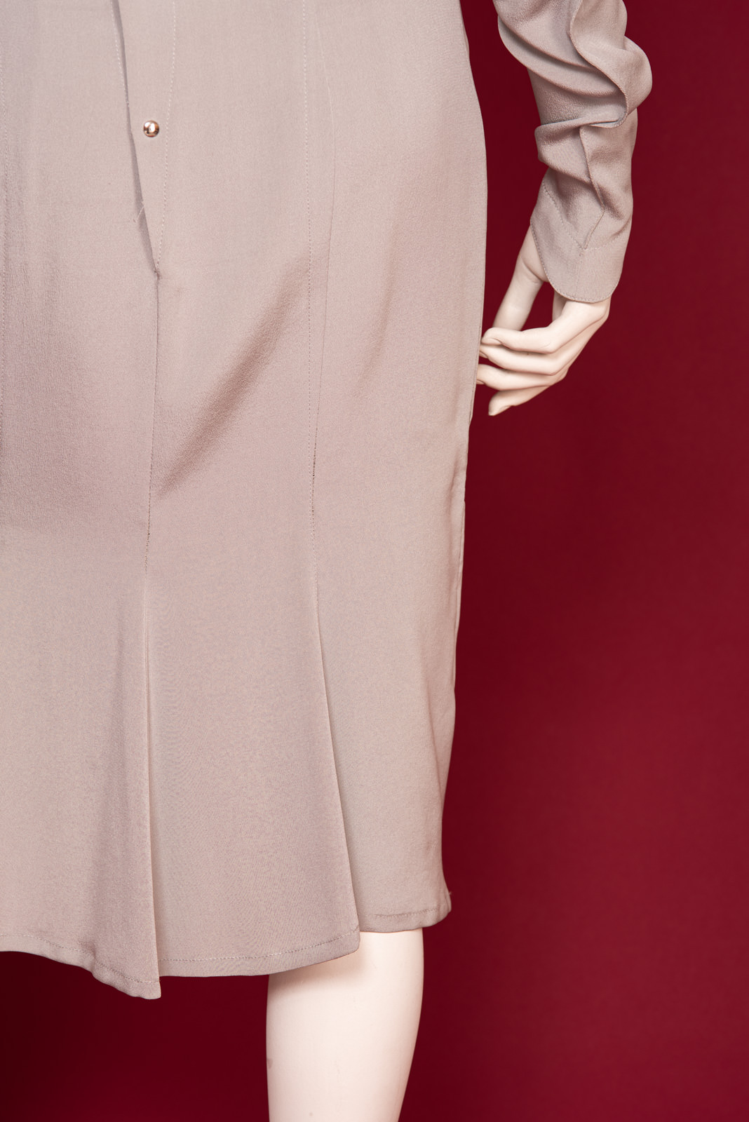 Sexy, Glamorous Thierry Mugler Grey silk sheath dress from the 1980s, with a gorgeous hood at the back and a stunning structured cut, iconic from the House.