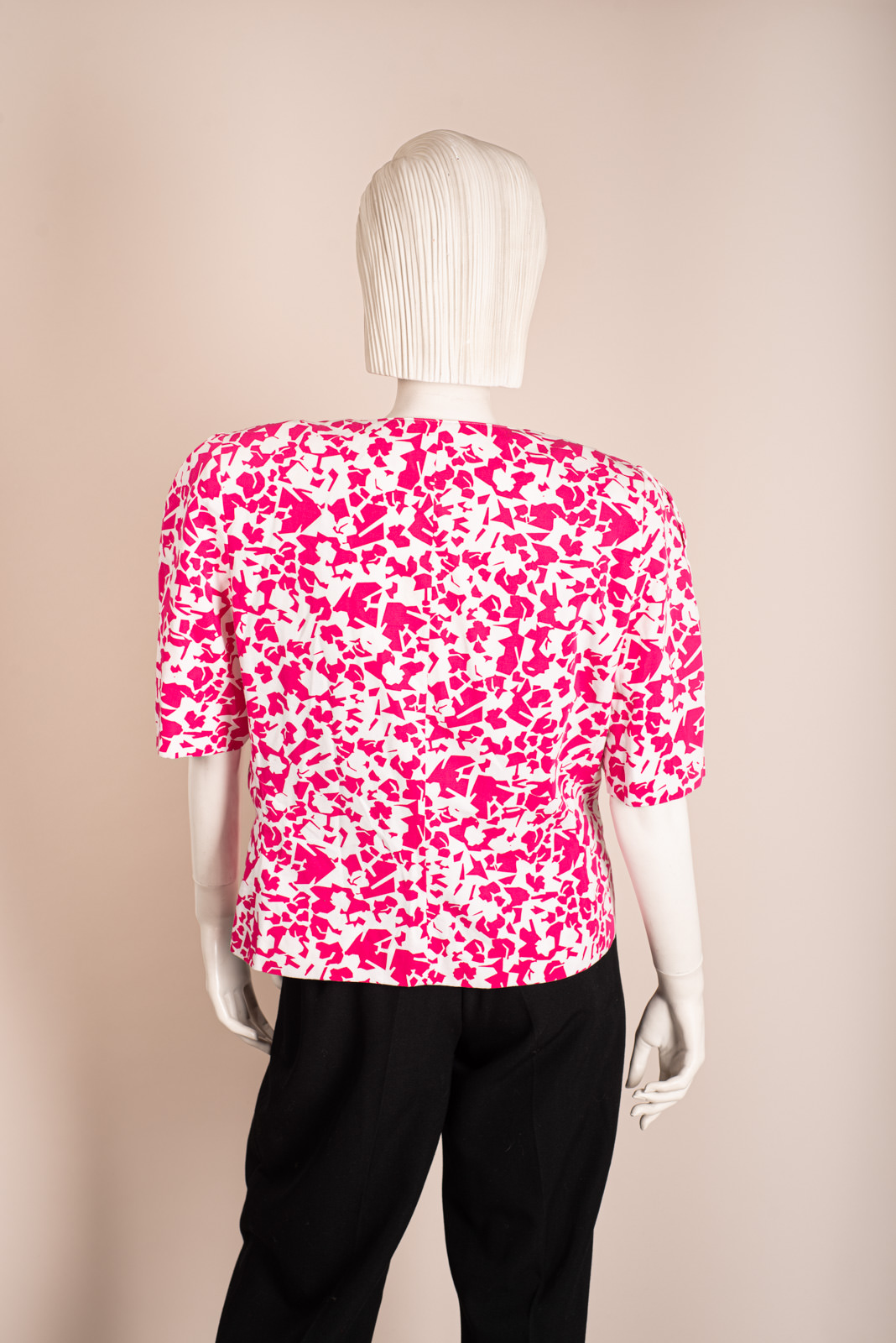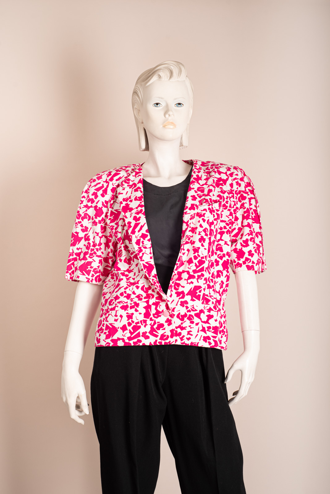 1980s FUCHSIA & WHITE ABSTRACT PRINTED JACKET