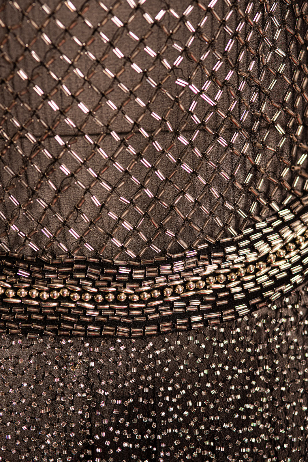 • Silk chiffons background fully embroidered with glass beads forming braces and a seedling