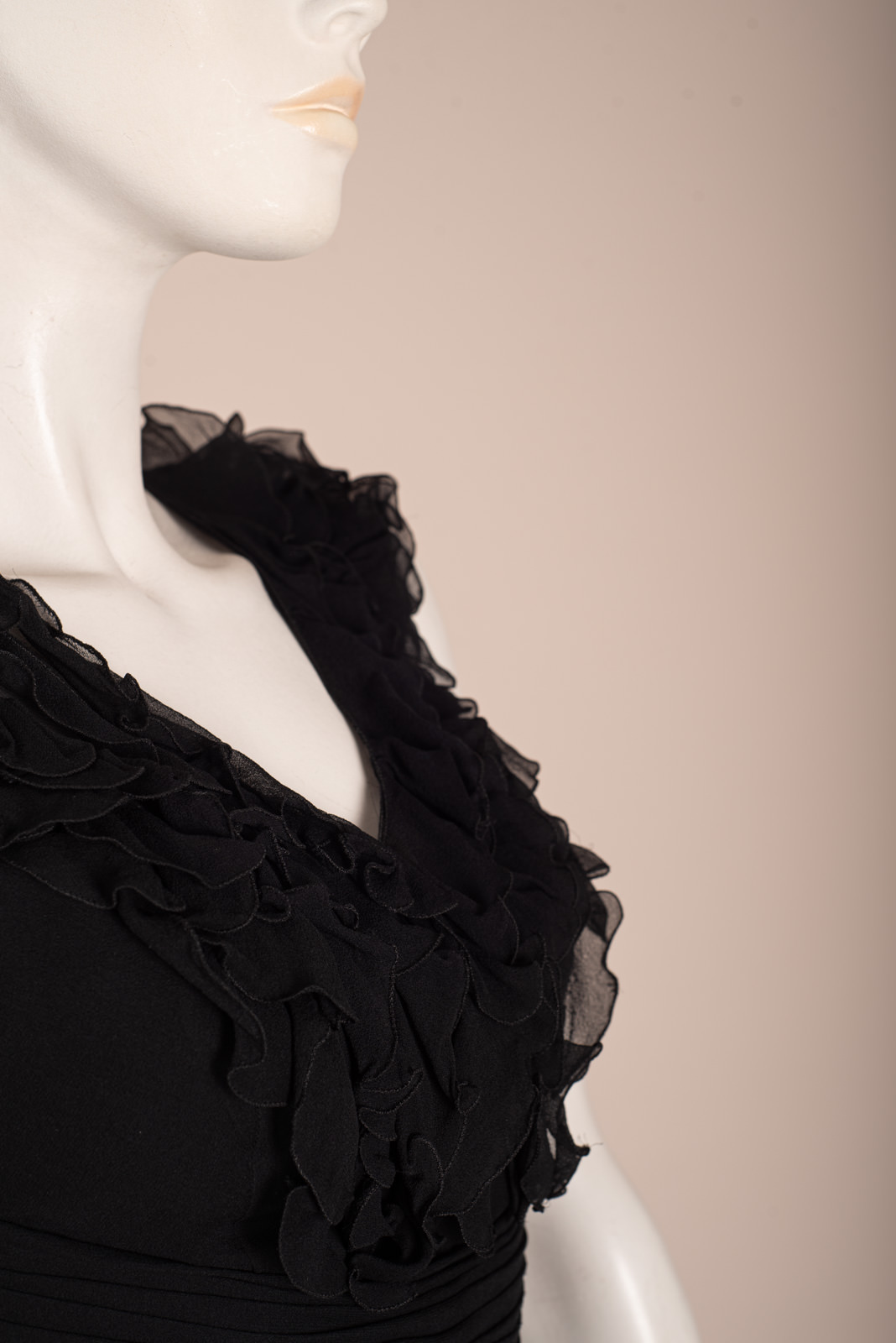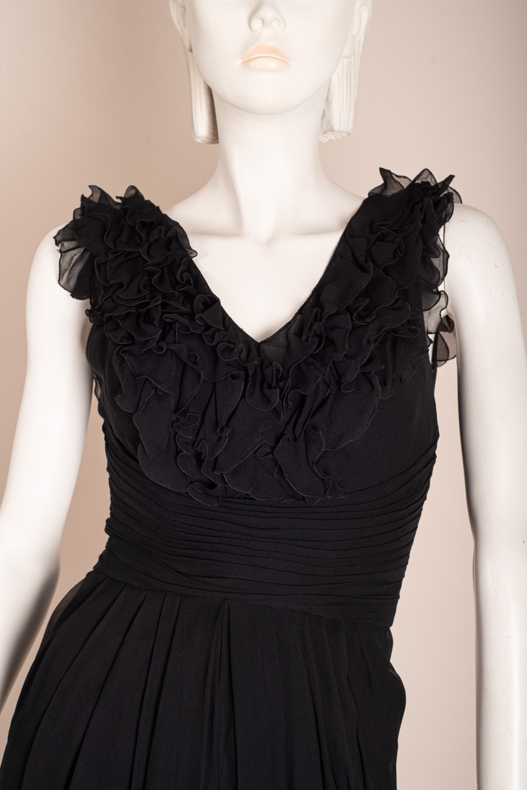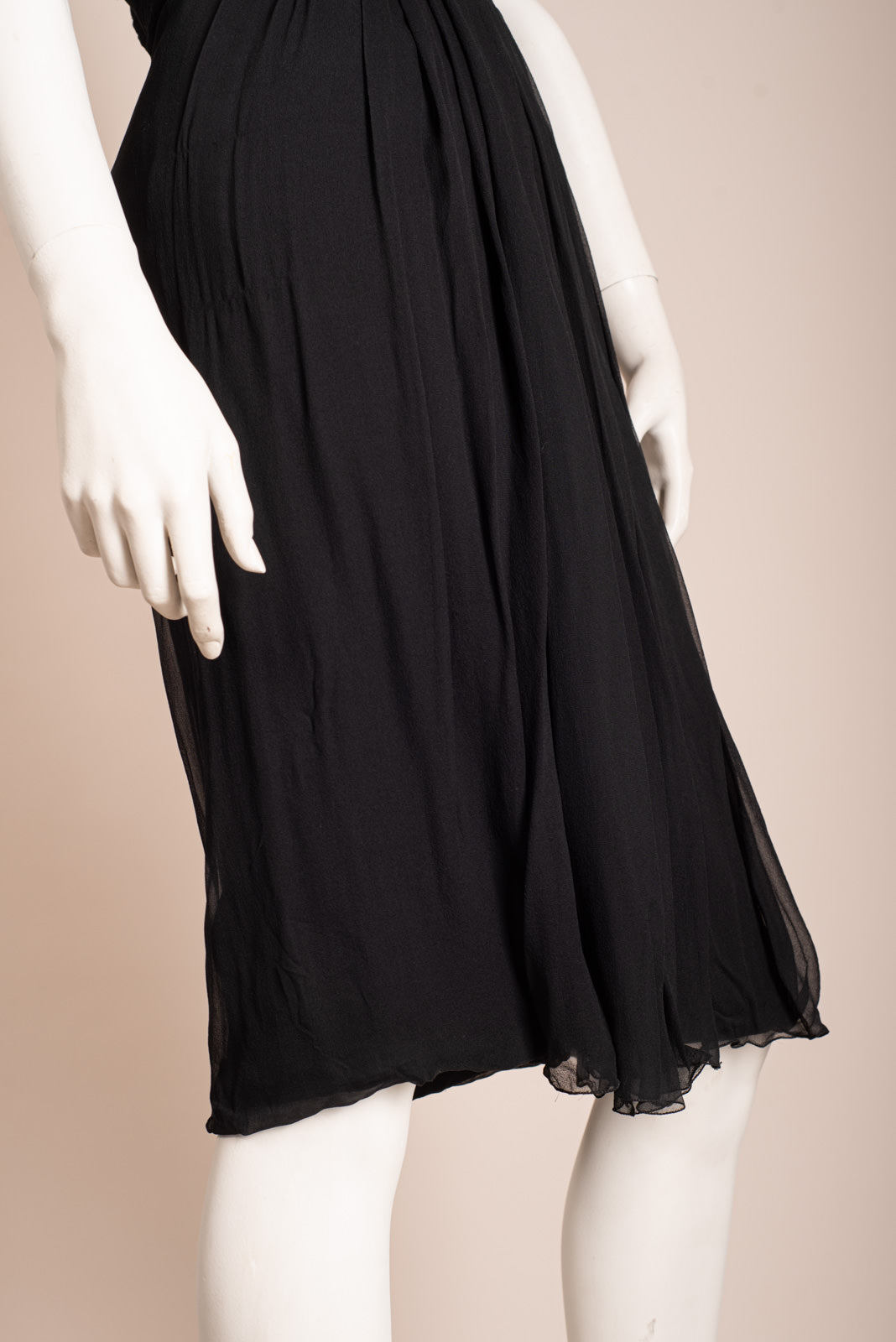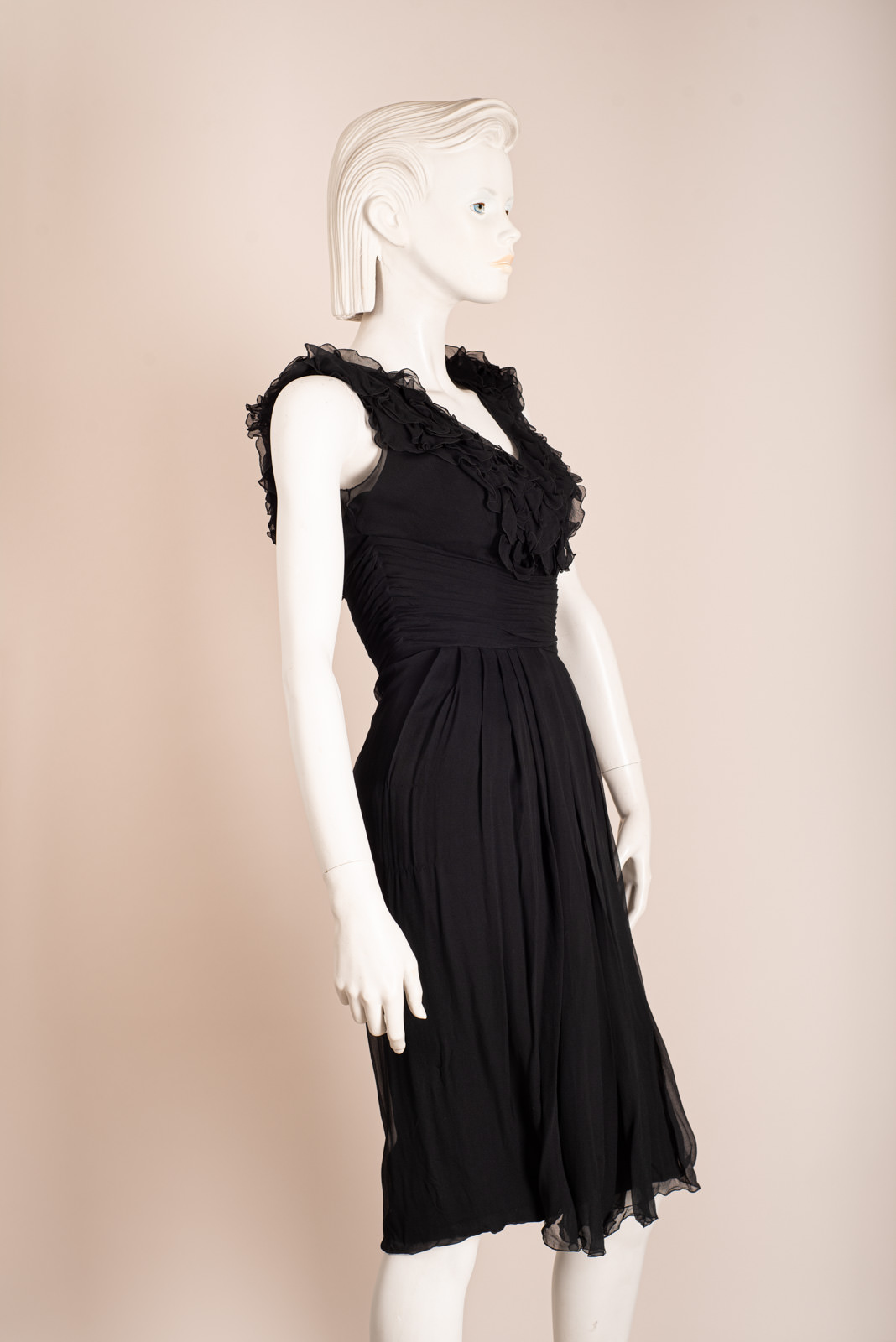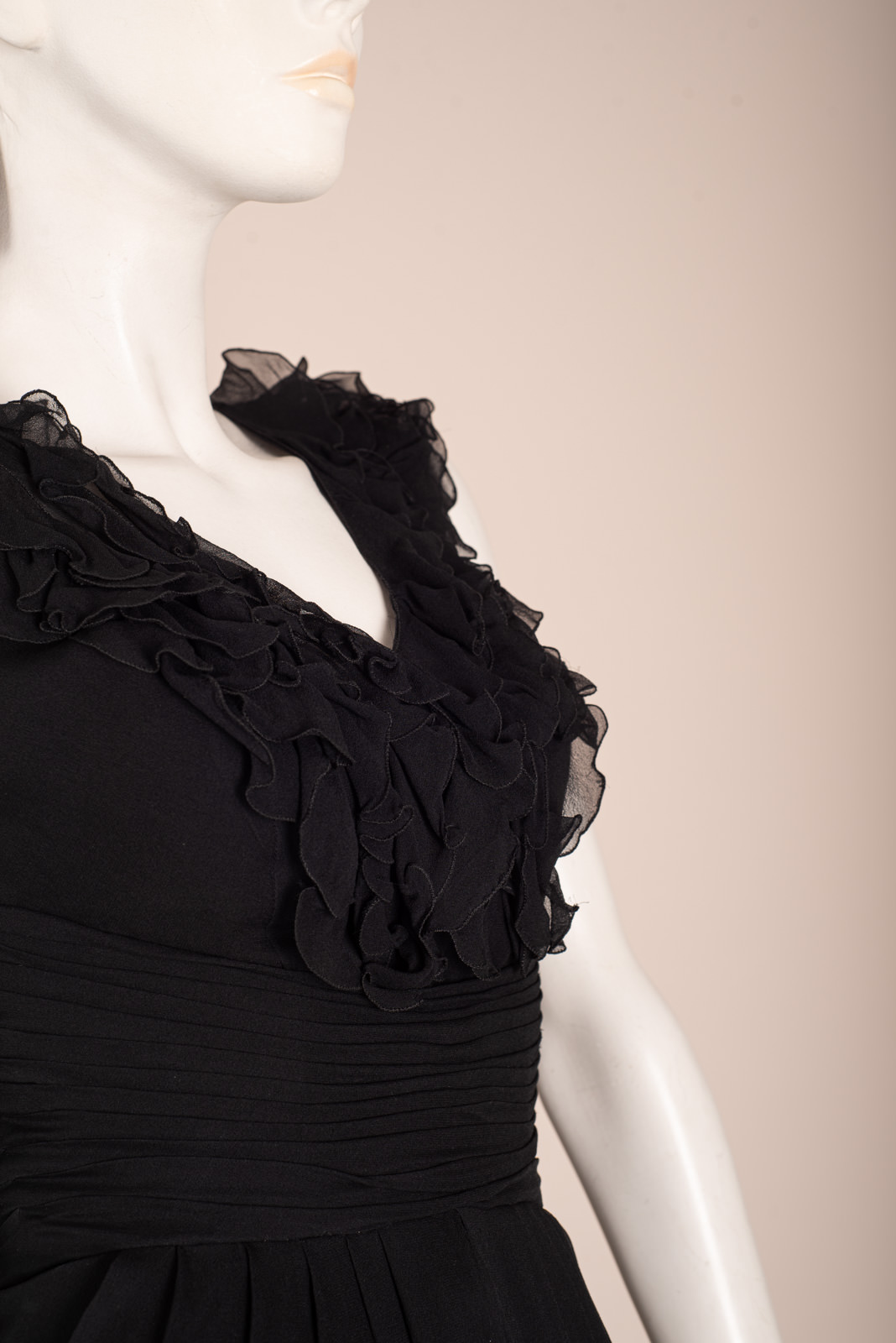 - Sleeveless pleated black chiffon handsewn cocktail dress