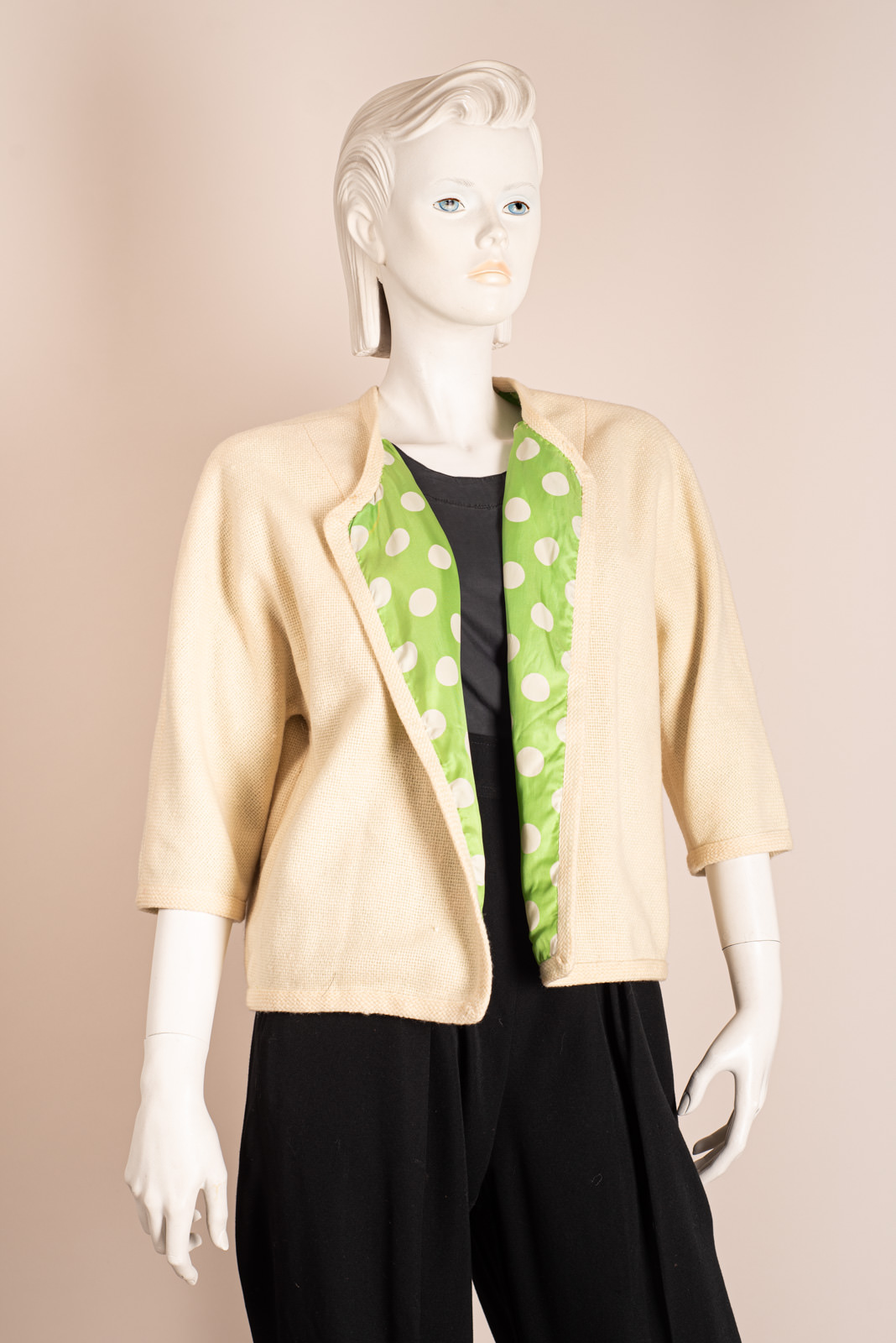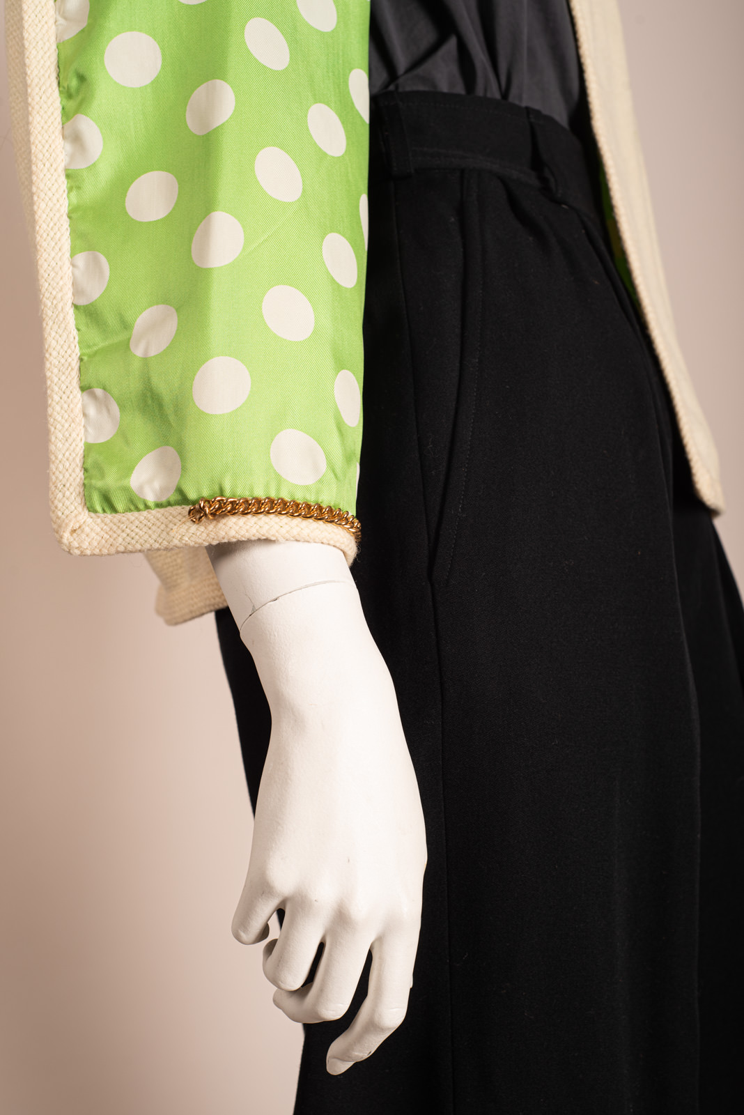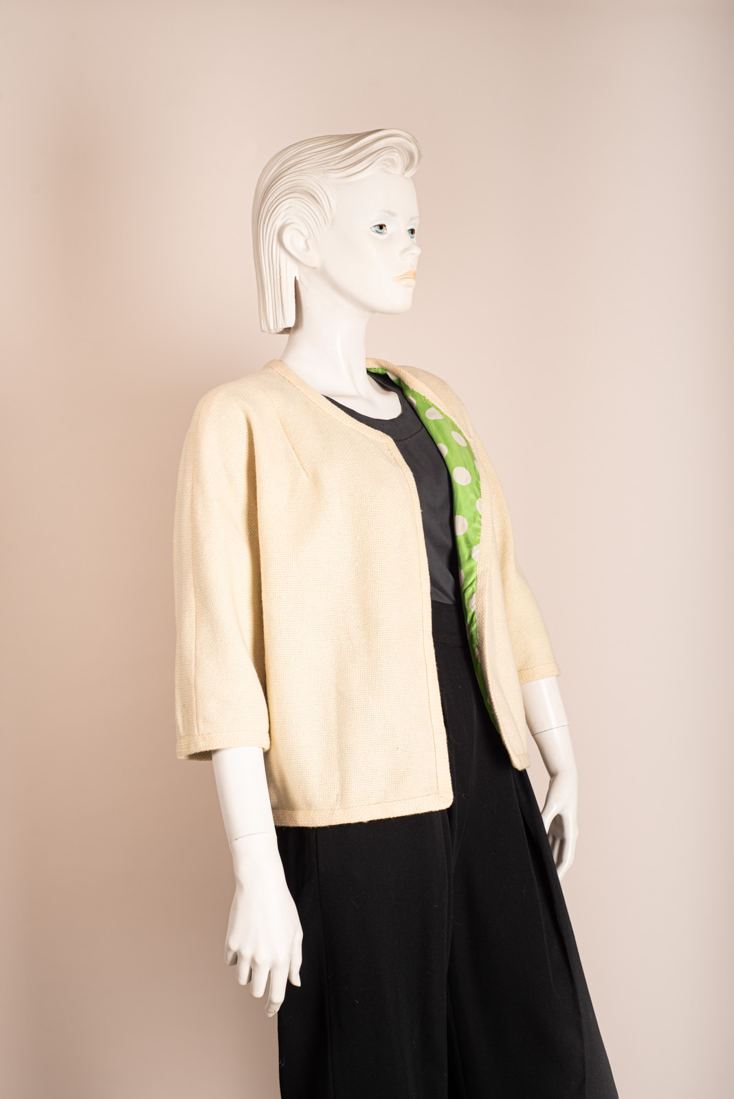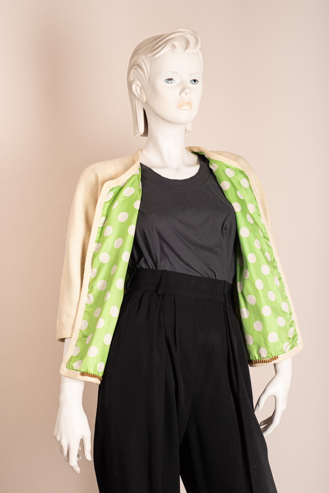 This jacket is coming from the wardrobe of Miss Tobe Davis, a famous US fashion journalist who was a pioneer in fashion stylism and feminine fashion journalism.