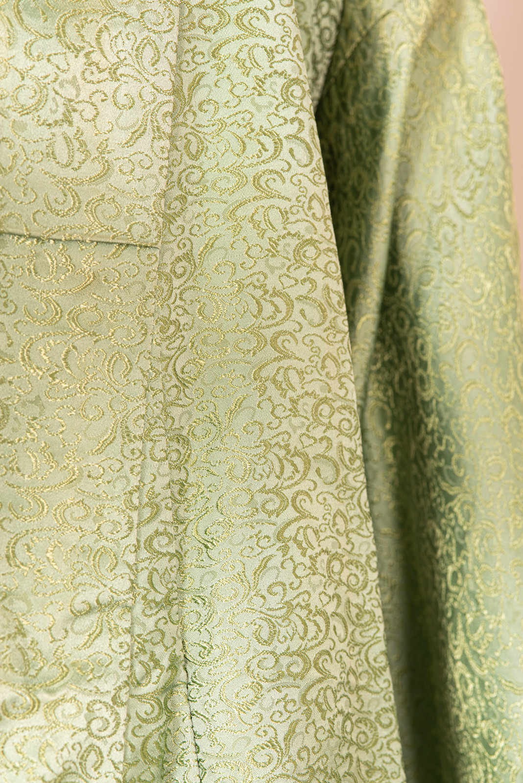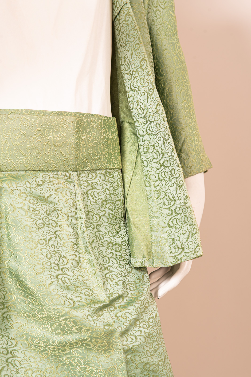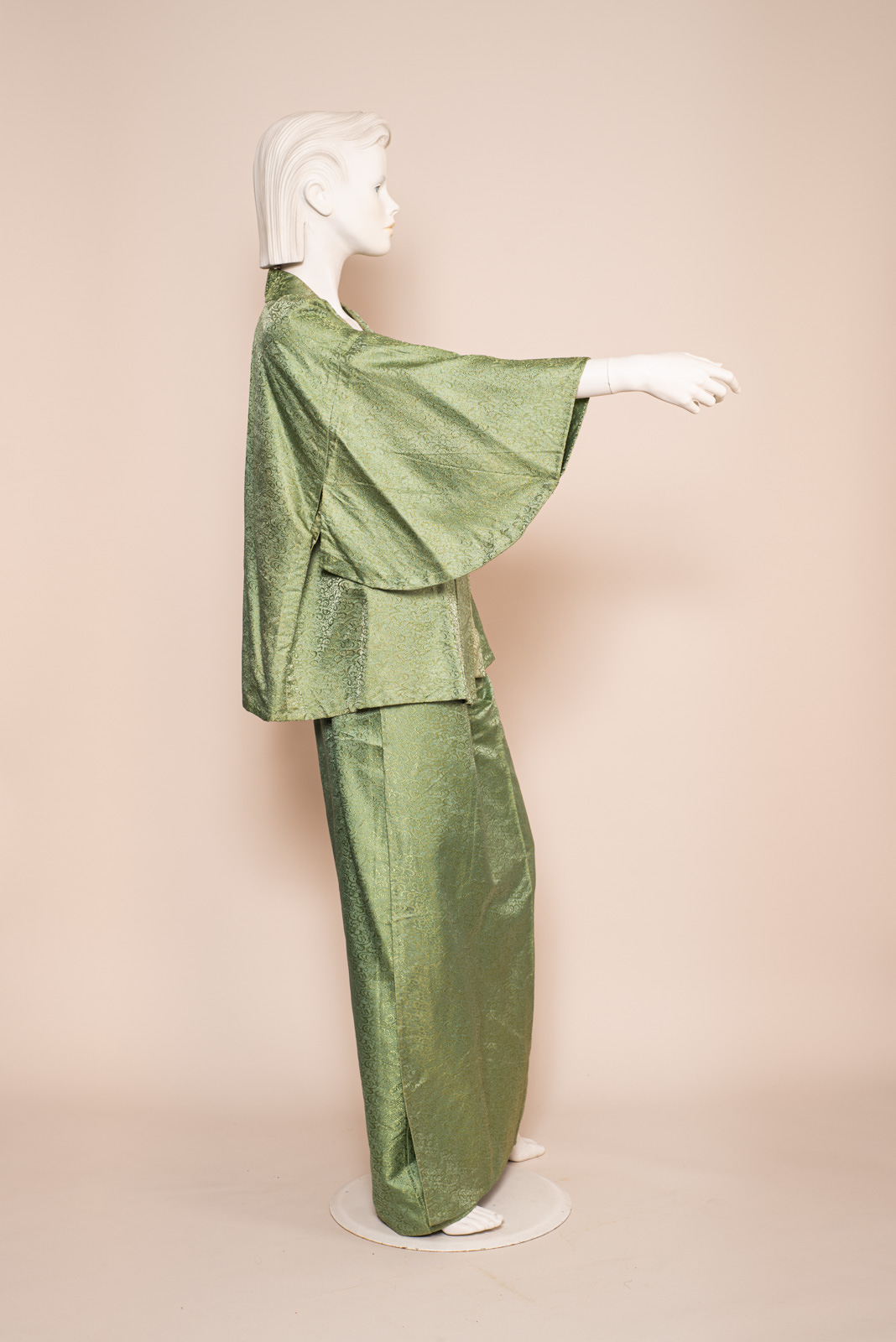 1950s SILK DAMASK GREEN KIMONO SKIRT ENSEMBLE