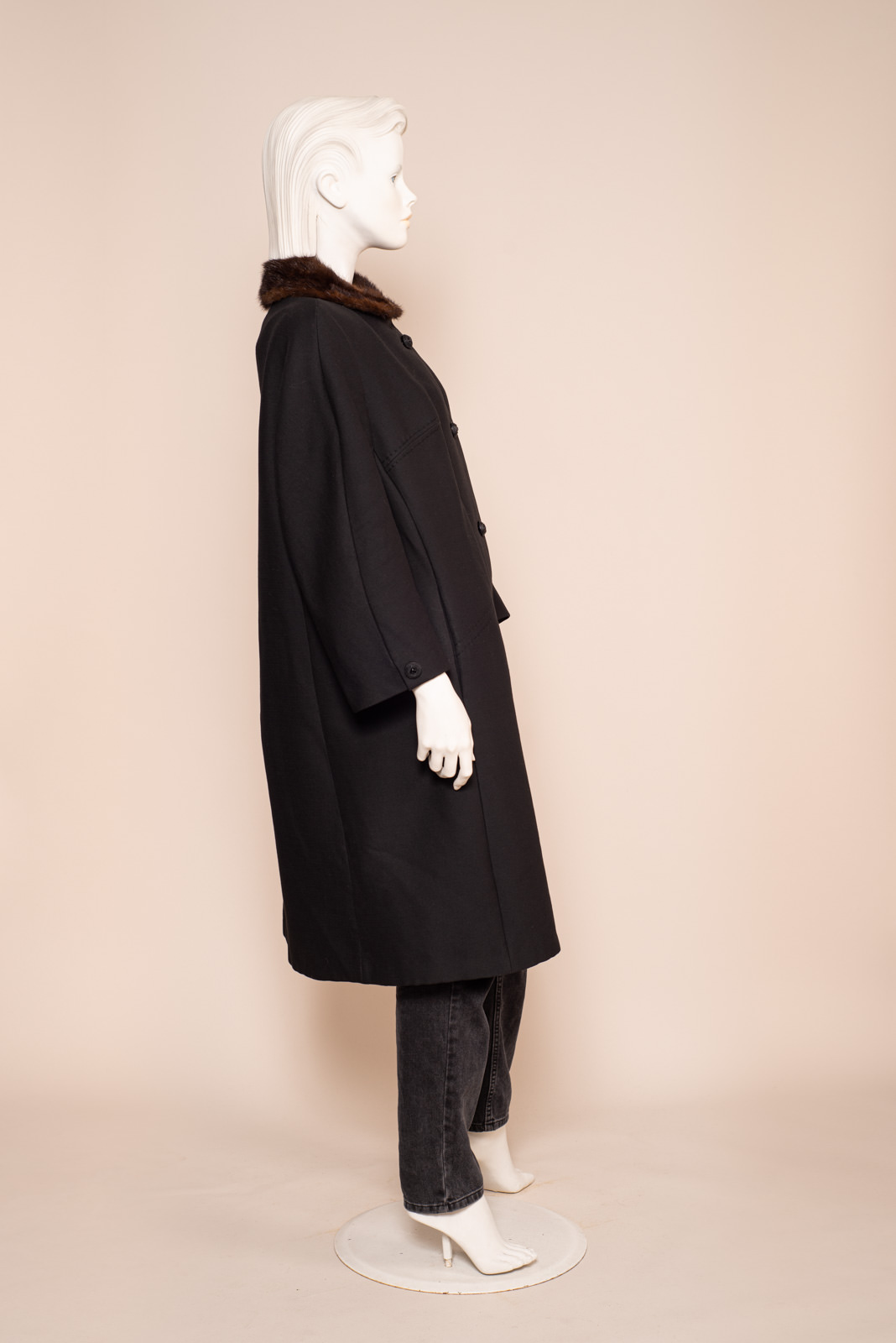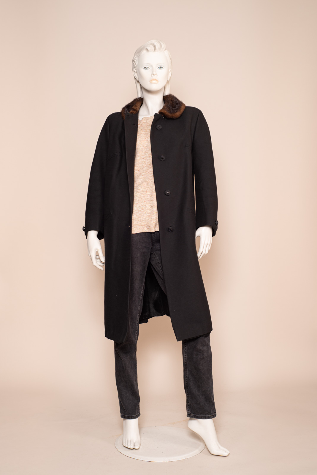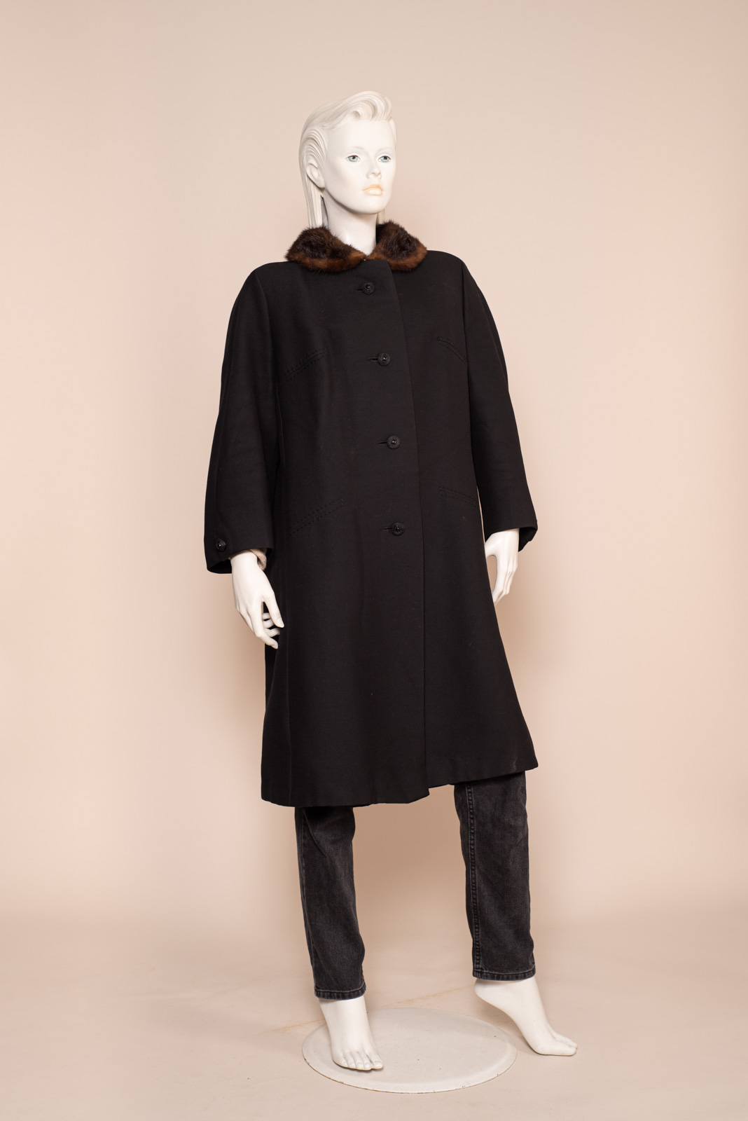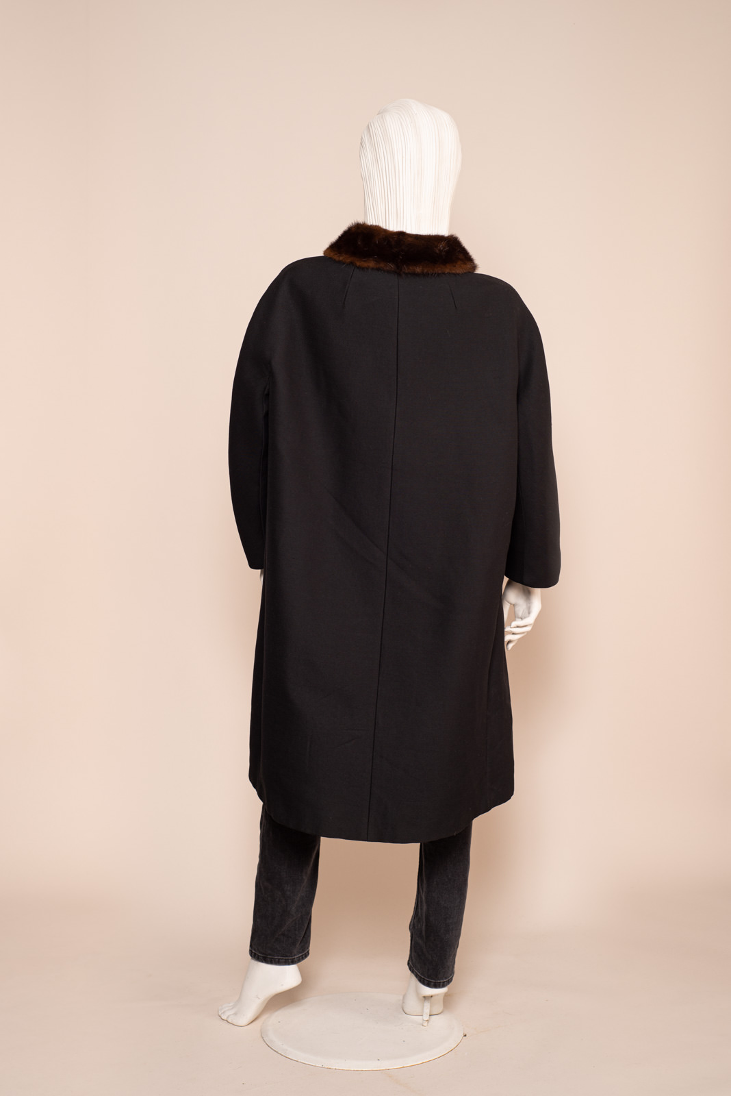 1960s BLACK WOOL COAT FUR COLLAR