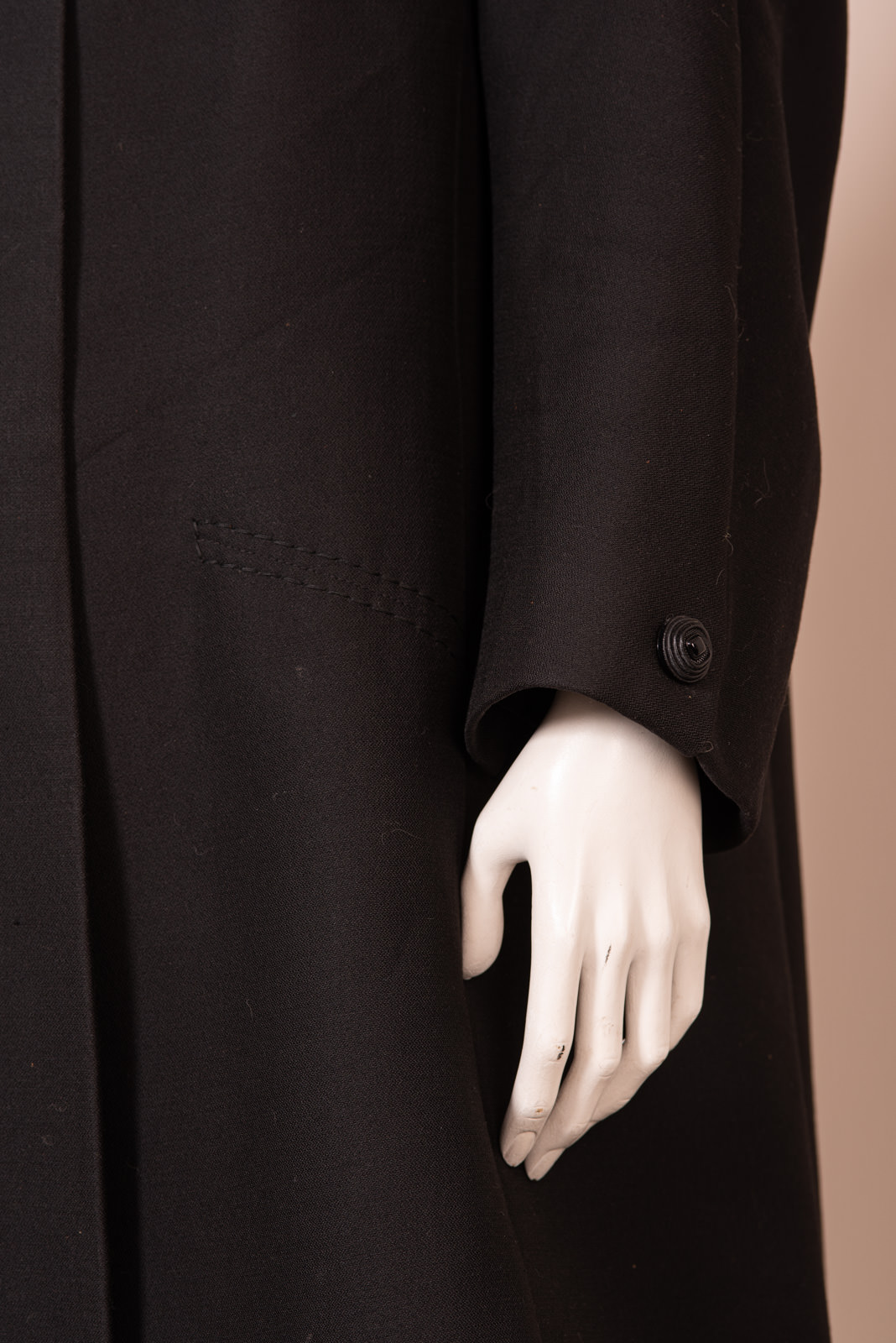 - Black wool crepe handsewn coat