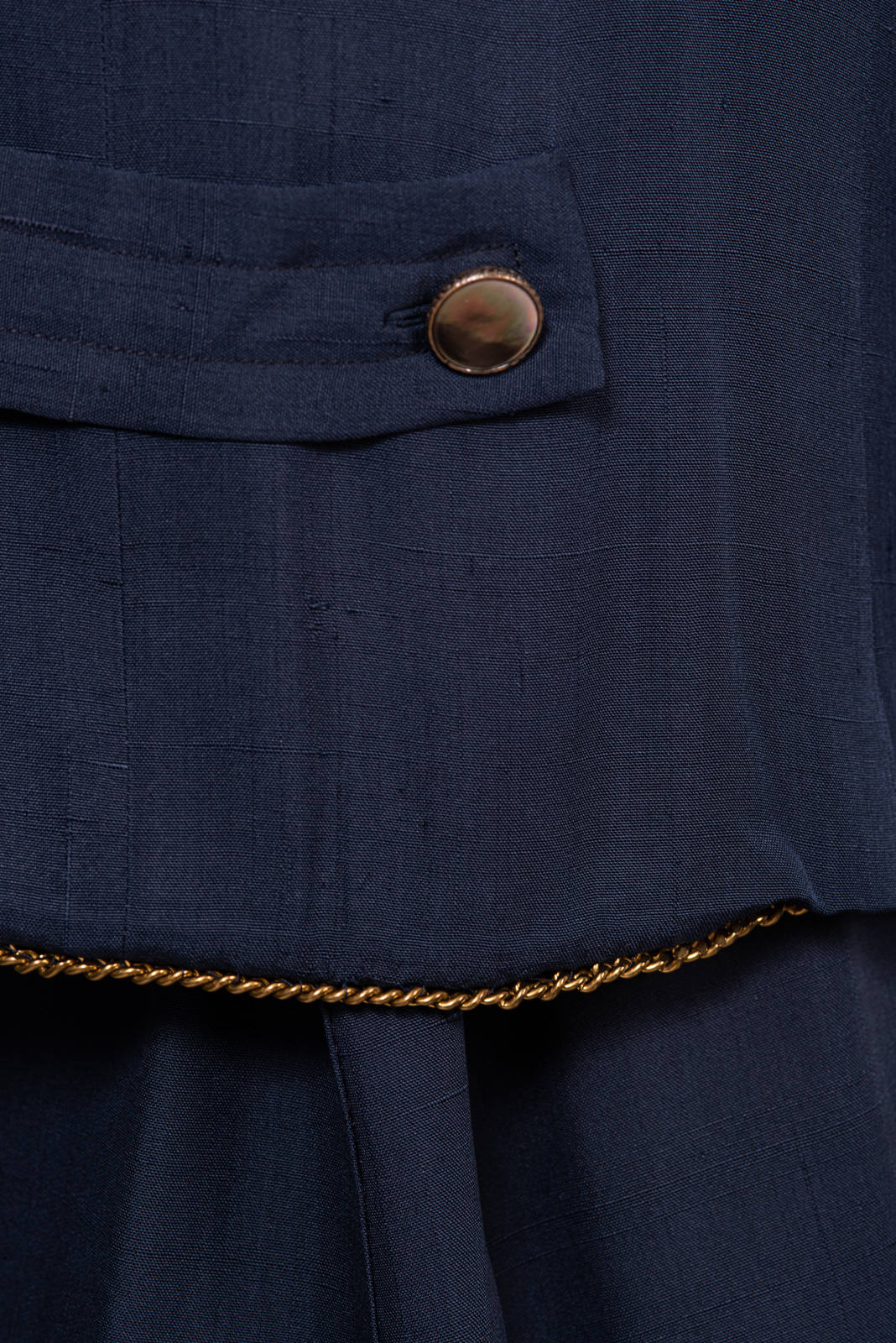 1960s HAUTE COUTURE NAVY WILD SILK ENSEMBLE CHANEL STYLE