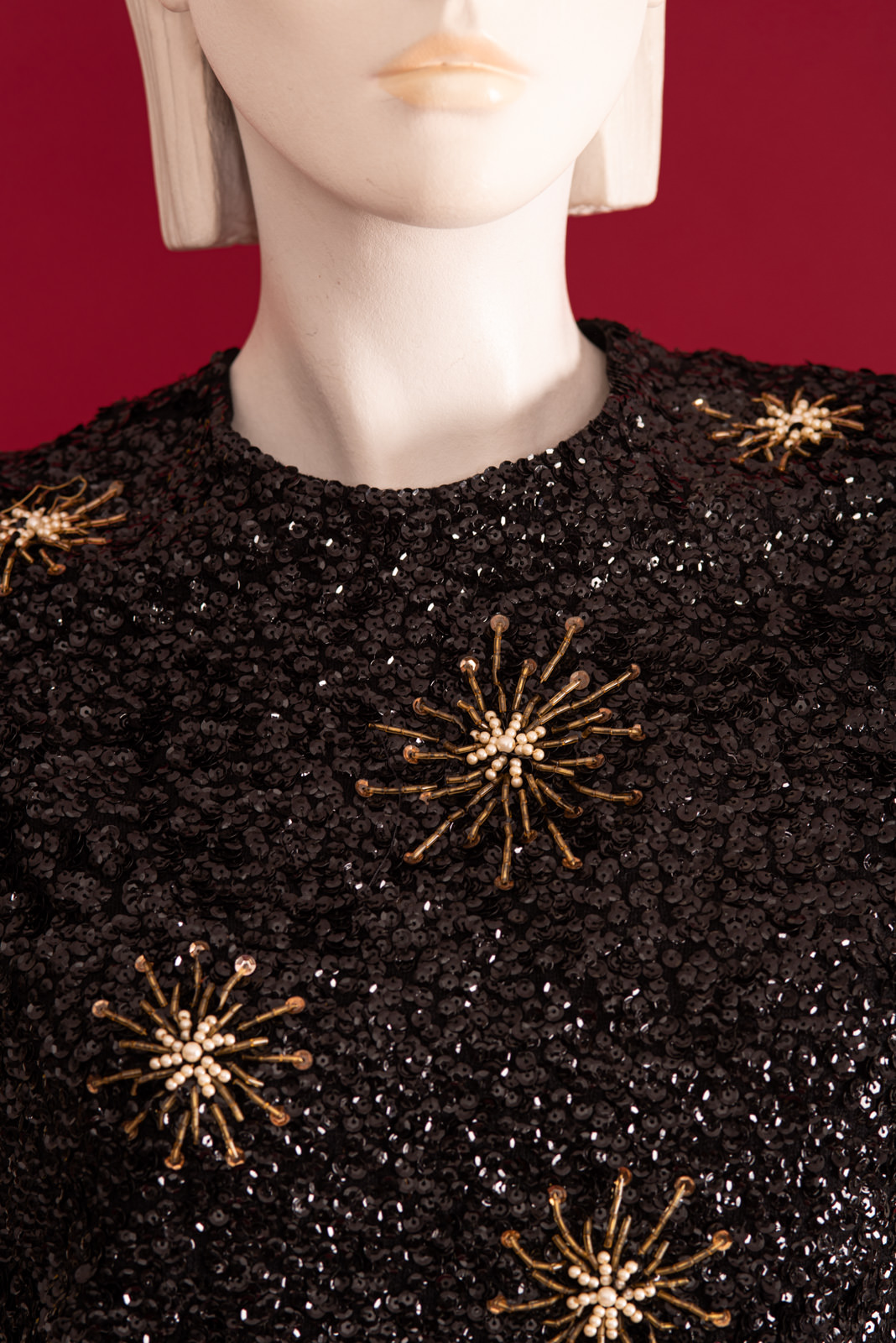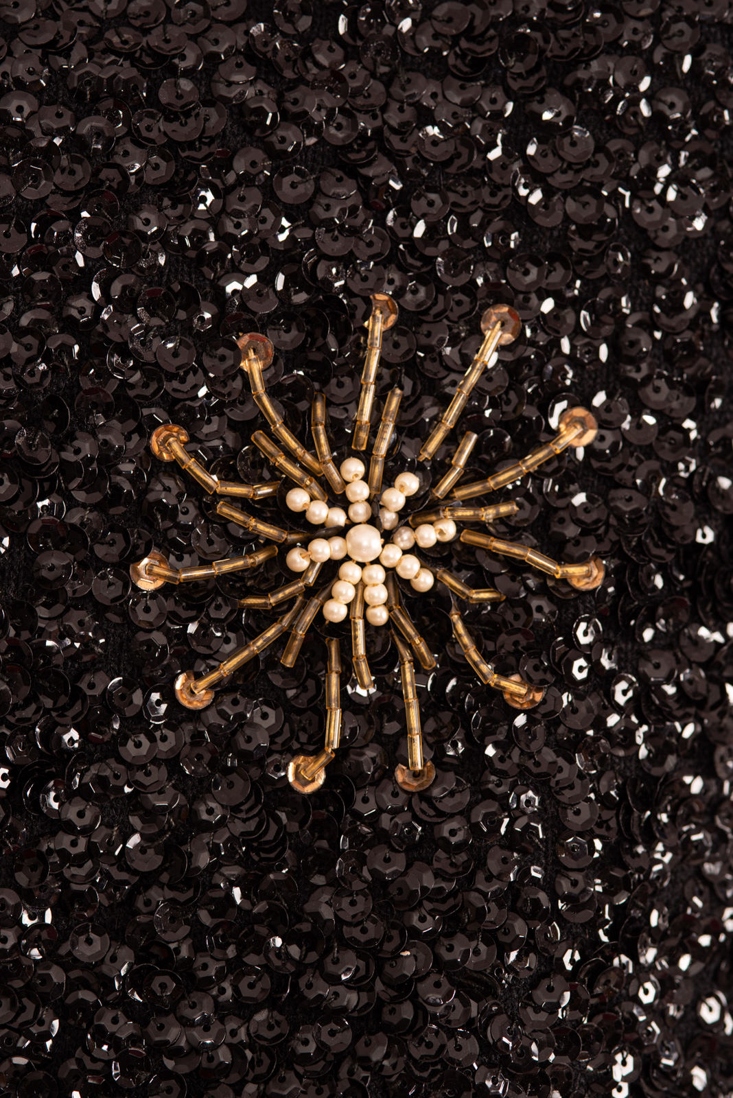 - Very slight lack of pearls/sequins, consistent with age of piece