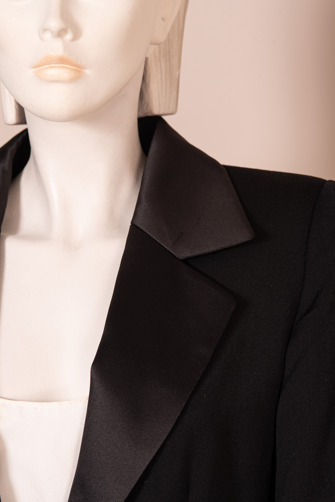 Iconic Yves Saint Laurent “L’invité de la Saison” for la Redoute 1996s Black wool tuxedo, which has been the highlight of the famous collaboration between La Redoute and greatest designers. This collaboration began in 1969 and counts many iconic designers like Azzedine Alaïa, Emmanuelle Khanh and more.