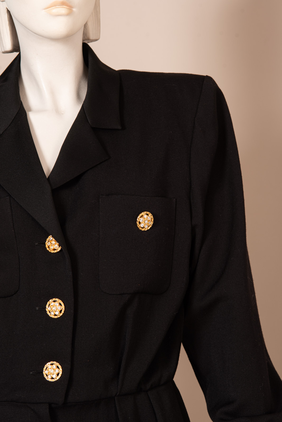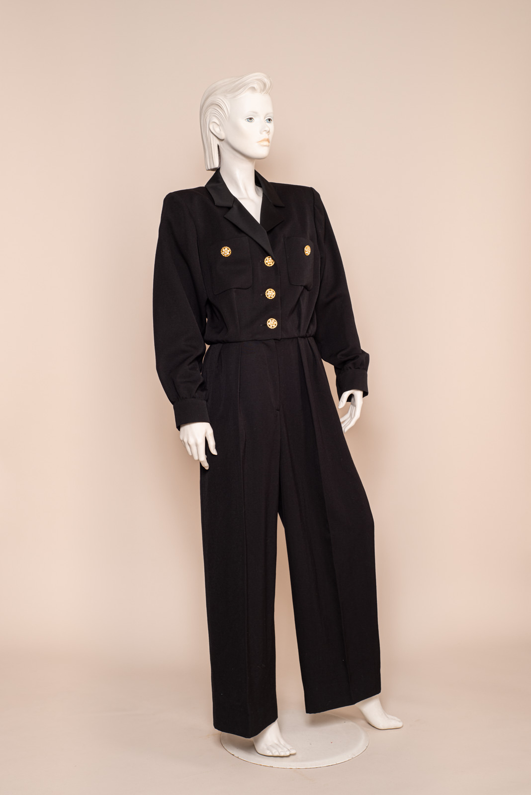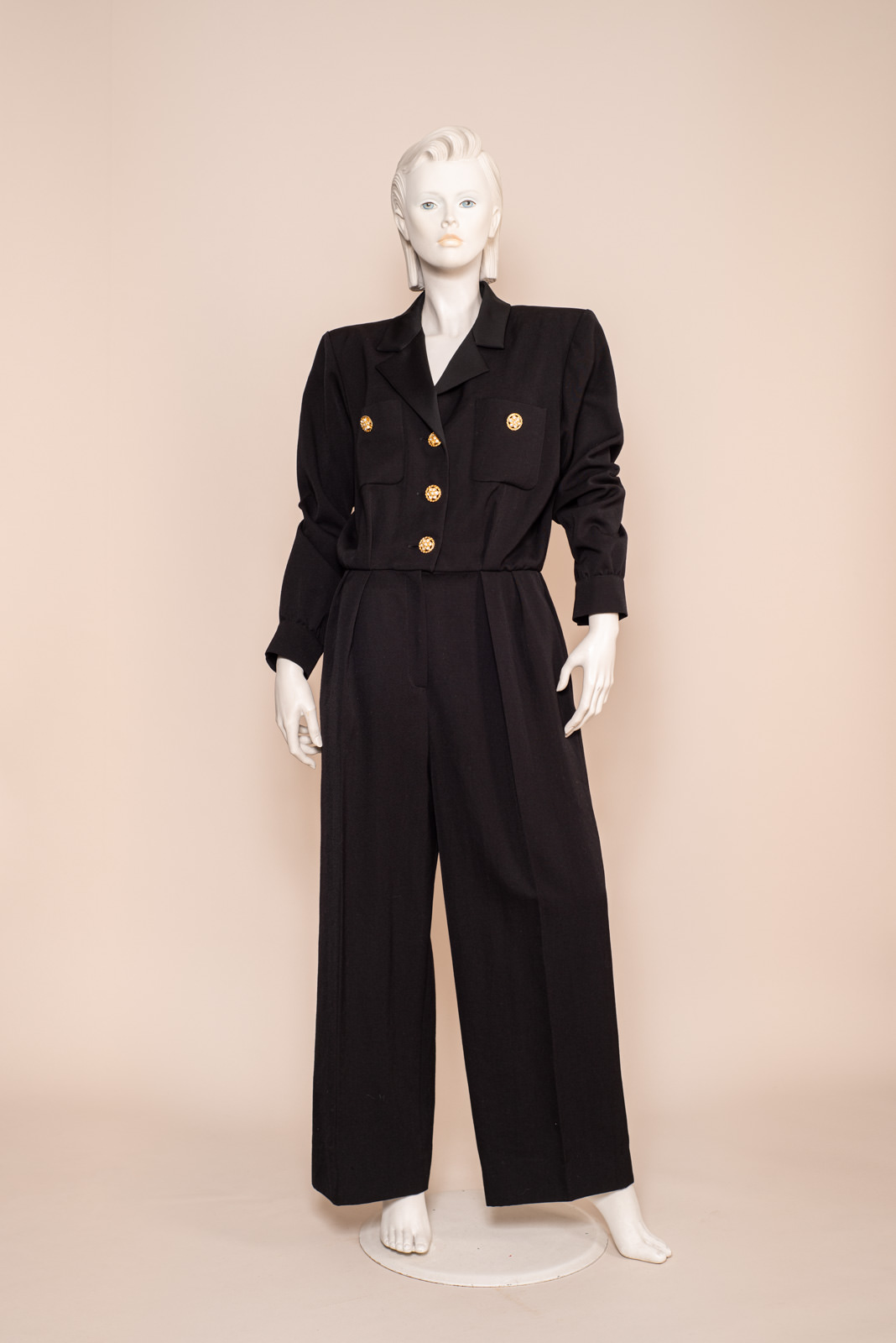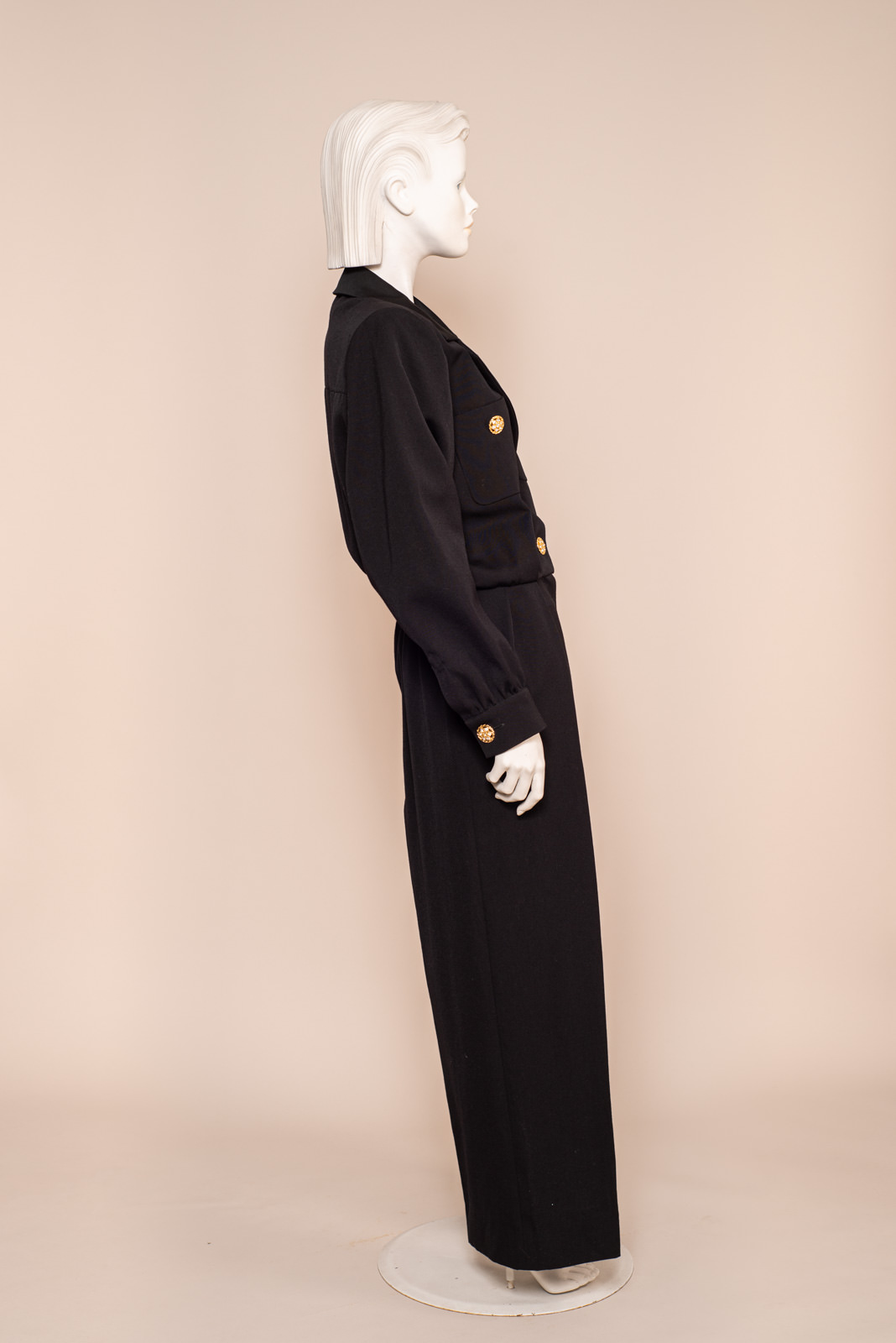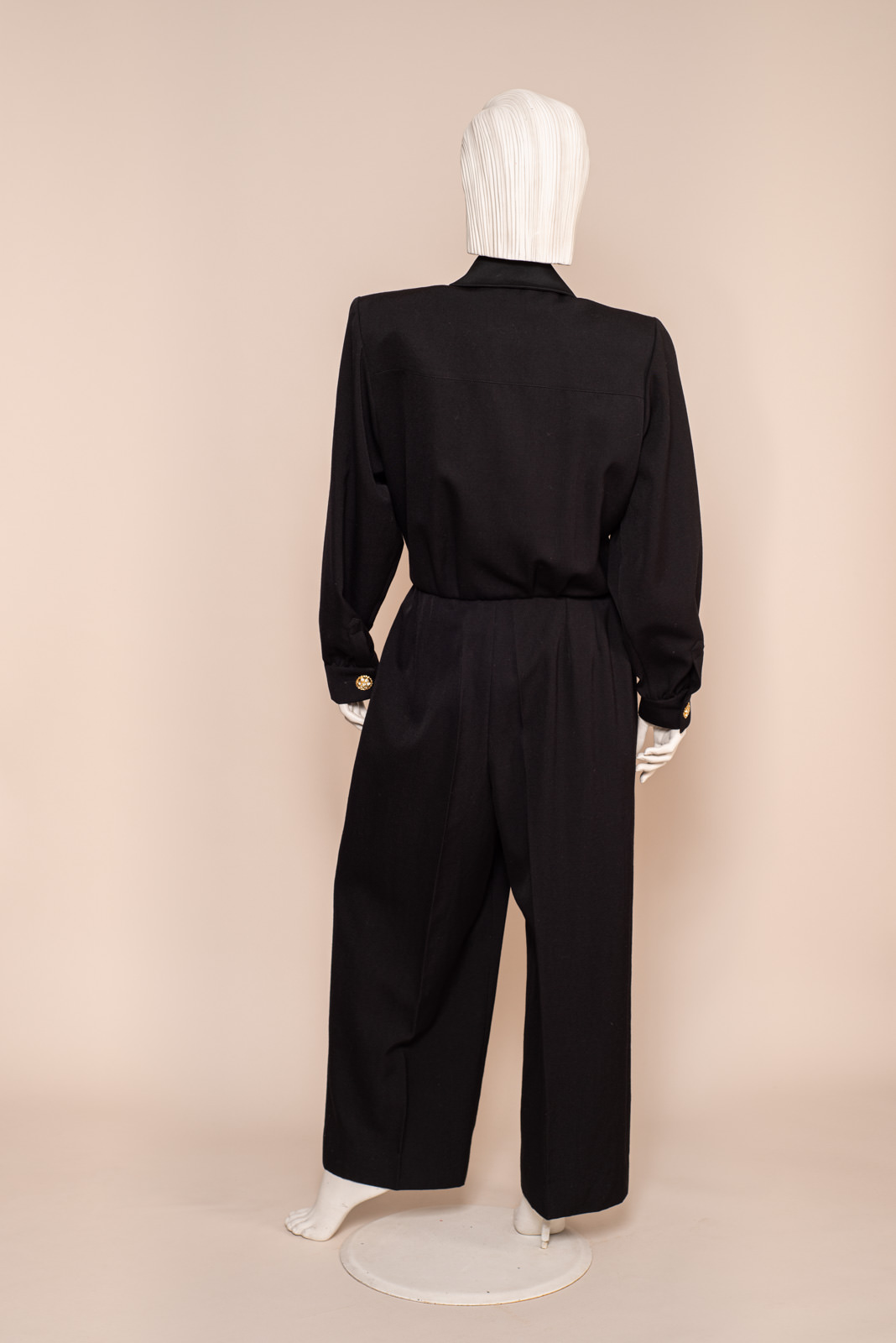 Rare & stunning Yves Saint Laurent black wool Jumpsuit from the 1980s, crafted in a rich wool canvas.